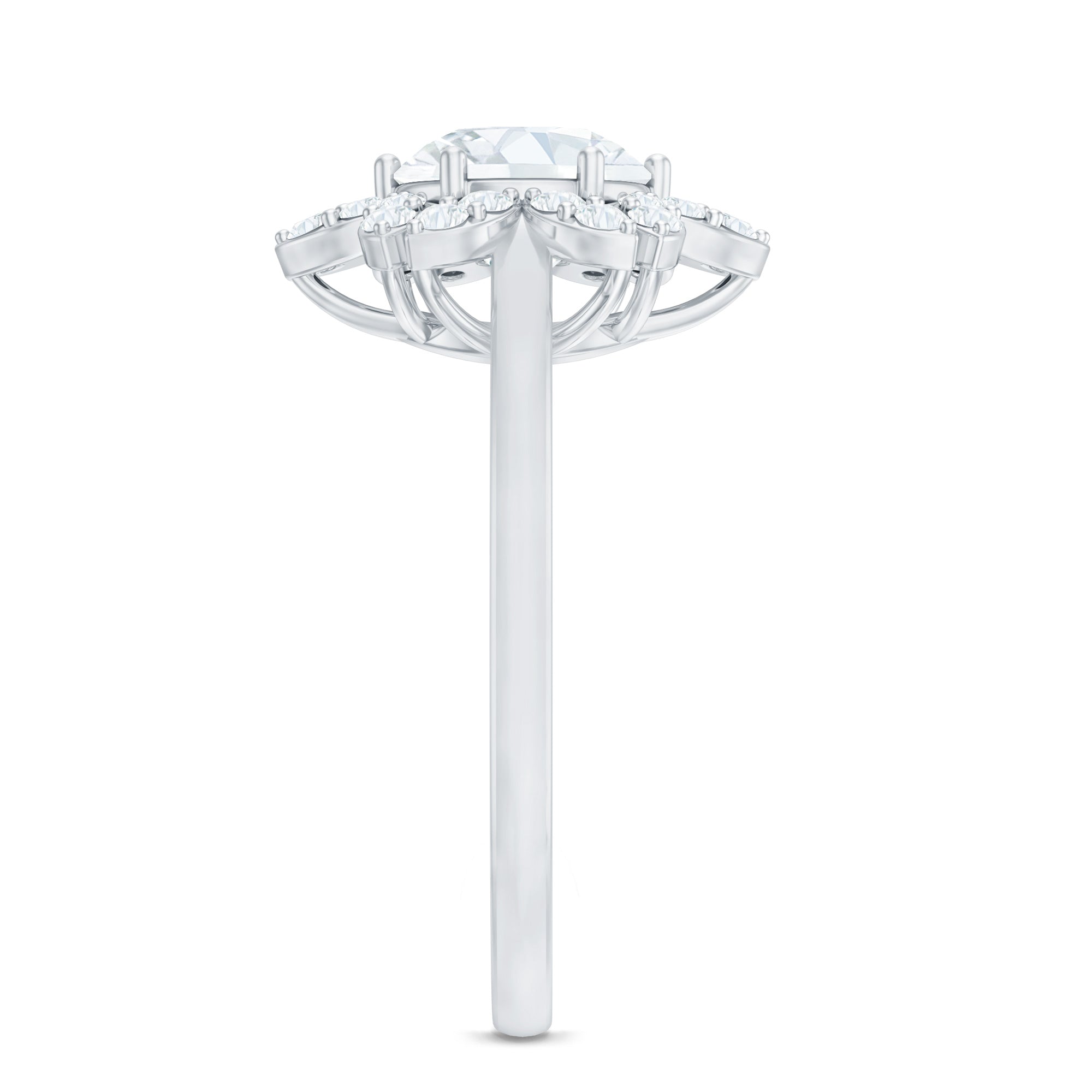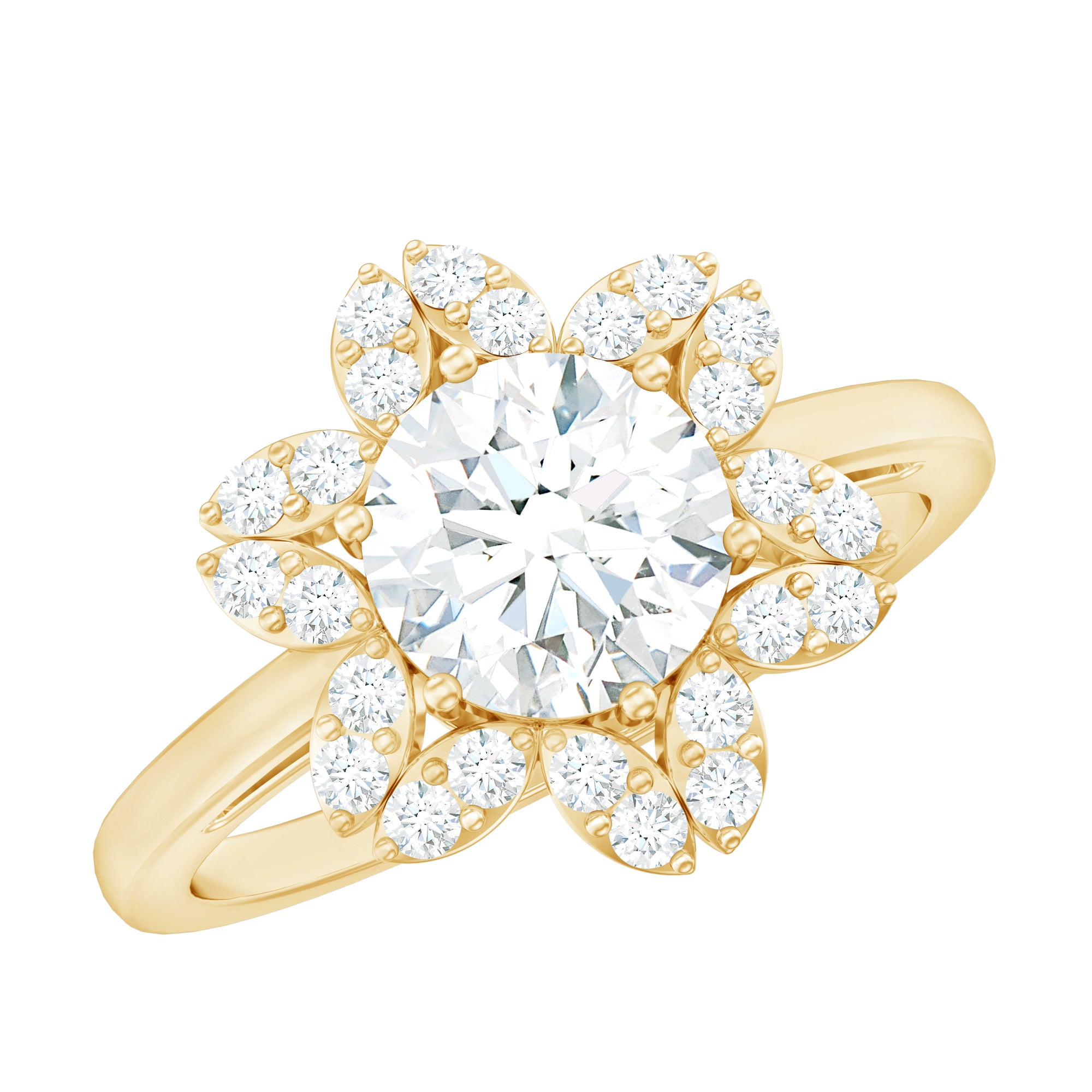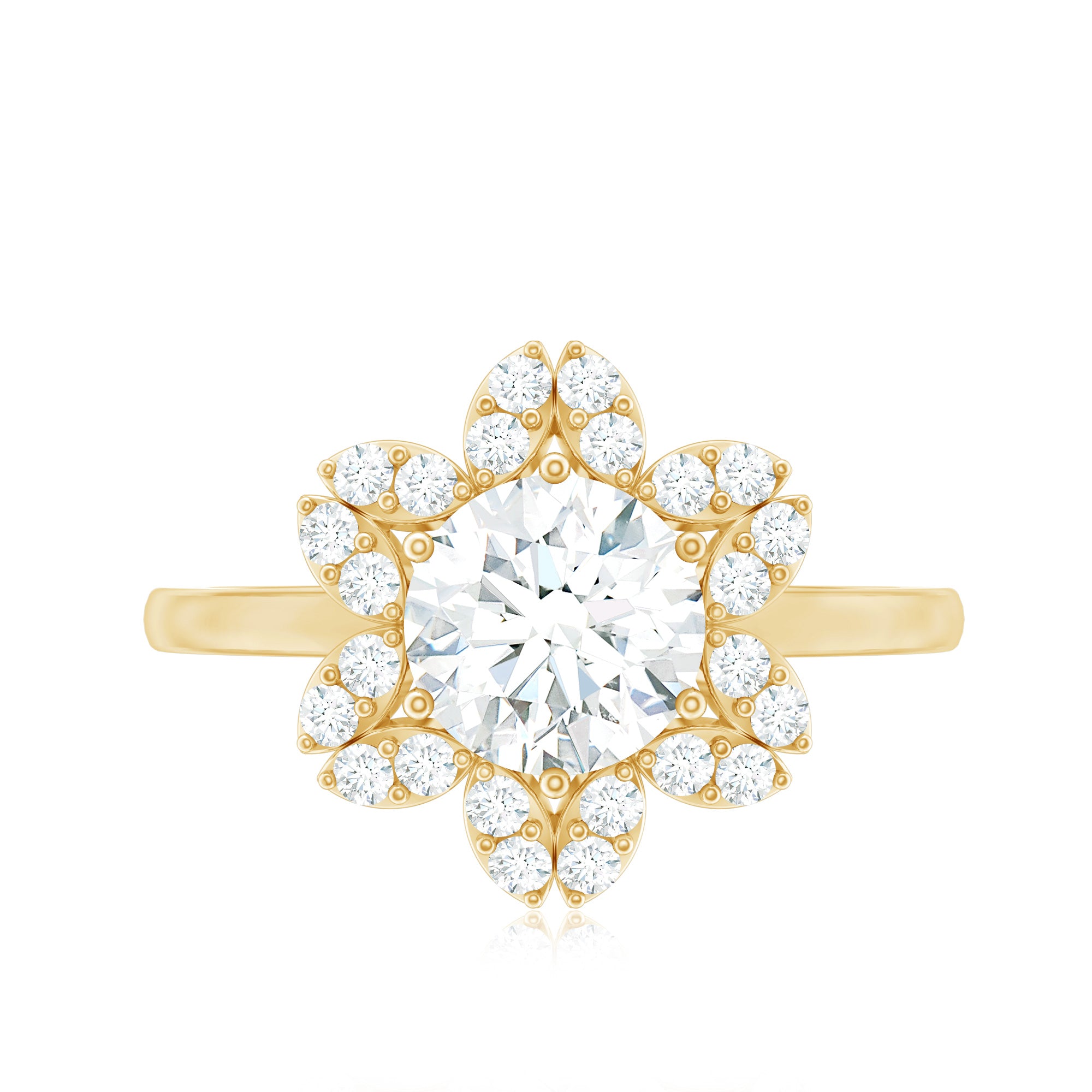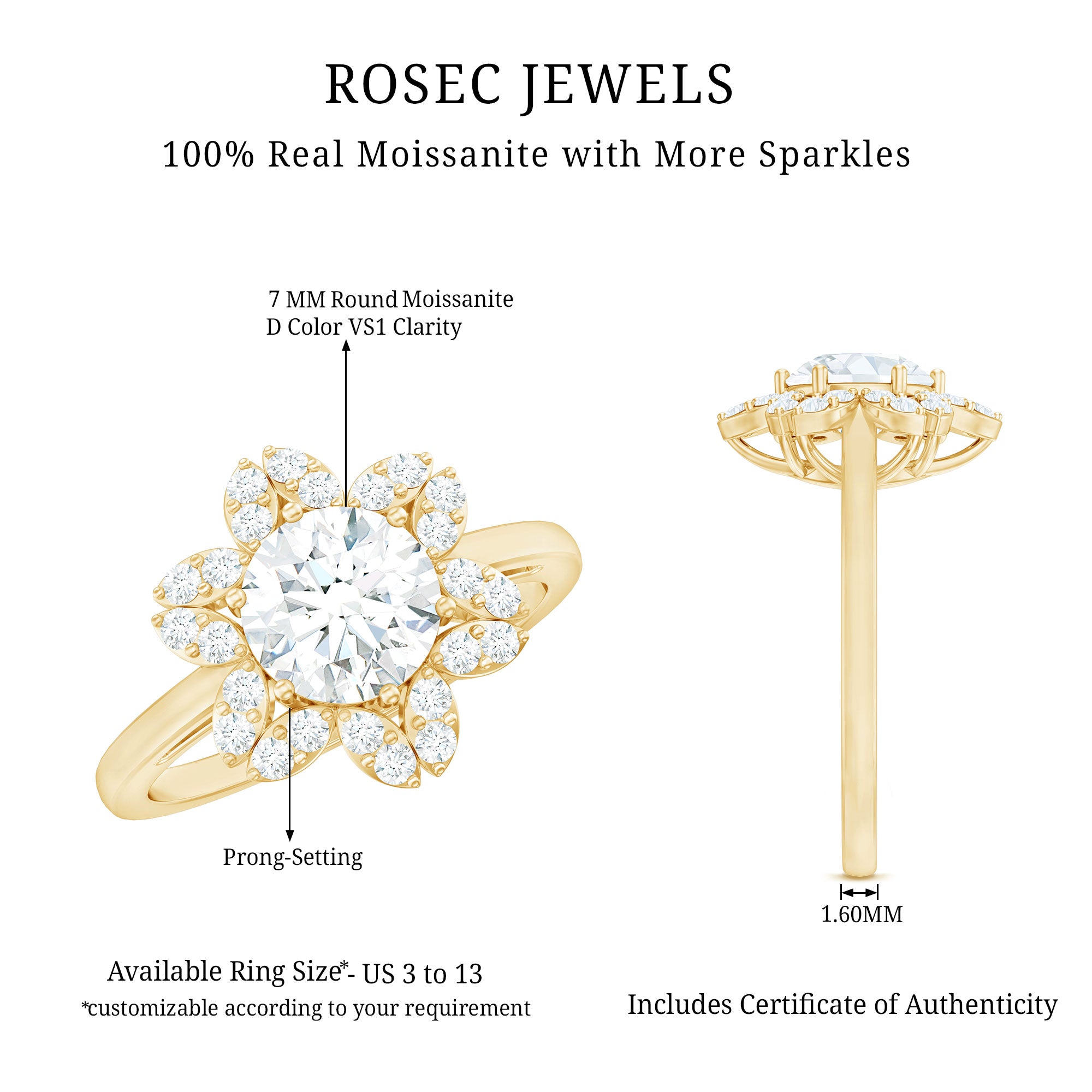 This Flower Engagement Ring is a truly charming piece that feels both romantic and radiant. At its center is a 7 MM round cut moissanite set in prong setting, full of brilliance and fire, making it the perfect focal point for such a meaningful piece. Surrounding the center stone is a floral-inspired halo of smaller round moissanites, arranged like delicate petals blooming in perfect harmony. The design captures the essence of natural beauty, bringing to mind a flower in full bloom, timeless, fresh, and full of life. The sleek band gently tapers to support the floral centerpiece, giving the Moissanite Engagement Ring a graceful silhouette and allowing the halo to truly shine. Whether you are proposing, celebrating an anniversary, or treating yourself to something special, this Moissanite Halo Ring offers an elegant yet playful look that suits any moment worth remembering. Crafted with care and comfort in mind, the Flower Statement Ring is thoughtfully sized for everyday wear while still making a bold statement. The round cut moissanite at the center brings classic sparkle, while the floral halo adds a modern, feminine twist. It is the kind of piece that feels as joyful and unique as the love it represents, bright, beautiful, and forever blooming.