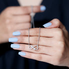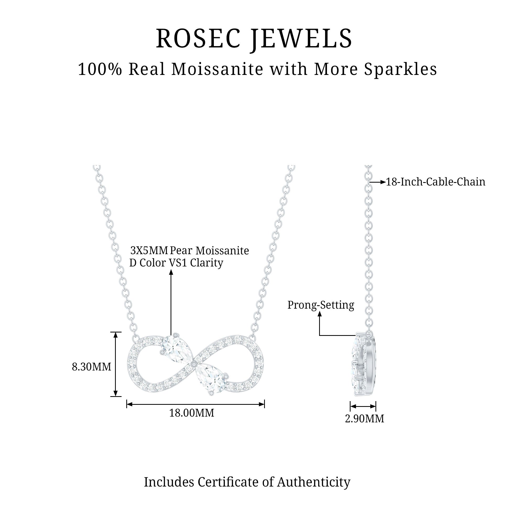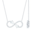 This Moissanite Infinity Necklace is the perfect choice of gift for your lady love to show your immense love towards her. The silver infinity frame is embedded with petite Moissanites of D-VS1 Quality and features two Pear Shape Moissanite stones securely placed in Prong Setting. This Infinity Necklace can elevate your look by adding shine to your outfit, which will embrace your presence. This dazzling pendant dangles in a sturdy cable chain which makes it sit beautifully on the neckline and completes your look. This beautiful Promise Necklace pendant can be worn with another pendant to achieve a layered look or can be styled solely for a simple look. This Minimalist Necklace can be presented as a gift to the ladies around you.