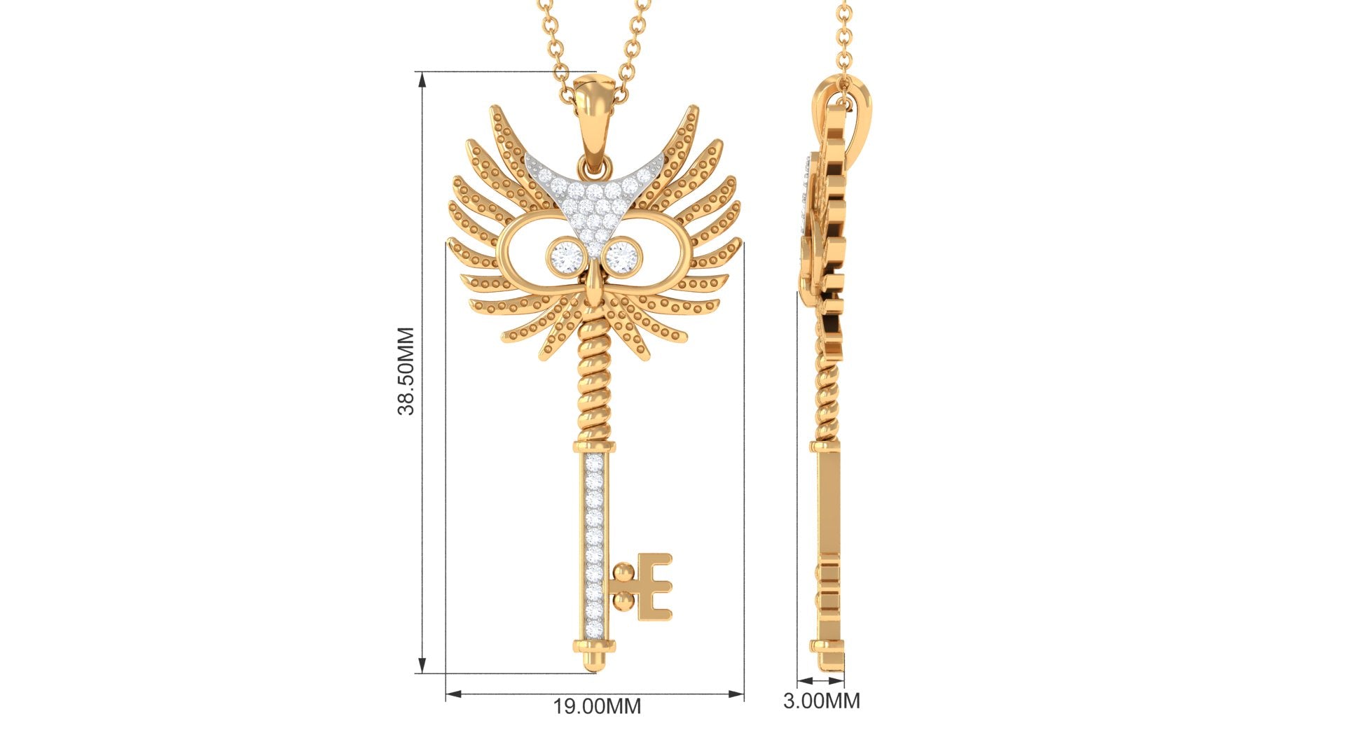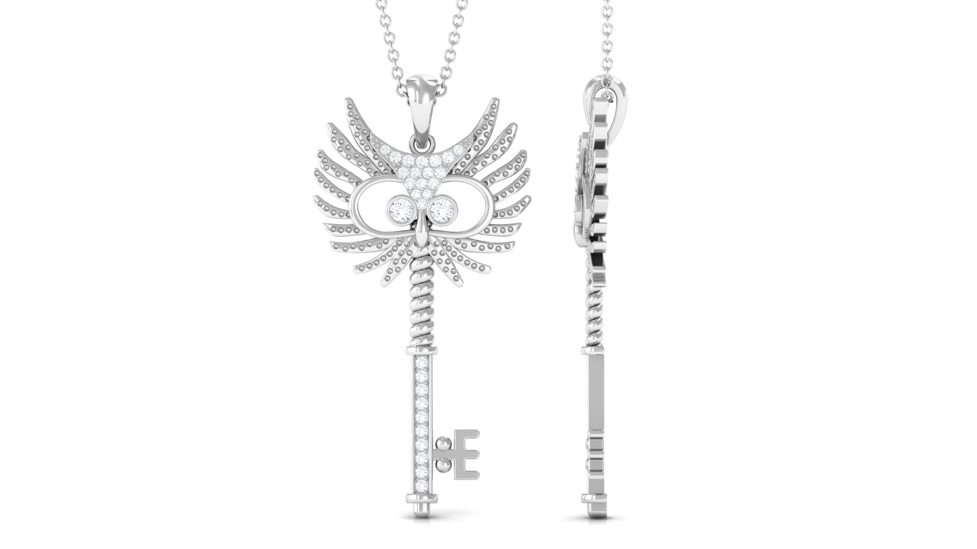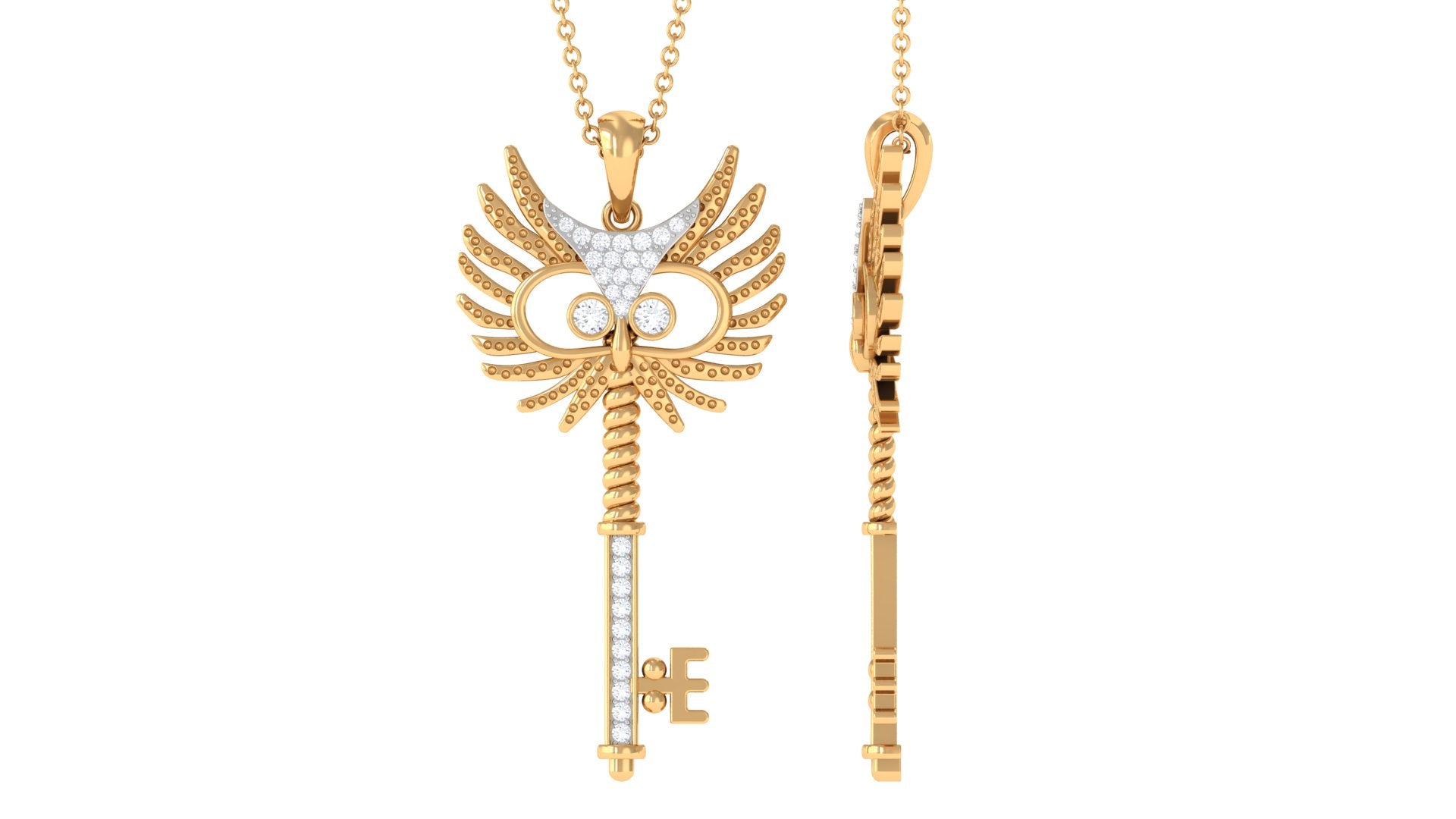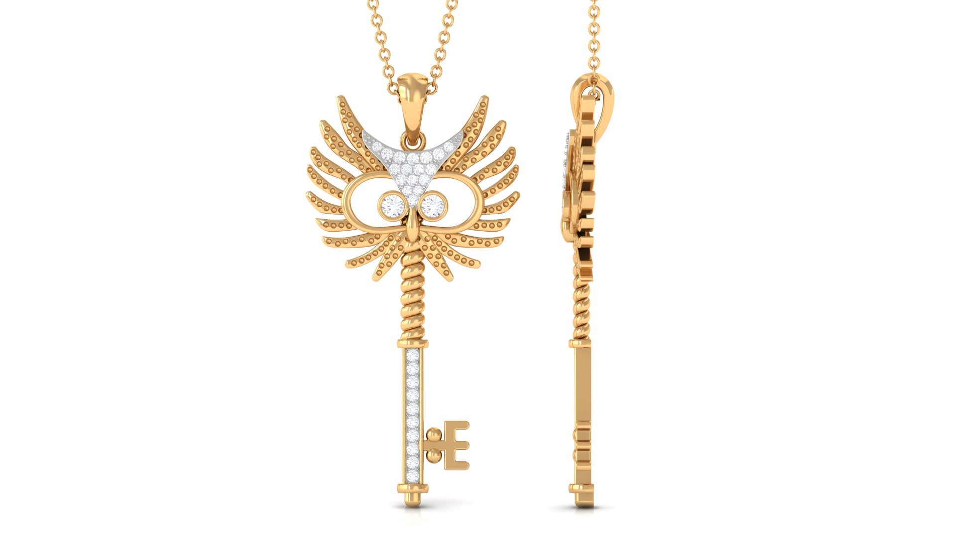 Certified Moissanite Gothic Inspired Key Pendant Necklace