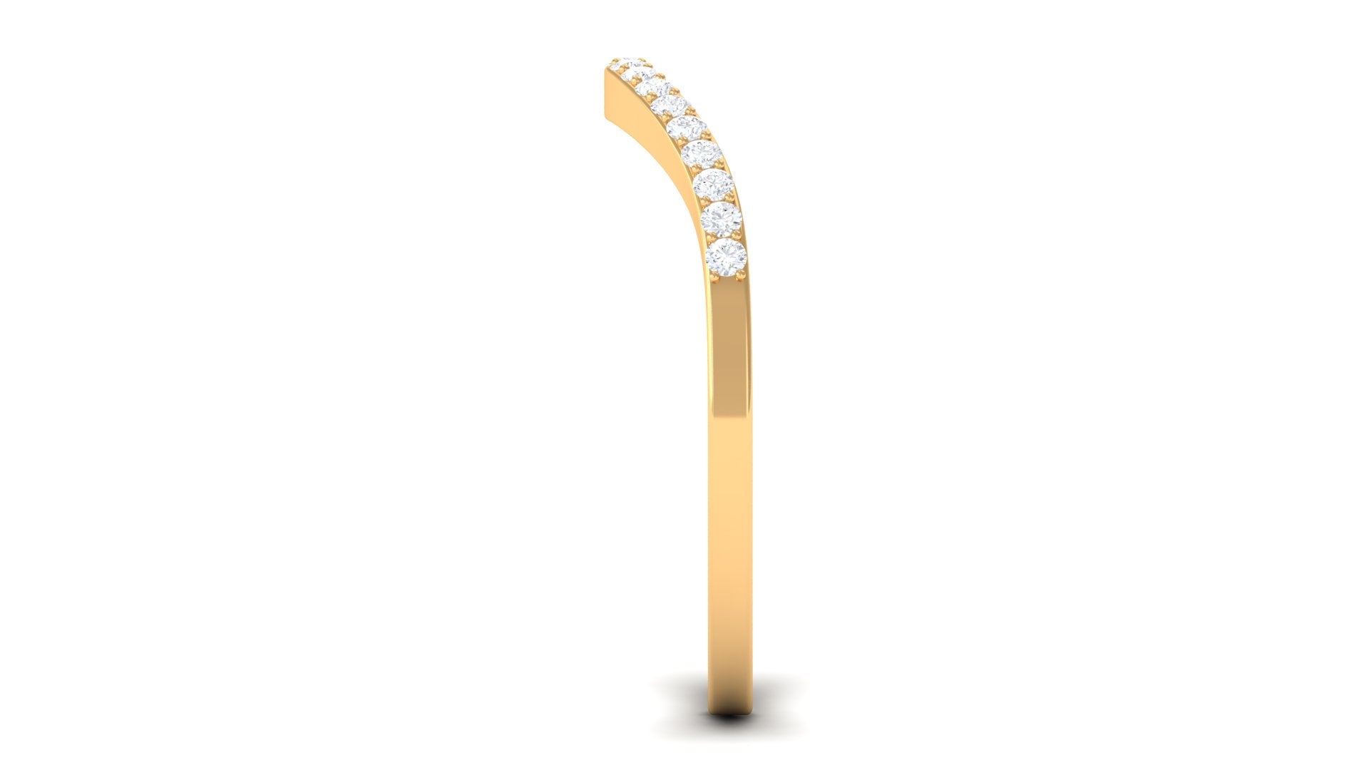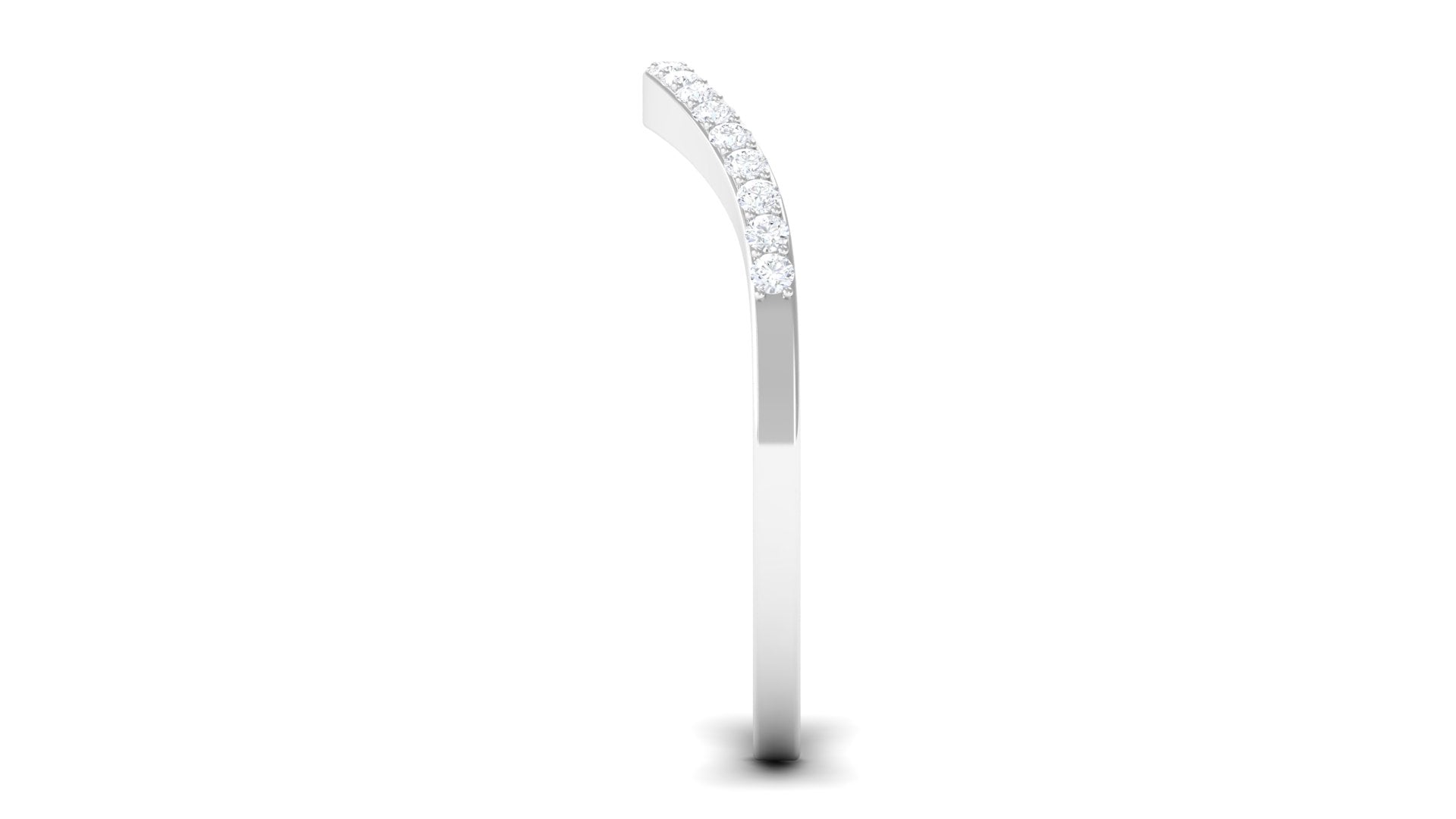 A graceful curve makes this Moissanite Wedding Band a beautiful match for many engagement rings. The design gently follows, creating a balanced and elegant look when worn with or without an engagement ring. Its curved style also makes it perfect for stacking, allowing you to create a layered look that feels both modern and timeless. Round cut moissanite stones are set along half of the band in secure prong setting, adding a lovely sparkle that catches the light with every movement. The stones are arranged in a half eternity style, giving the Engagement Ring Enhancer just the right amount of shine while still keeping the design comfortable for everyday wear. The chevron-inspired shape adds a unique touch, making the Curved Band Ring stand out while still feeling classic. This Moissanite Chevron Ring works beautifully as a wedding band, a stackable ring, or even as a ring enhancer that gives your engagement ring a fresh new look. It is a meaningful piece that represents commitment, love, and the beginning of a lifetime of memories. Available in various metal options, you can choose the one that matches your personal style. The Curved Wedding Band is also offered in US sizes 3 to 13, making it easy to find a comfortable and perfect fit.