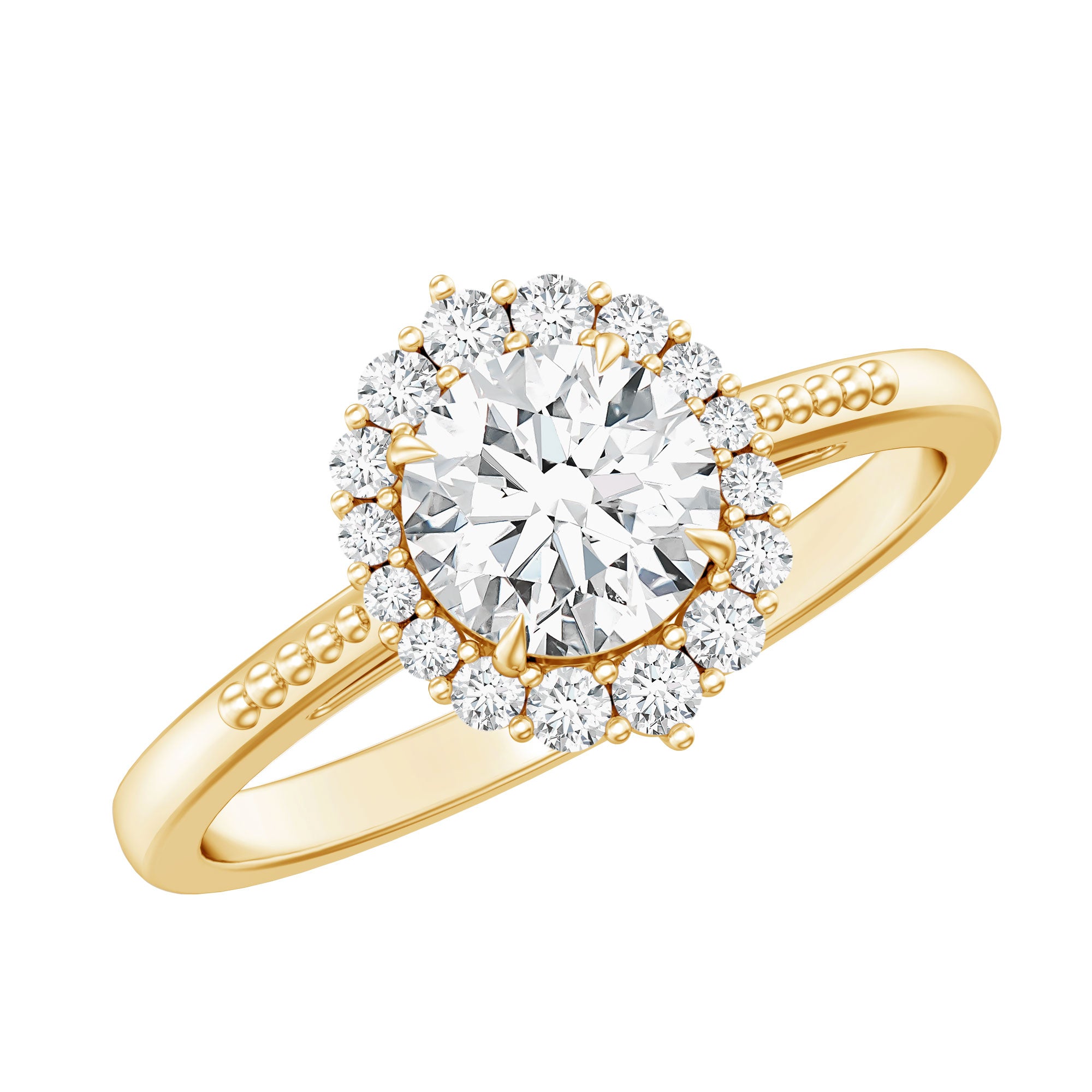Let your forever begin with the brilliance of this Moissanite Halo Engagement Ring, a captivating piece designed to honor your love in its purest form. At the heart of this timeless design sits a 6 MM round cut moissanite, cradled securely in claw setting and framed by a luminous halo of smaller moissanite stones. The halo not only amplifies the center stones fire and brilliance but also adds a layer of sophistication, making this Round Engagement Ring an unforgettable symbol of commitment. Crafted for those who admire elegance with a conscience, this Moissanite Engagement Ring combines the charm of classic design with the radiance of sustainable gemstones. The band’s refined profile allows the halo and center stone to take the spotlight, while still offering a comfortable fit for everyday wear. Whether you are planning a heartfelt proposal or looking to upgrade a cherished piece, this Halo Ring makes a meaningful statement, elegant, radiant, and responsibly crafted. Available in US ring sizes 3 to 13, this piece ensures a flawless fit for every bride-to-be. Delivered in a luxurious jewelry box, it is ready to make the moment unforgettable. Let this 1 Carat Moissanite Ring be the promise you carry every day - brilliant, eternal, and full of love.