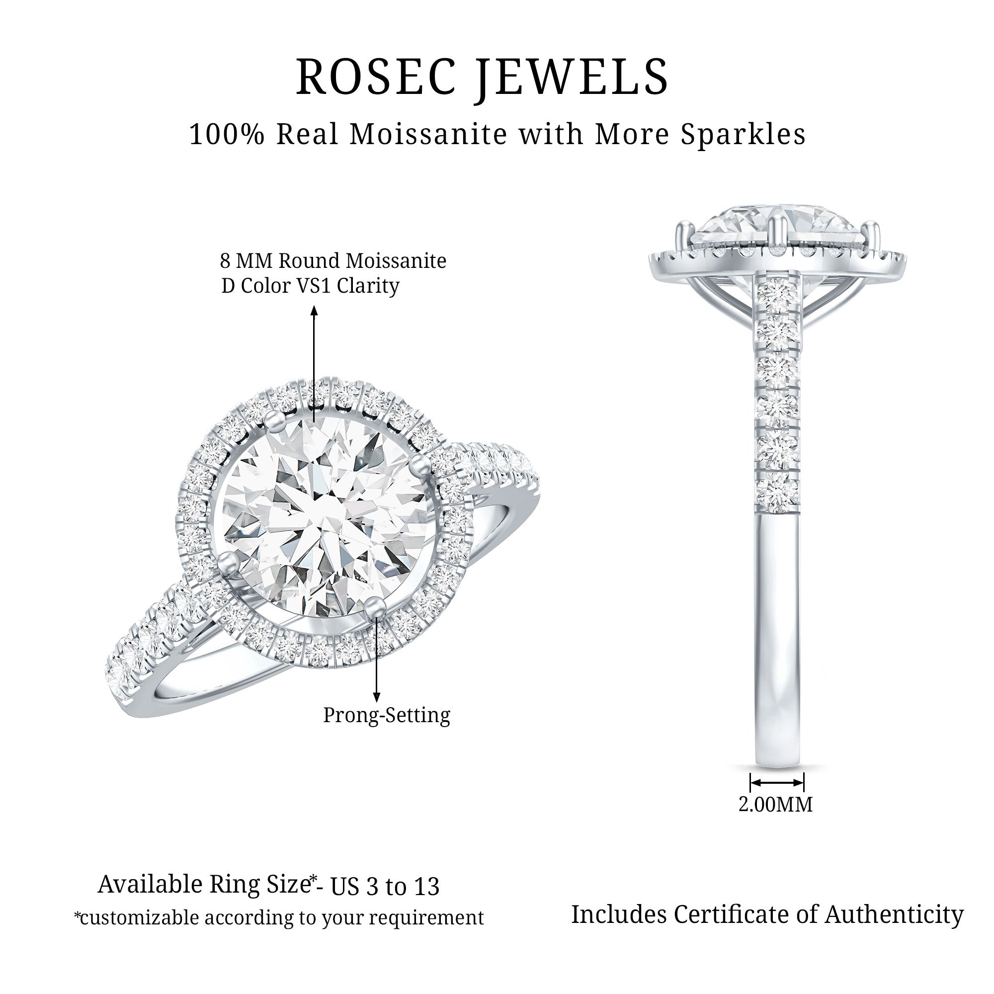 Indulge in the timeless elegance of this Halo Engagement Ring, a testament to your enduring love and commitment. This Fine Ring features a Round Shape Moissanite gemstone that takes center stage, enhanced by the scintillating Halo and Side Stones, for a luxurious appeal. The sparkling ethically sourced Moissanite gemstones are known for their exceptional brilliance. Crafted with love and perfection, this Engagement Ring is a perfect choice to celebrate special moments.