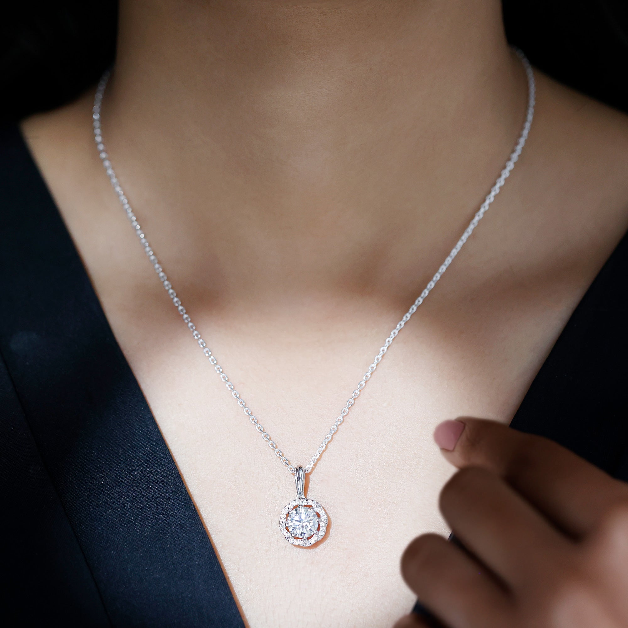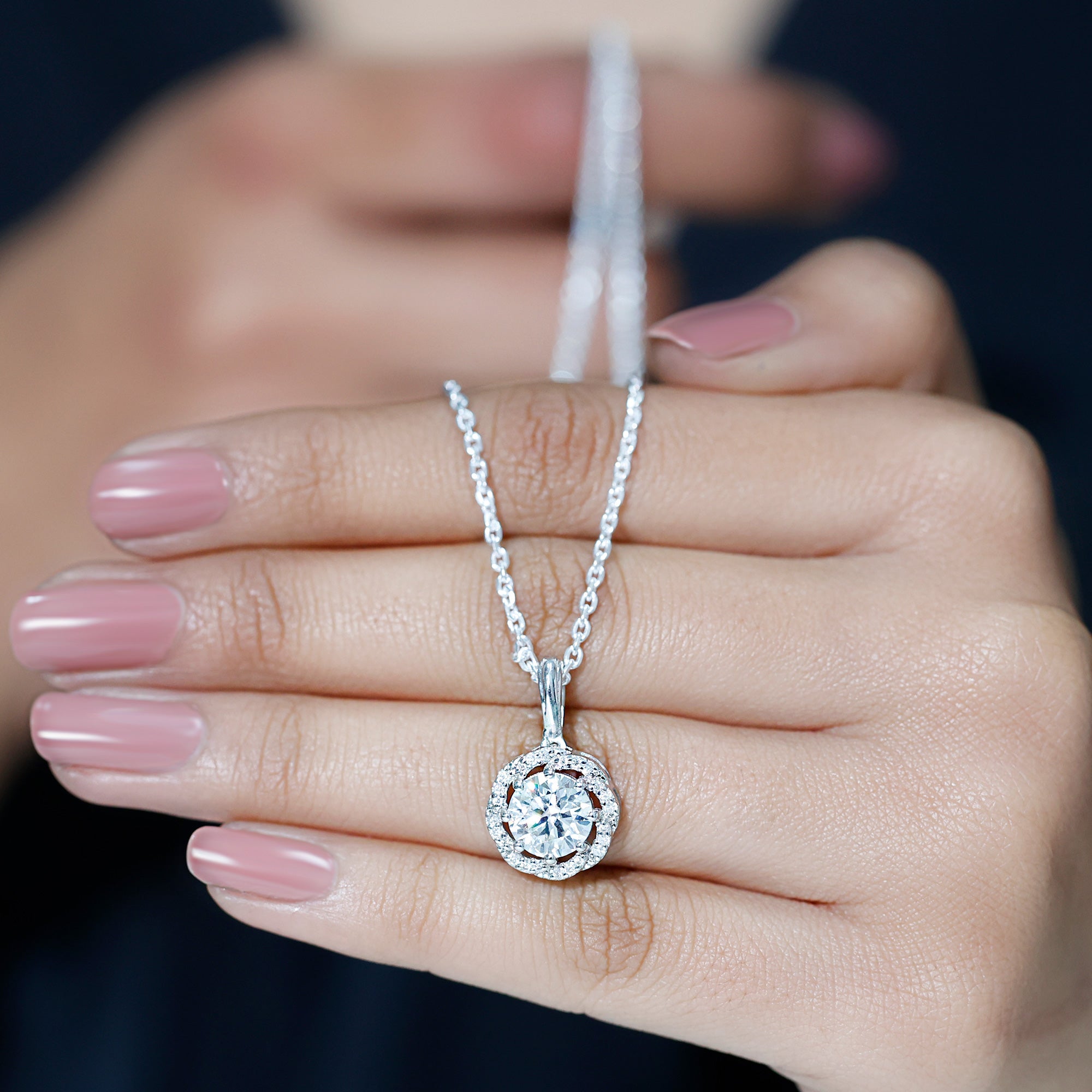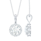 Certified Moissanite Halo Pendant Necklace with Silver Chain