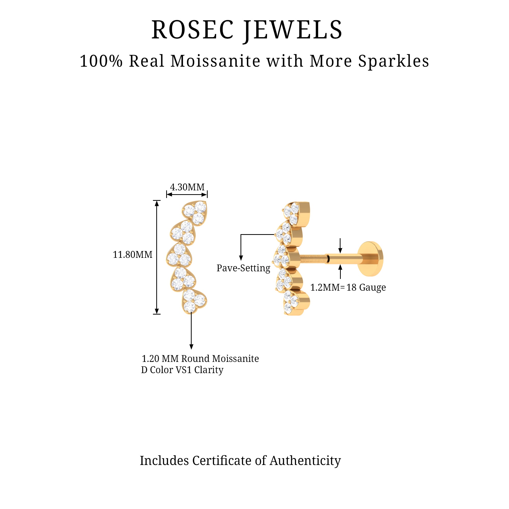 Elevate your look with this stunning Moissanite Heart Climber Earring adorned with Round Cut Moissanite in Pave Setting. It arrives ready to gift in a Signature Box and features a Flat Back Closure to keep it securely in place on your Helix, Cartilage, or Upper Lobe Piercing. Ideal for a special occasion, this Curved Cartilage Earring makes a perfect gift for your loved ones.
