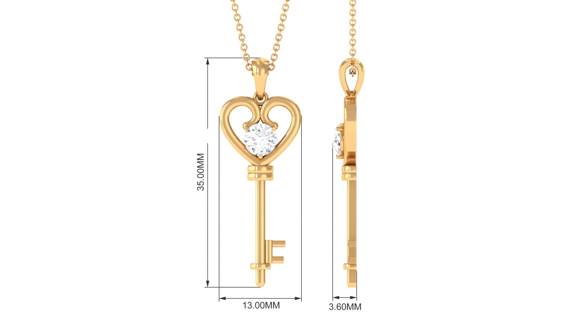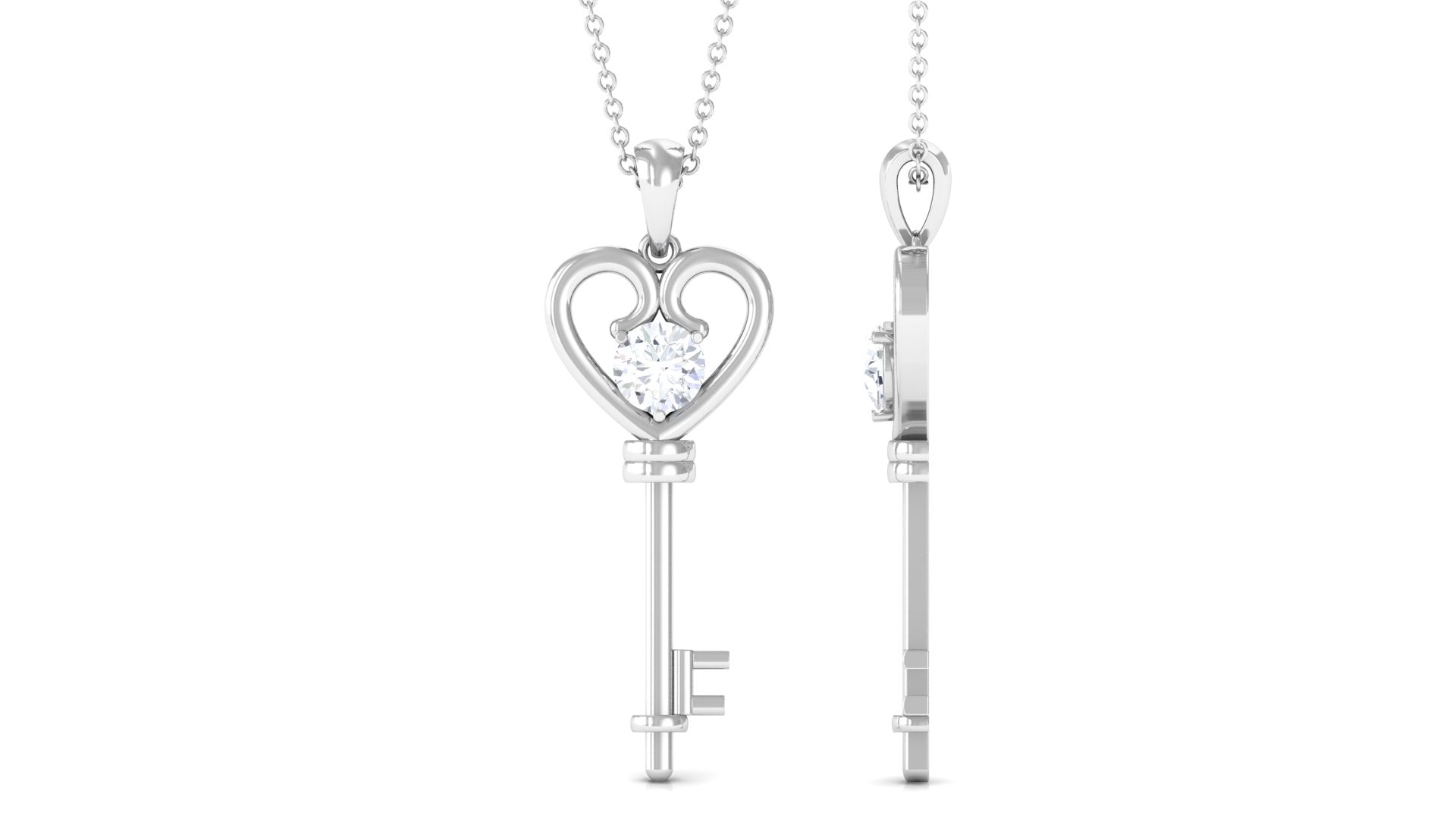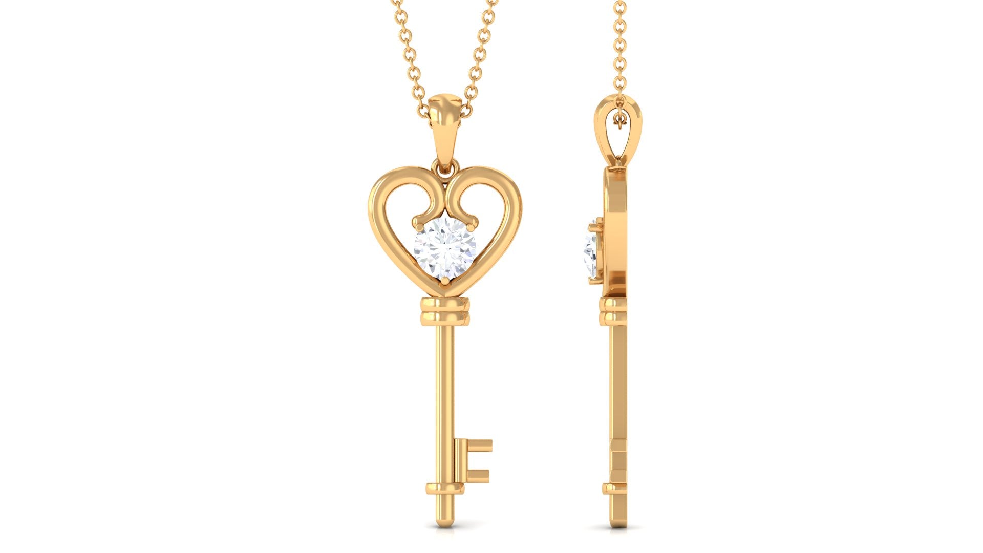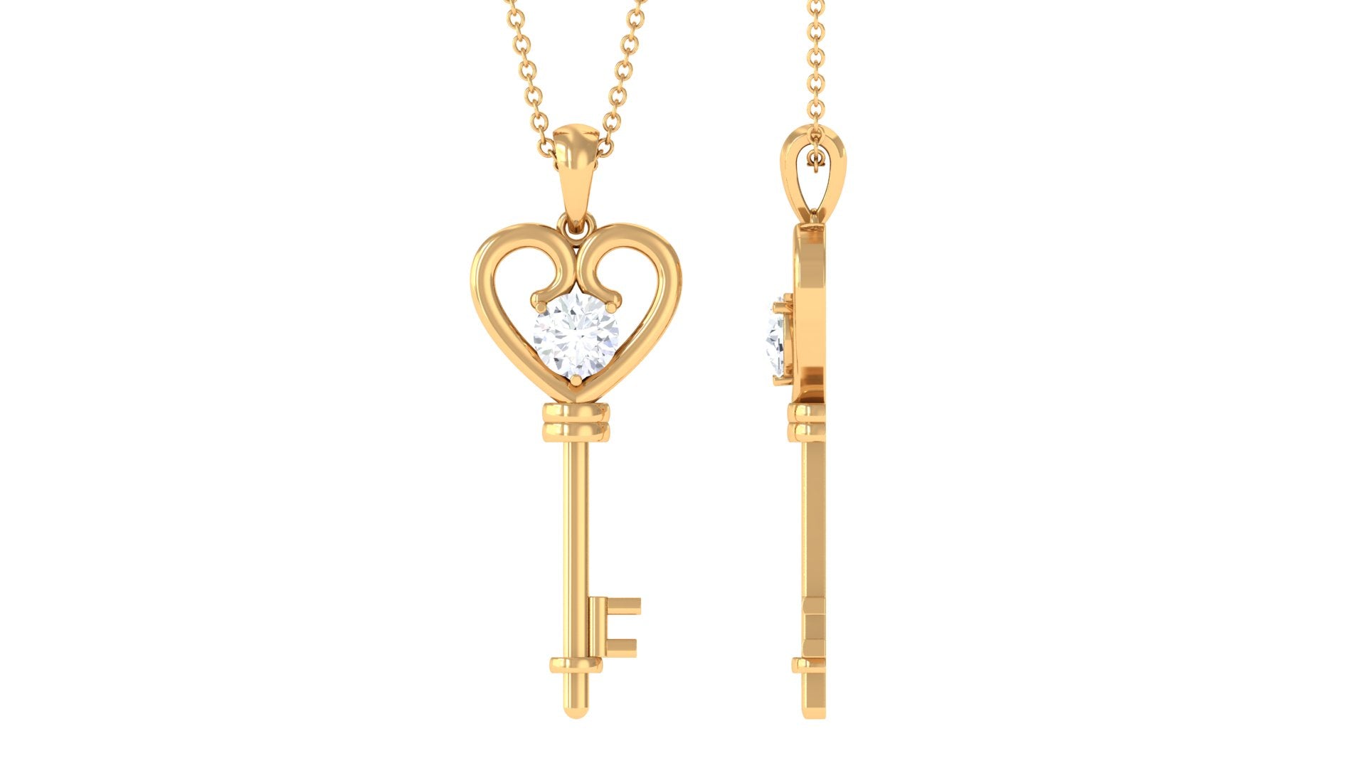 Certified Moissanite Heart Key Pendant Necklace