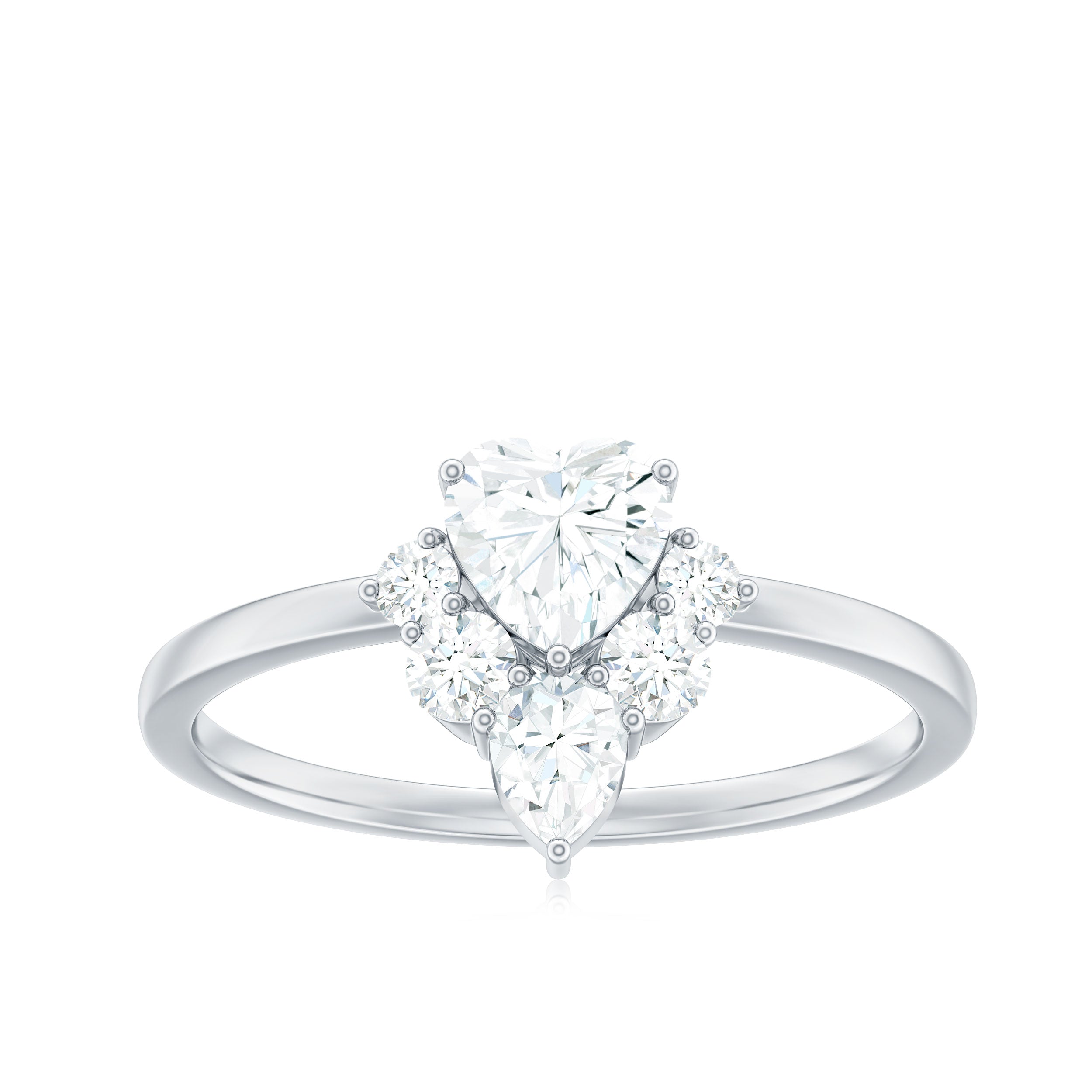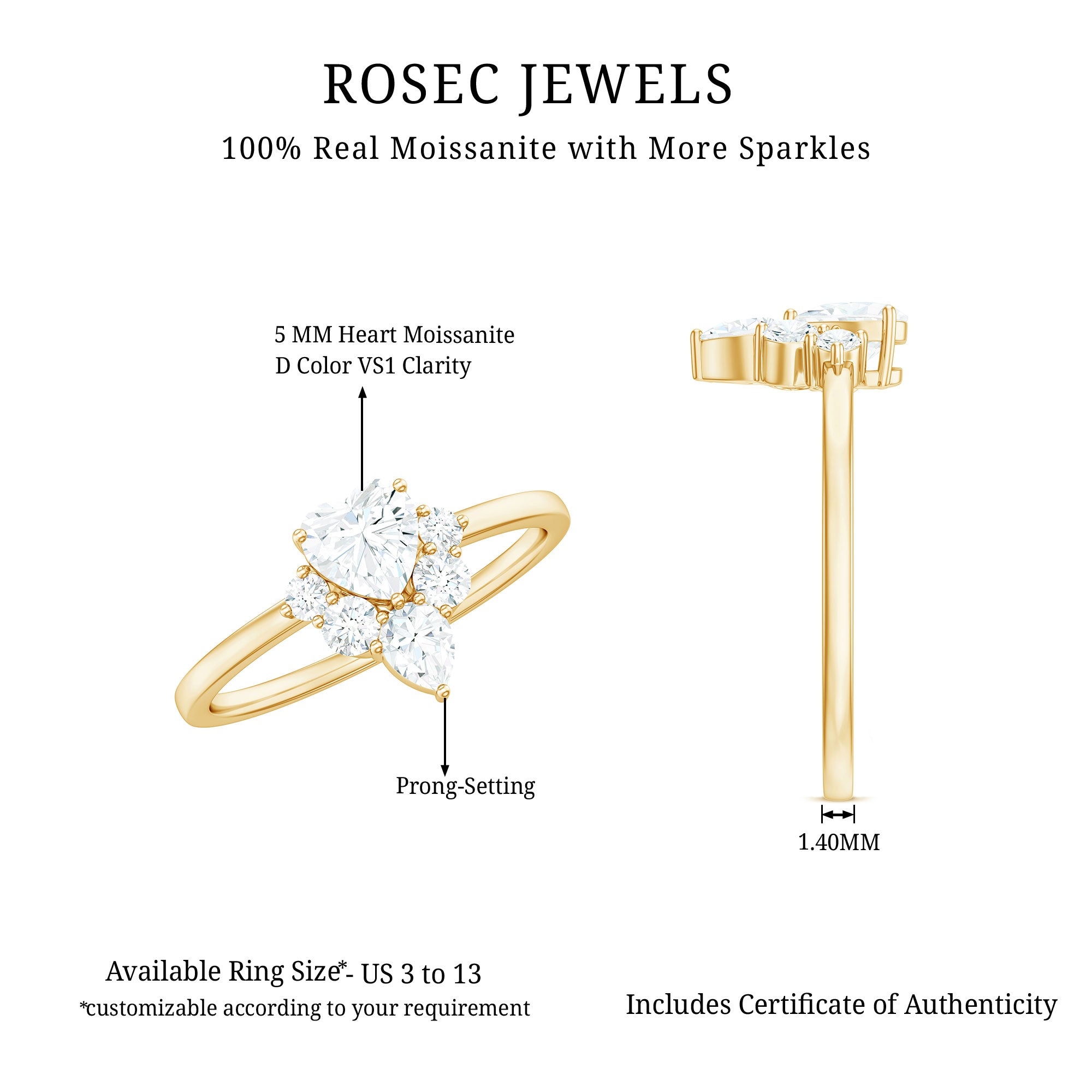 Capture her heart with this exquisitely designed Heart Shaped Moissanite Ring, a perfect symbol of love, devotion, and timeless elegance. Whether you are planning a romantic proposal or marking a special milestone, this beautifully handcrafted ring is sure to leave a lasting impression. At its center sparkles a dazzling 5 MM heart shaped moissanite set in prong setting. Elevating the design is a delicate half halo of pear and round cut moissanite stones, gracefully framing the center stone and adding depth and dimension to the overall look. The blend of shapes creates a harmonious fusion of classic charm and contemporary flair, ideal for the modern woman with a love for timeless beauty. The band is thoughtfully crafted for all-day comfort and durability, ensuring it feels as good as it looks. Available in a variety of metal types and colors, this Heart Promise Ring is offered in US sizes 3 to 13, making it easy to find the perfect fit. Presented in a luxurious signature jewelry box and accompanied by a gemstone certificate, this Moissanite Promise Ring for Her makes a heartfelt gift for proposals, anniversaries, or simply celebrating your unique love story.