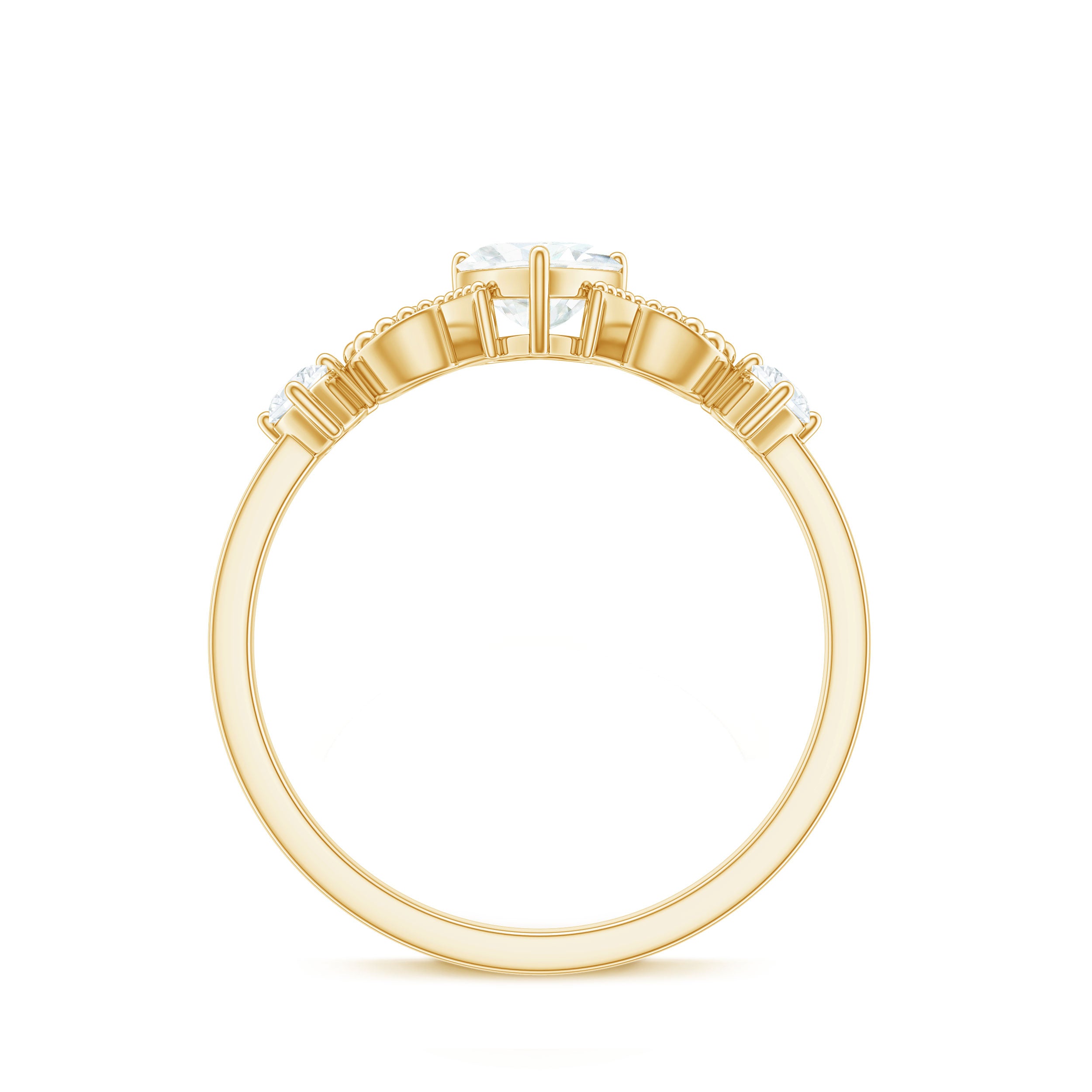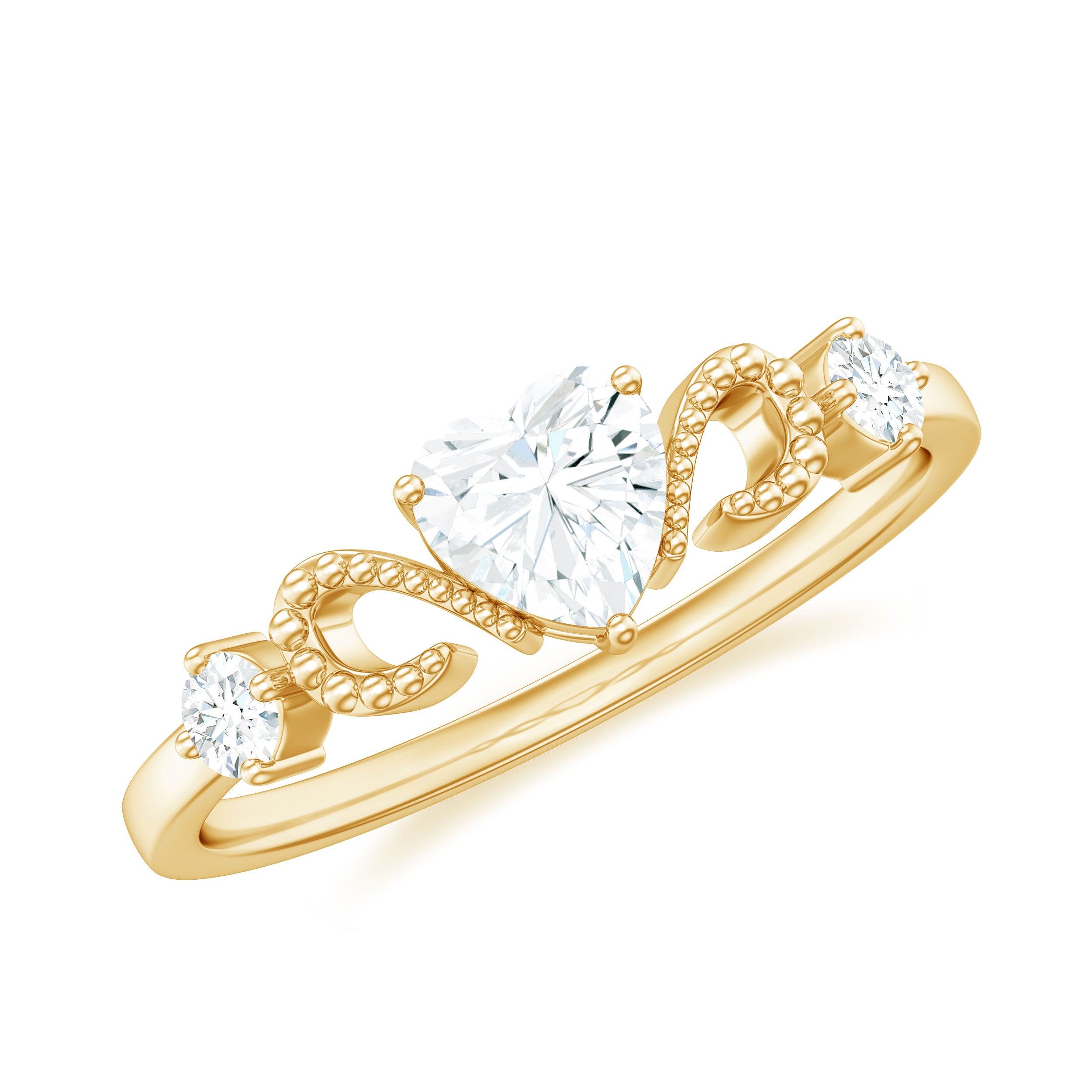 Certified Moissanite Heart Promise Ring with Beaded Detail