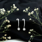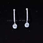Adorn your ears with these Moissanite Hoop Earrings, precisely crafted with 14K White Gold Plated Silver. The earrings feature 5 MM Round Shape Moissanite dangles from a stone-studded hoop. These Drop Earrings hold the classic shine of D-VS1 Quality Moissanite securely placed in Prong Setting. These Earrings with Screw on Backs stays on place throughout the day. These classic earrings can be presented to your special one on the occasion, such as birthdays or graduation.