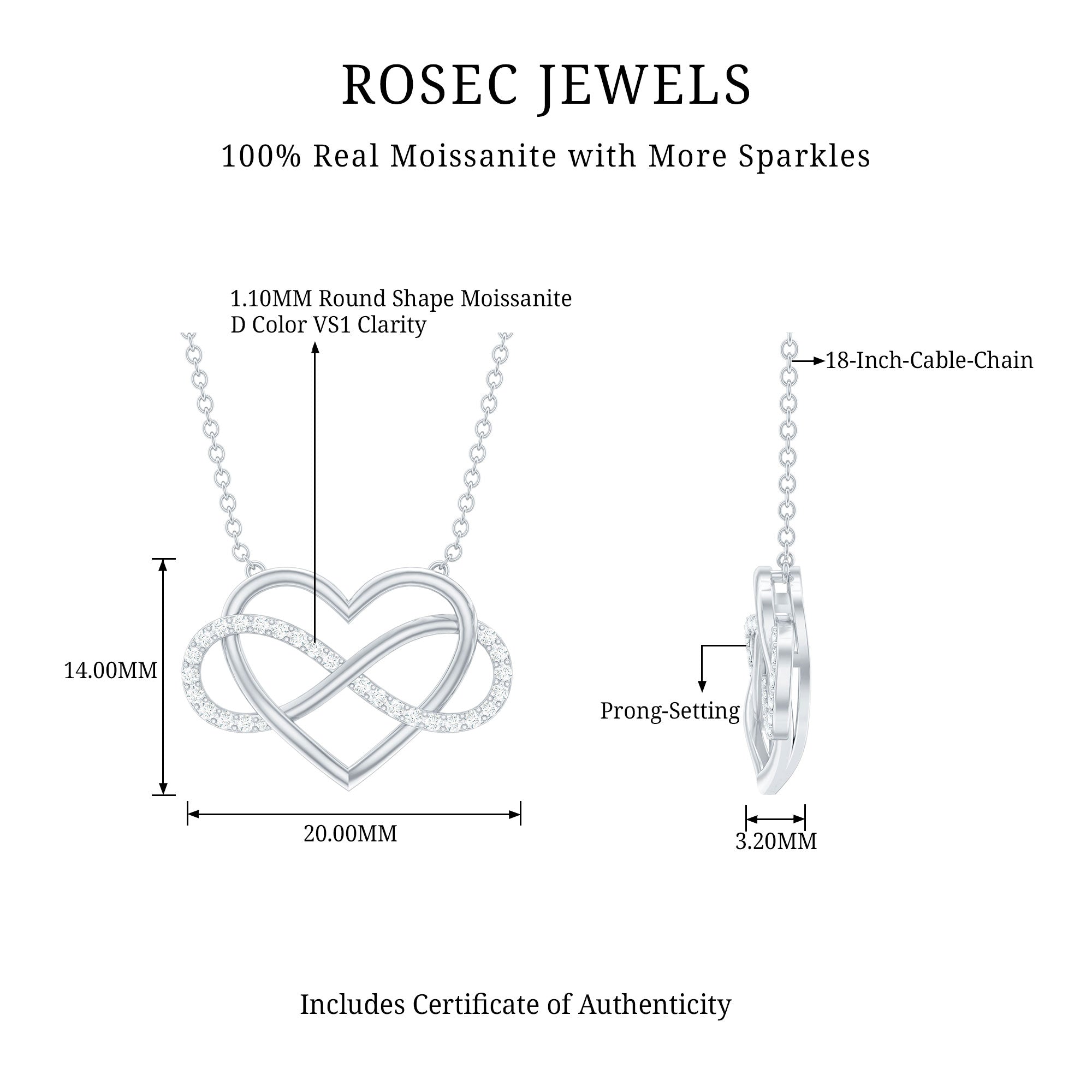 Certified Moissanite Infinity Heart Necklace