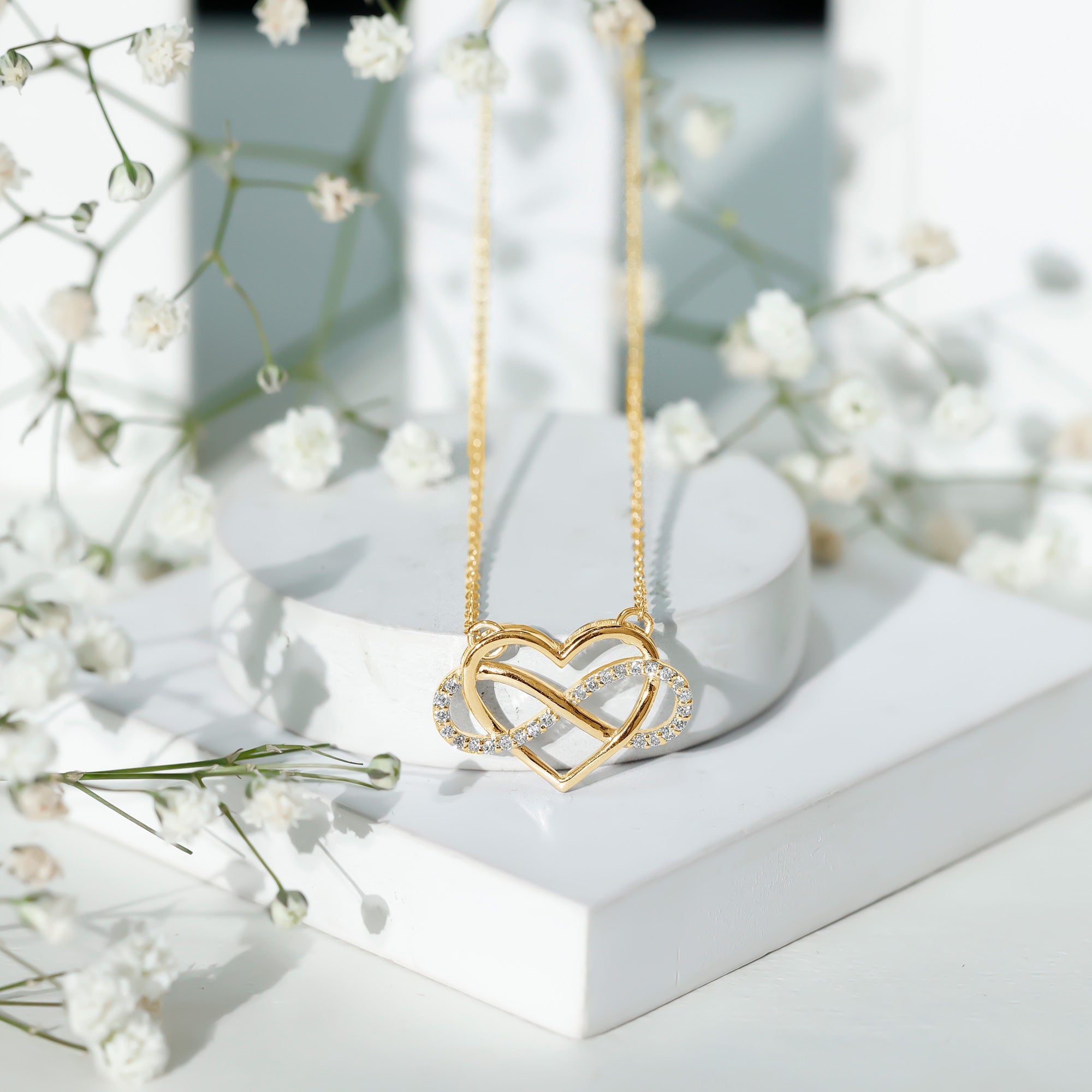 Experience the captivating allure of our minimalistic heart infinity necklace, where a heart frame elegantly intertwines with an infinity motif. This exquisite design strikes the perfect balance, offering just the right amount of sparkle to keep you dazzling throughout the day.