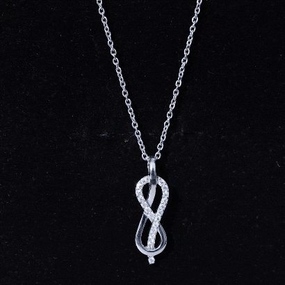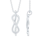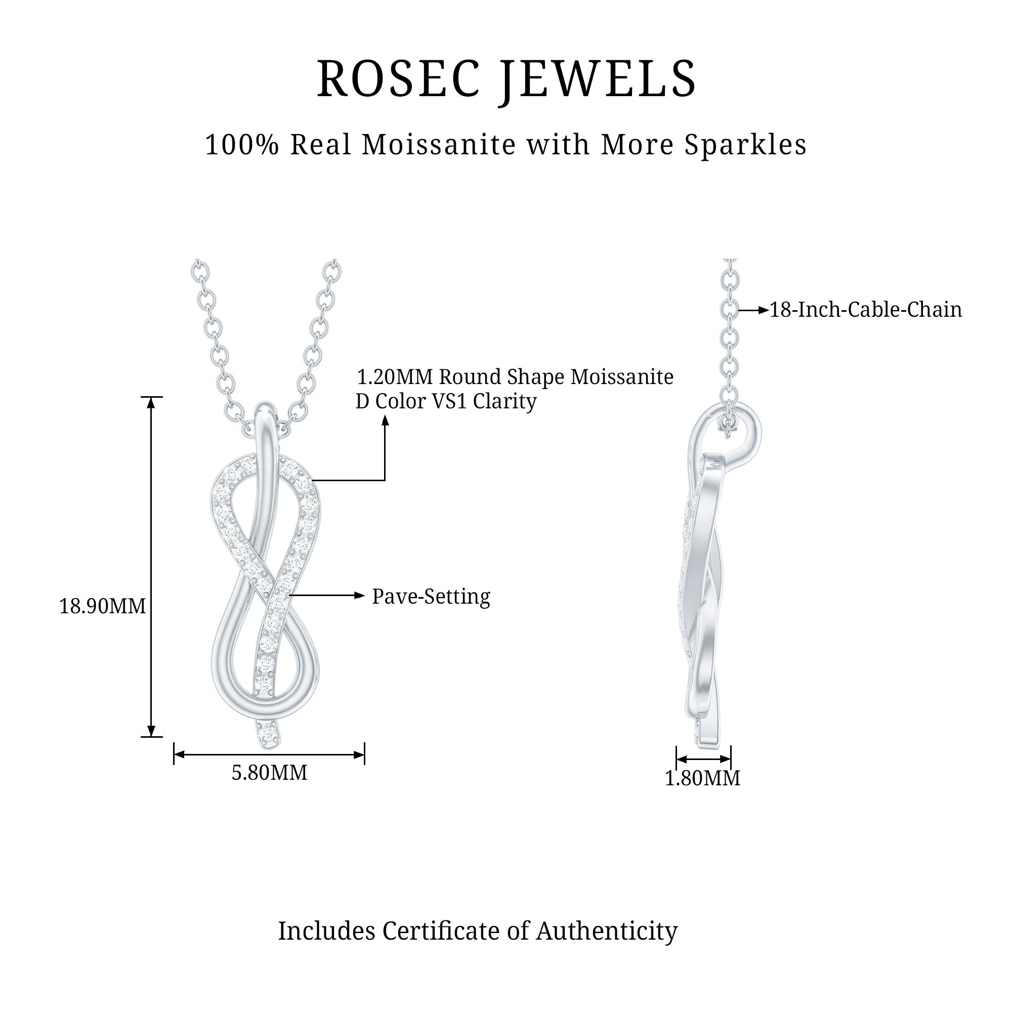 This Moissanite Infinity Pendant can be presented as the symbol of forever love to your special one. The pendant is crafted with White Gold Plated Silver that features Round Shape, Small Pave Set Moissanite of D-VS1 Quality that partially covers the metallic frame to exude a brilliant shine. This Promise Necklace can be presented as a symbol of forever love to your better half. This Pendant with a chain is perfect to complete your look for the special day. This Infinity Necklace, studded with Moissanite, not only completes the look but also invokes confidence, which helps you to slay the day with grace and elegance.