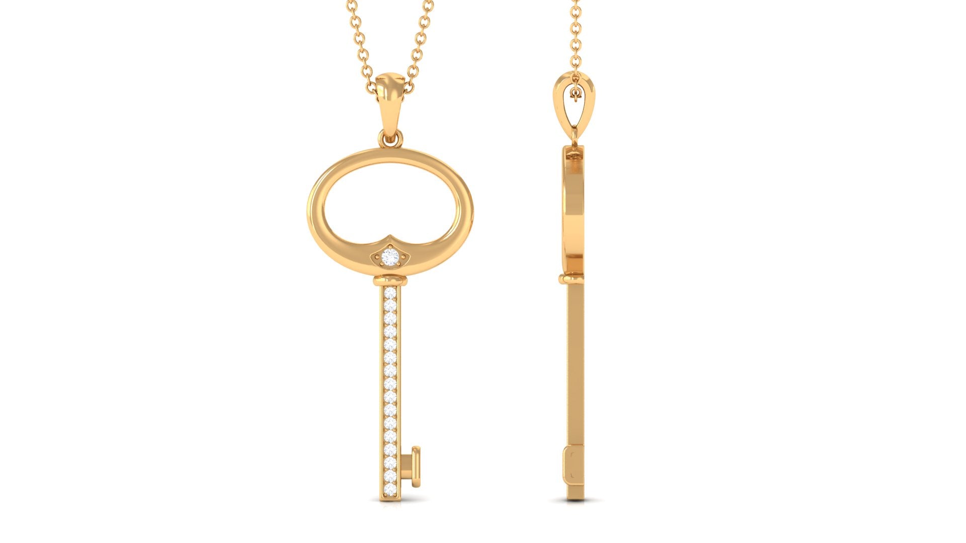 This Moissanite Pendant is a special jewelry for her that will always be close to her heart. The Round Cut Moissanite in Surface Prong Setting on Key Necklace will become her everyday pick. Layer this or go solo in either way this Key Pendant Necklace add glitters to your outfit.