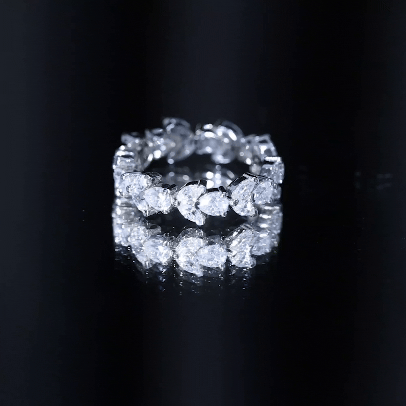Certified Moissanite Leaf Eternity Ring in Prong Setting