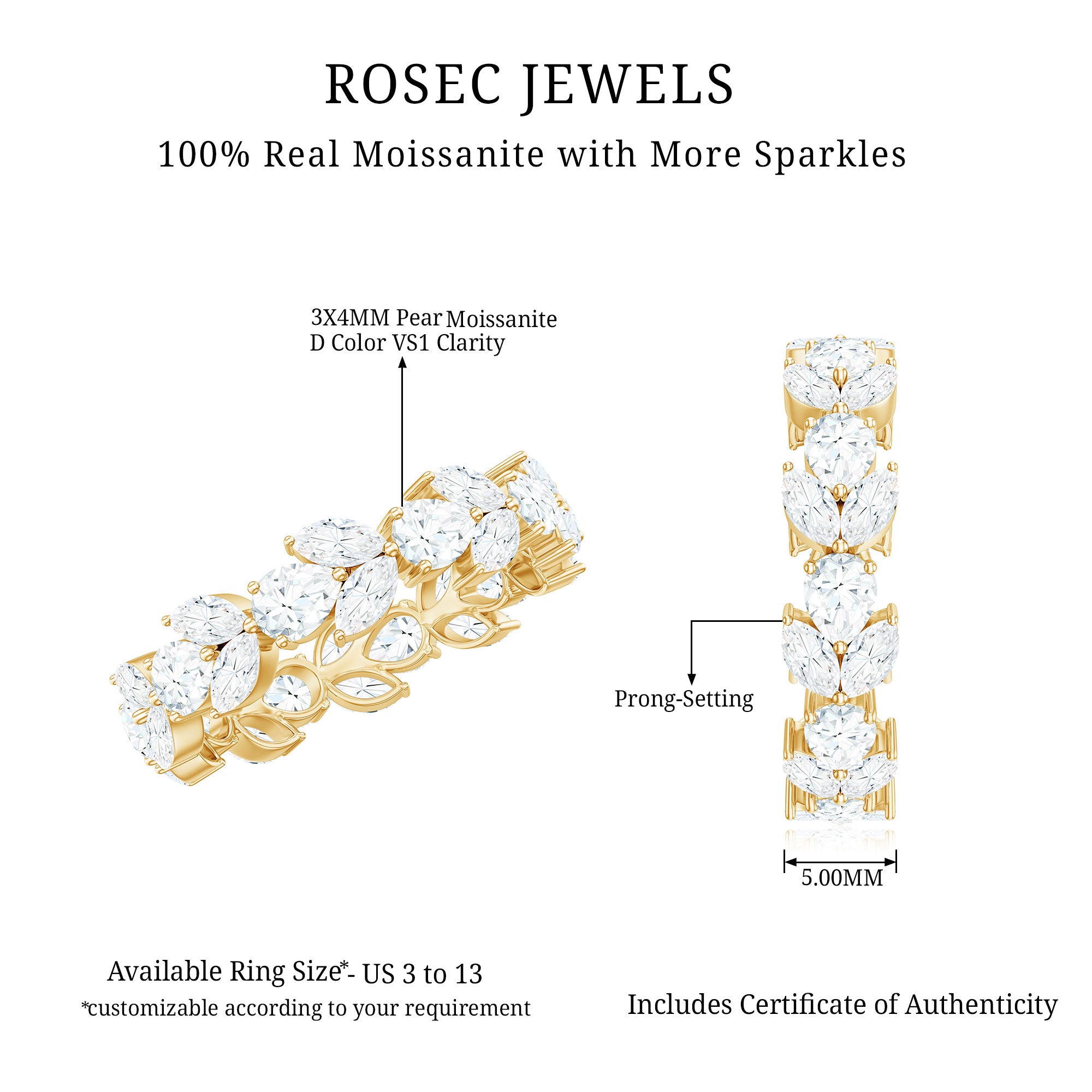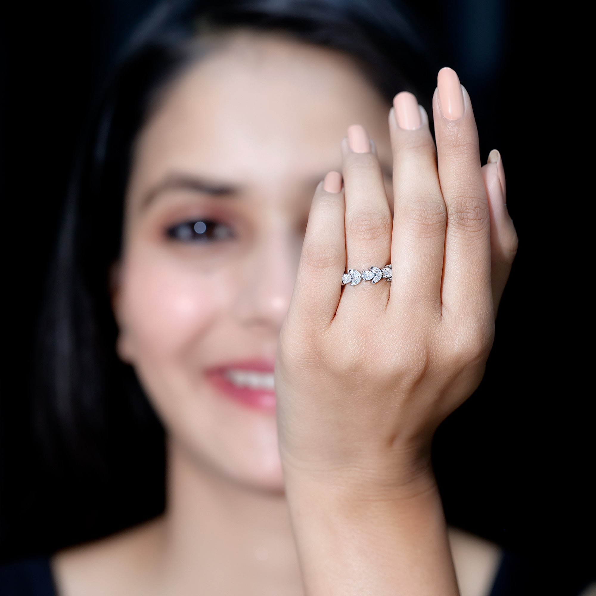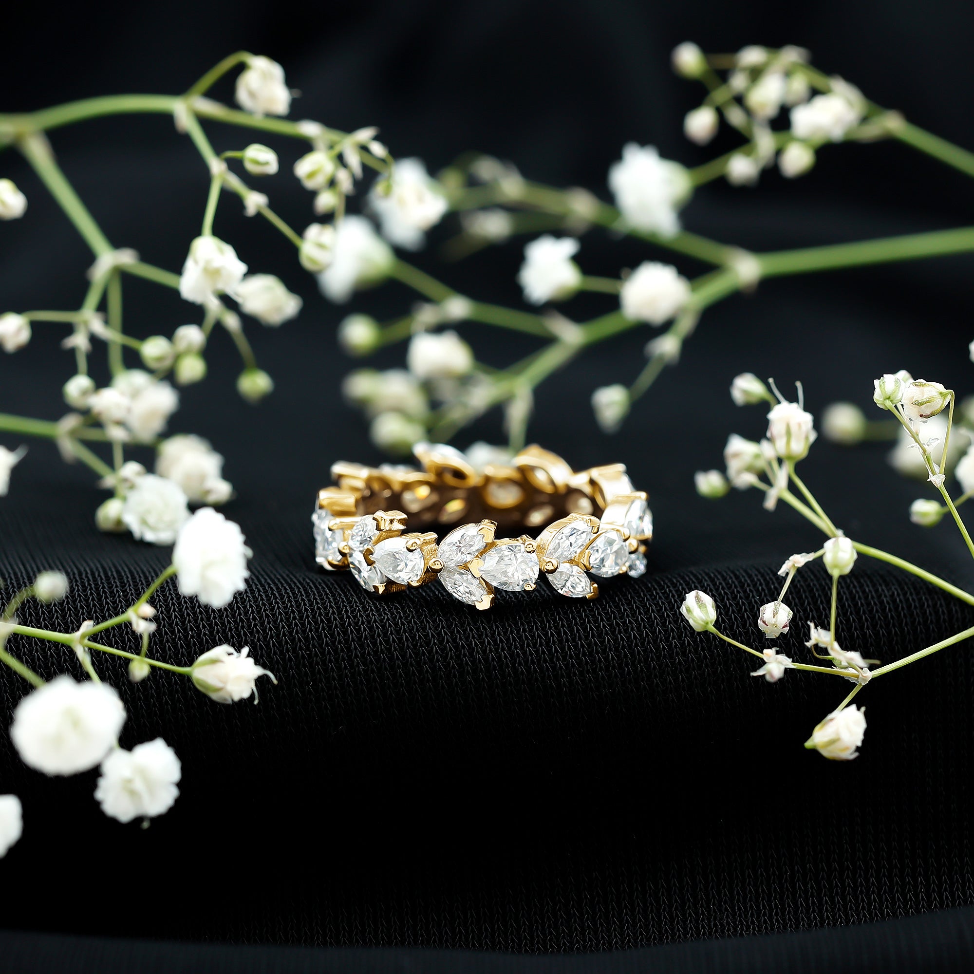 Charm up your look with this elegant Leaf Eternity Ring, a perfect choice for anyone who loves nature inspired jewelry. This Fine Ring features Pear and Marquise Shape Moissanite gemstones set in Prong Setting. A celebration of natures beauty and your eternal bond, capturing moments that will forever be cherished.