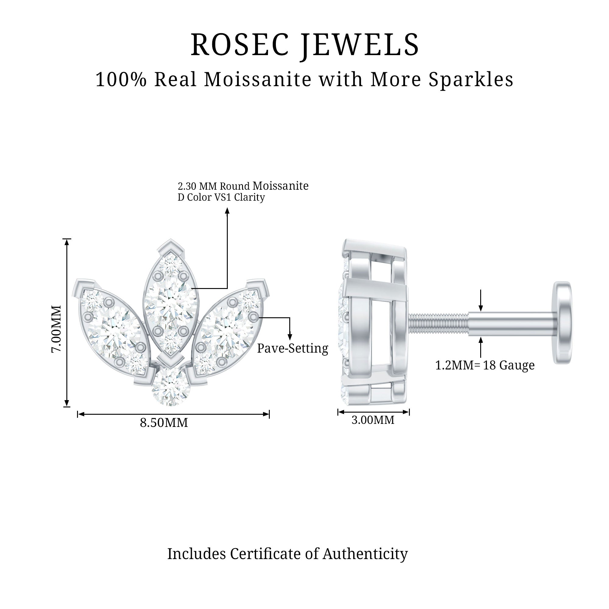 The Moissanite Lotus Earring features a delicate lotus flower design, adorned with genuine Round Cut Moissanite in Pave Setting. Highlight your Helix, Cartilage, or Upper Lobe with this trendsetting Moissanite Earring and style it with your casual and party attire.