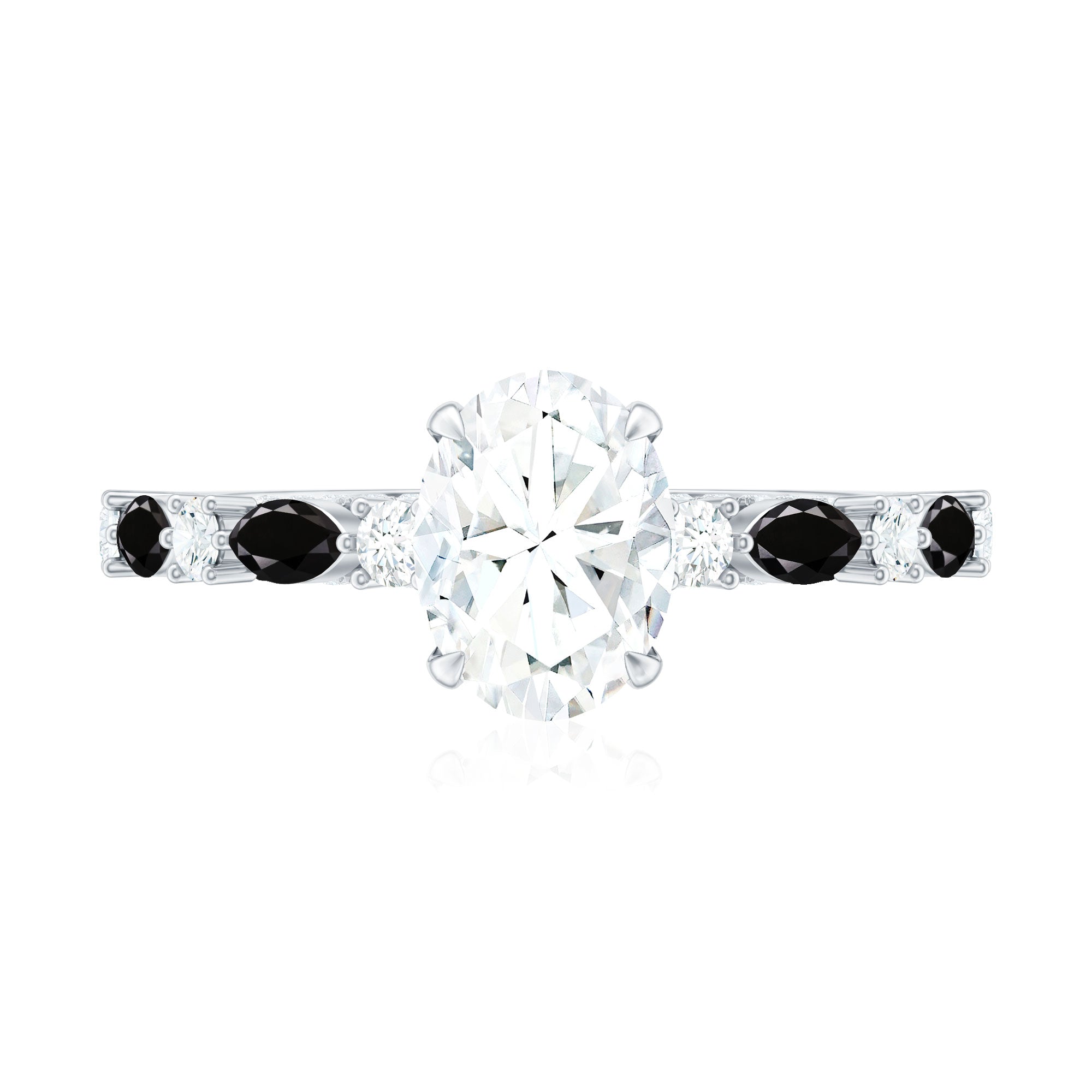 Certified Moissanite Oval Engagement Ring with Real Black Spinel