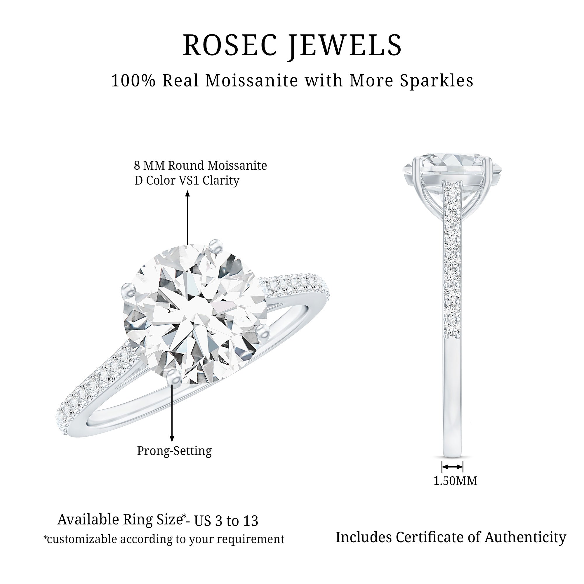 Certified Moissanite Round Cut Solitaire Ring with Side Stones
