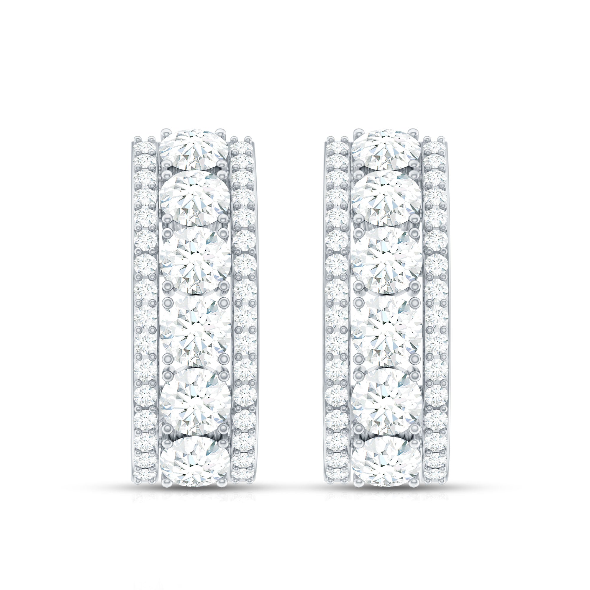 Elevate your elegance on your special day with these exquisite J Hoop Bridal Earrings adorned with dazzling Round Cut Moissanite, delicately placed in a prong setting. The sophistication of these earrings is further enhanced by their convenient Screw Back design, ensuring a secure and comfortable fit. With these mesmerizing Moissanite J Hoop Earrings, your glamour quotient is sure to soar, allowing you to shine brightly on your big day.