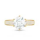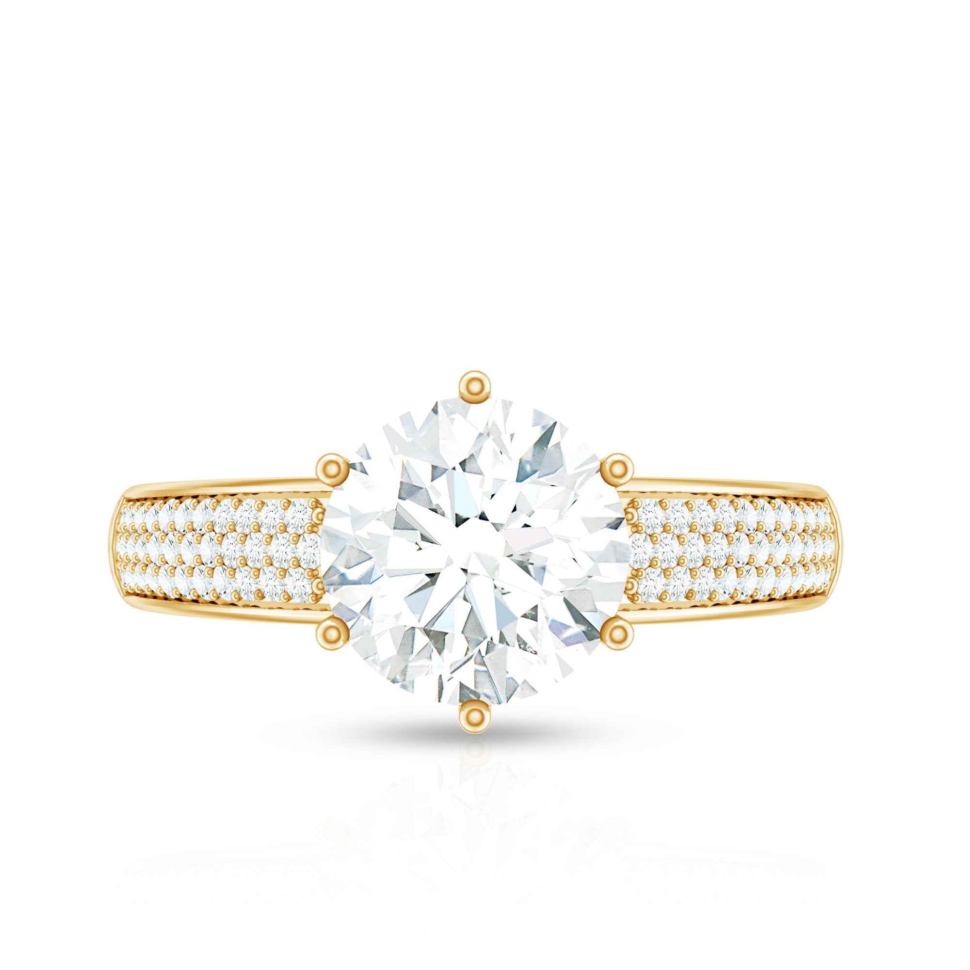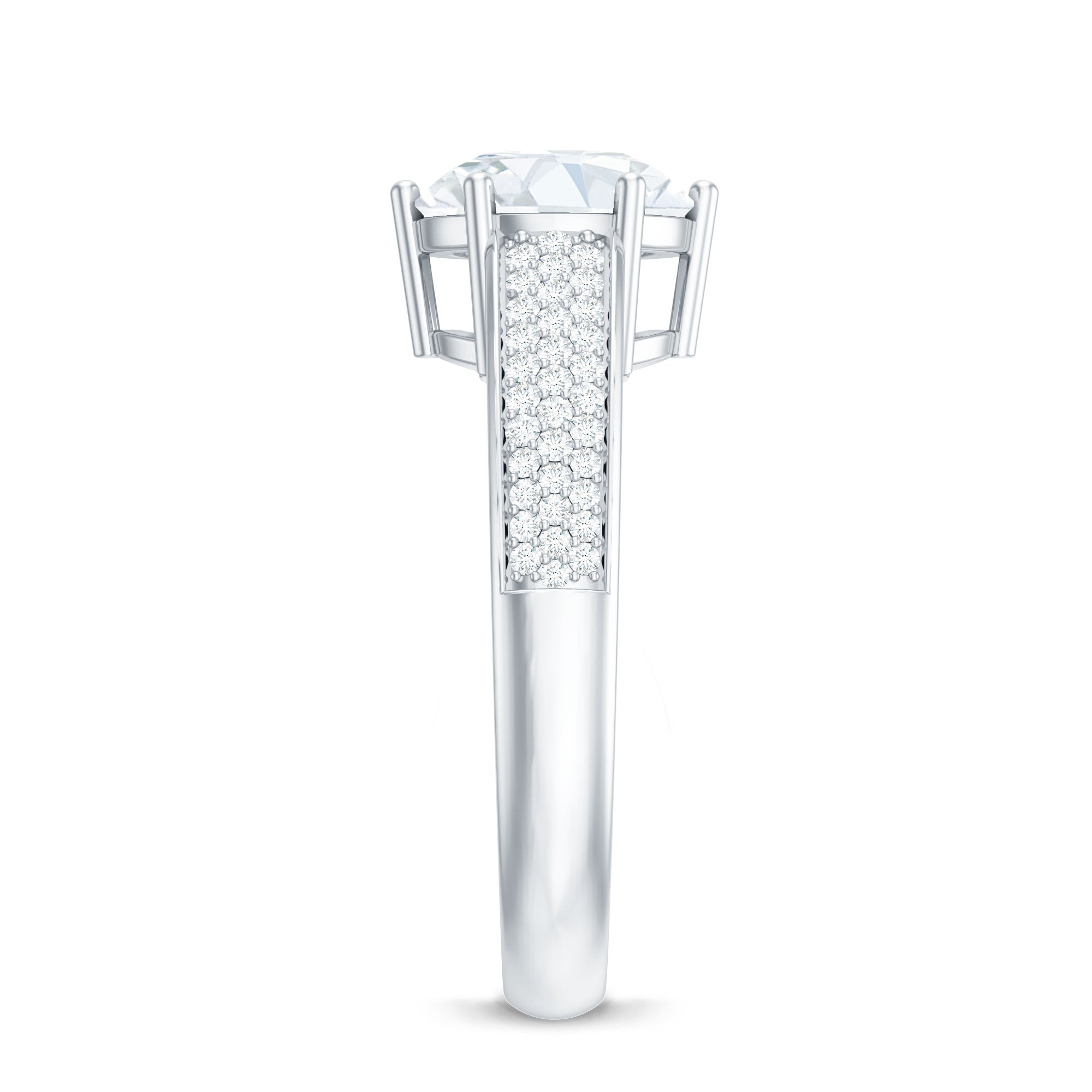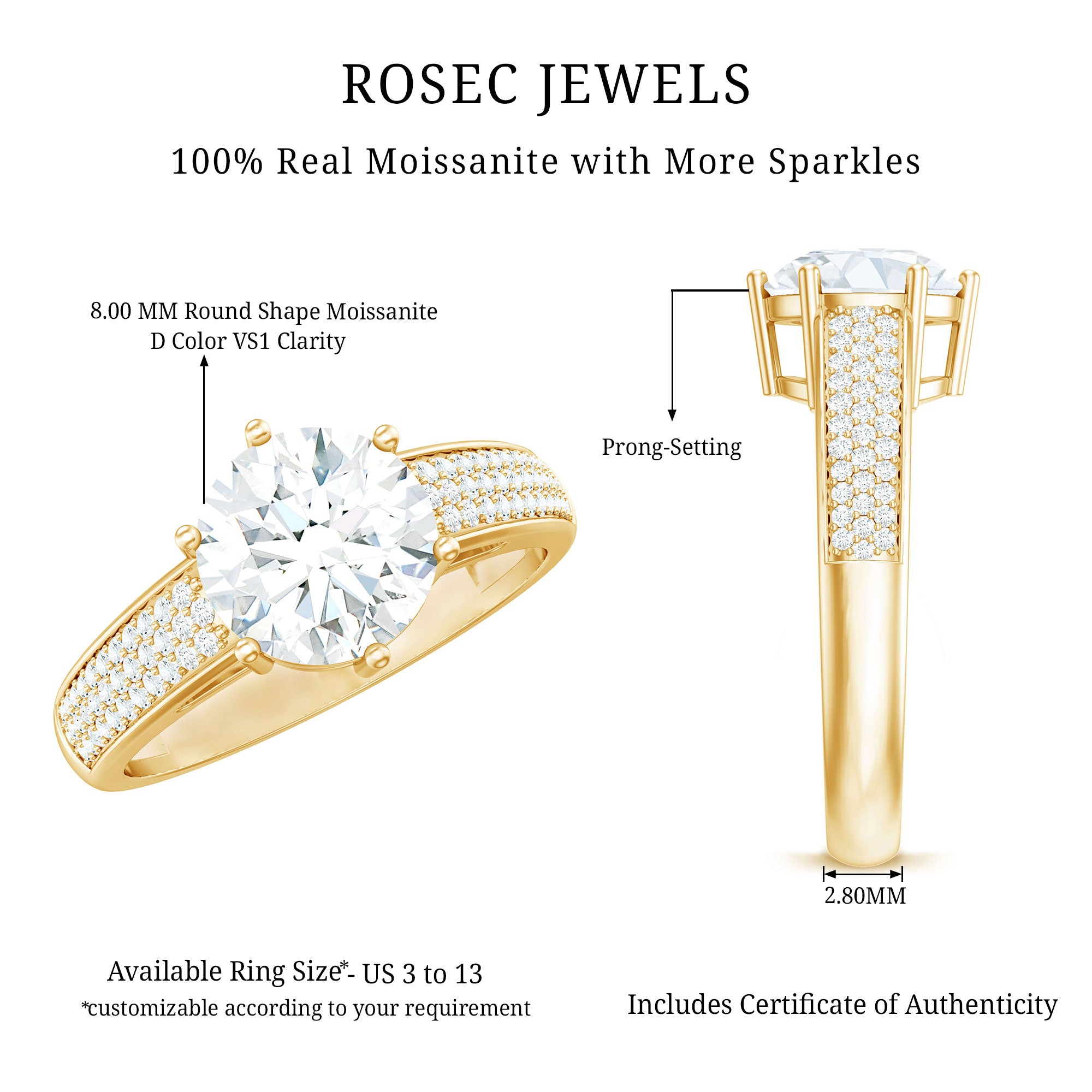 This Round Moissanite Engagement Ring is a beautiful mix of modern sparkle and timeless design, perfect for someone who loves refined elegance. Crafted with care and attention to detail, this Side Stone Engagement Ring is designed to shine from every angle and celebrate love in its purest form. At the center sits an 8 MM round cut moissanite, held securely in prong setting. The band features a delicate row of pave set moissanite side stones, adding soft shimmer that enhances the center stone without overpowering it. The smooth band ensures a comfortable fit, while the sparkle brings elegance to both everyday wear and special occasions. Whether you are preparing for a heartfelt proposal or simply looking for a meaningful gift, this 2 Carat Moissanite Ring is a lovely way to mark the moment. The combination of classic style and modern brilliance makes it a piece to be treasured for years. Available in multiple metal colors and ring sizes, this Moissanite Side Stone Ring is perfect for someone who values both simplicity and sparkle. It comes beautifully packaged, ready to celebrate your story of love and commitment in a way that is thoughtful and unforgettable.