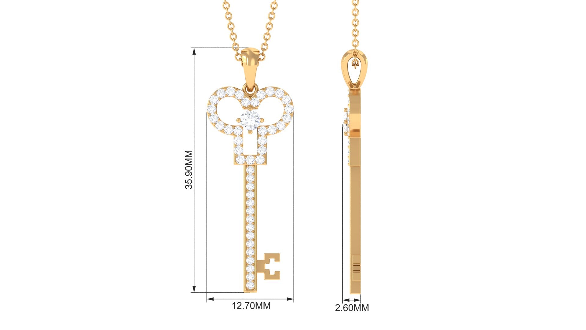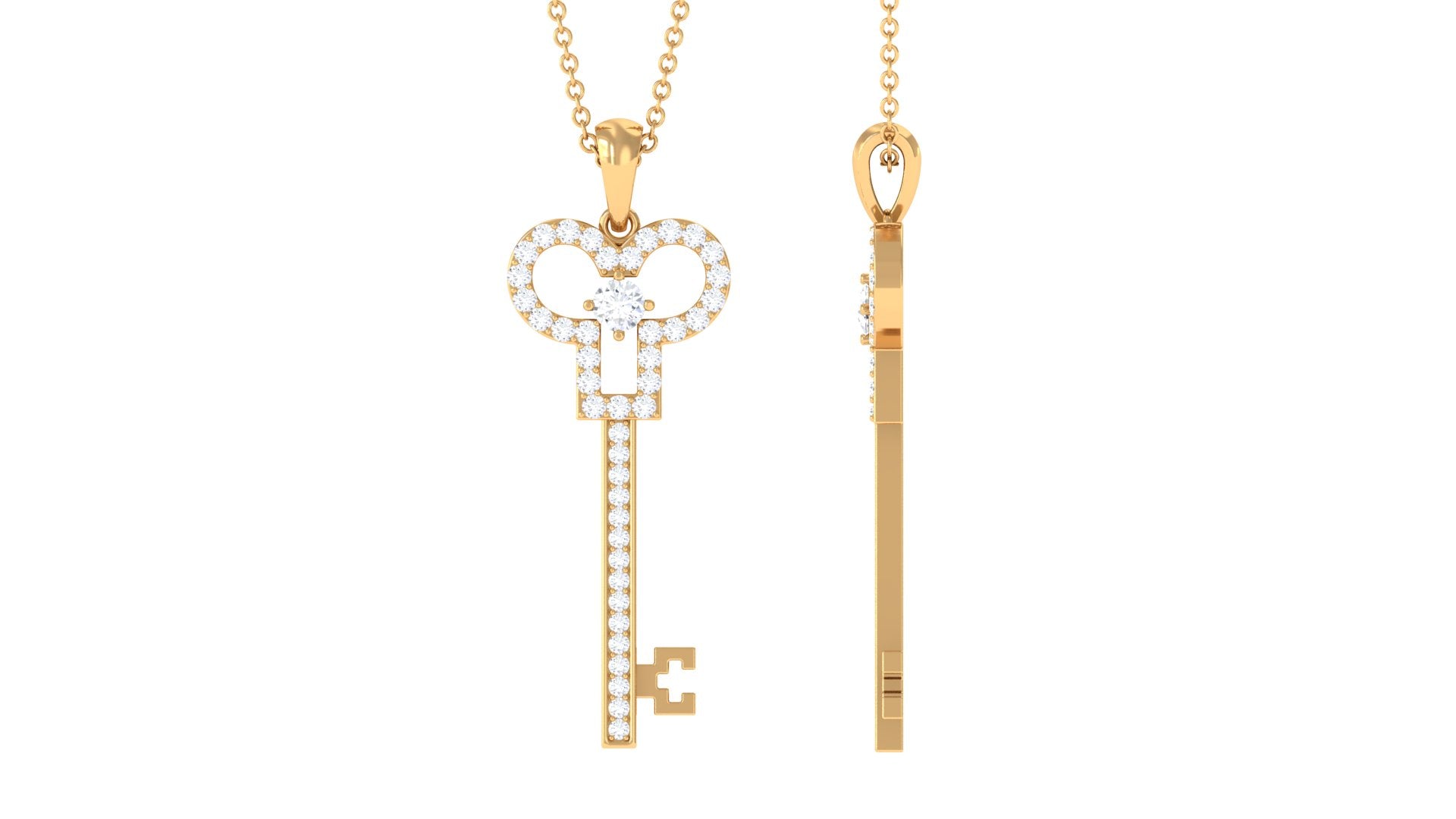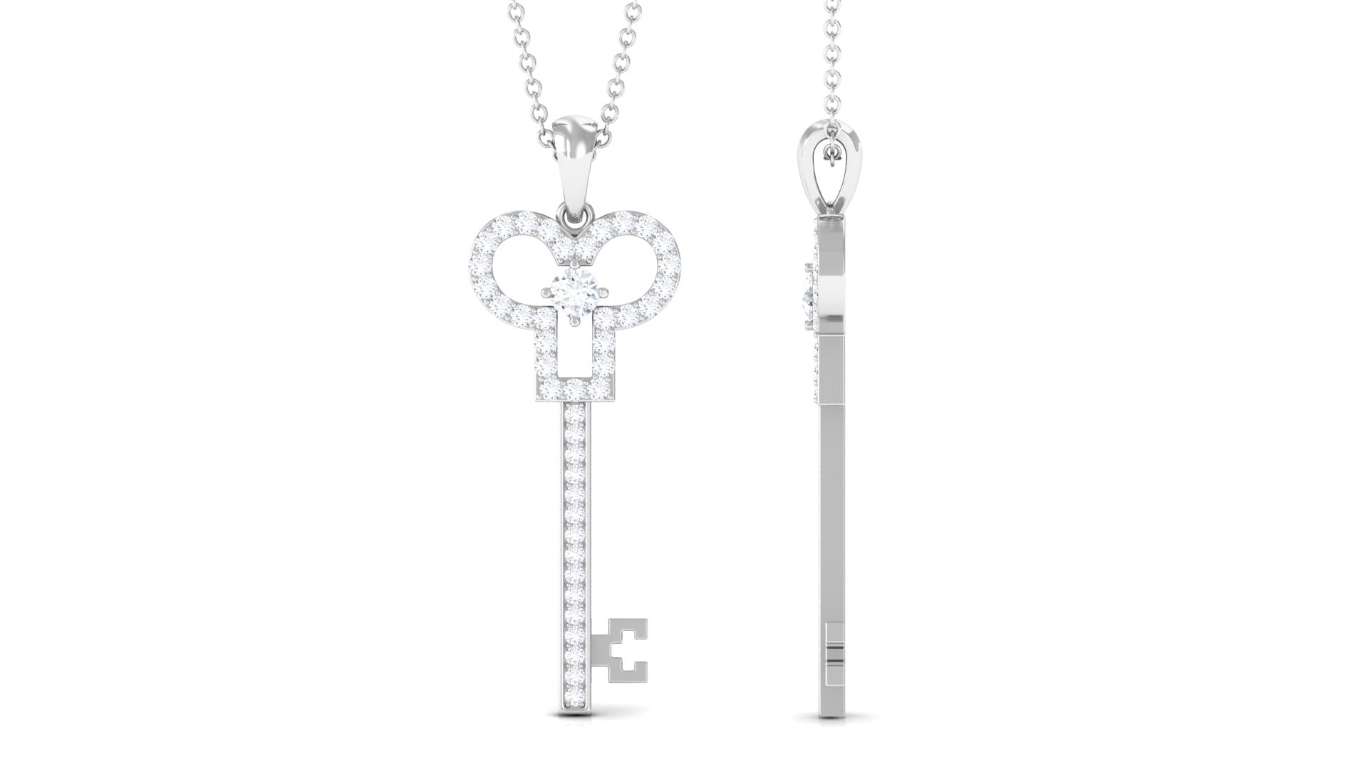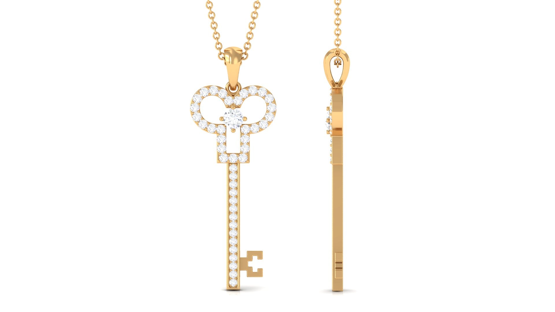 Shine all day long with this Moissanite Pendant. The Round Cut Moissanite in Prong Setting on Key Pendant gives an alluring look to your outfit. Be it any occasion either birthday or anniversary this Key Necklace for an extra touch of shine. This Moissanite Necklace is a romantic option for your beloved.