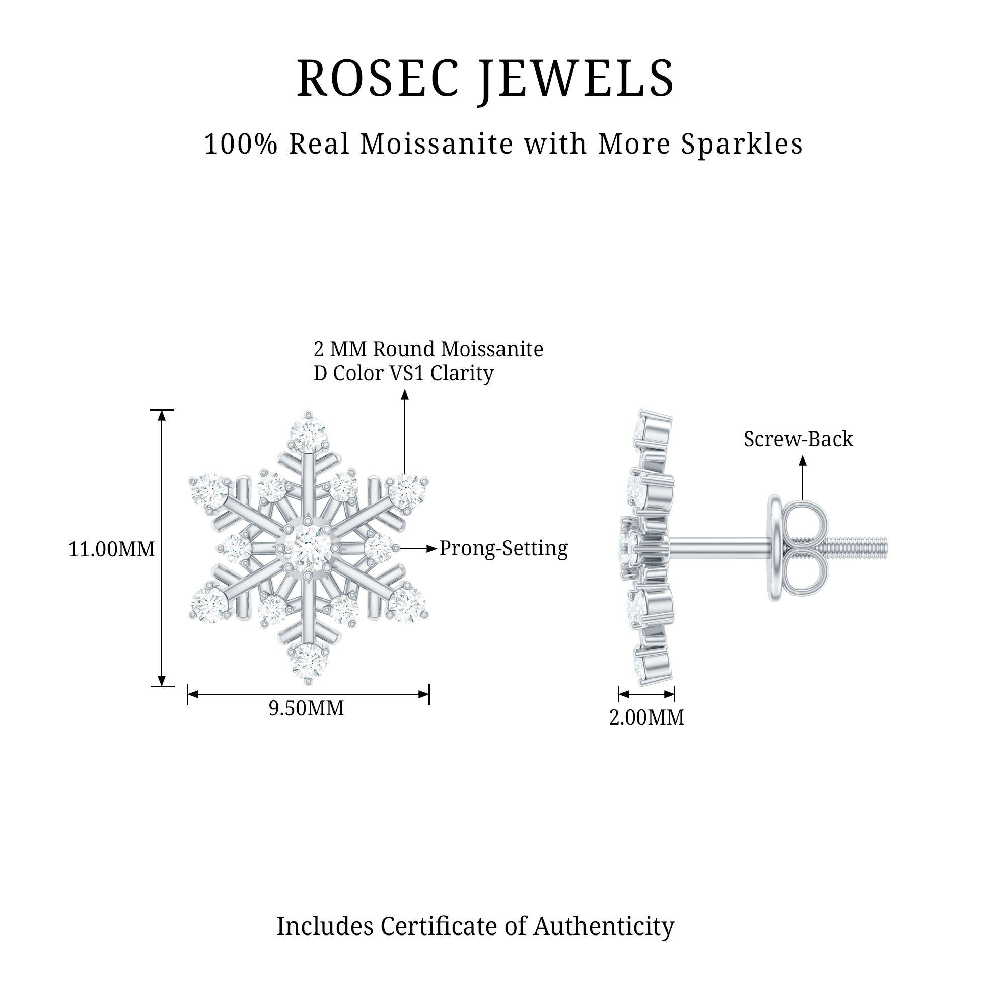 Certified Moissanite Snowflake Stud Earrings For Christmas