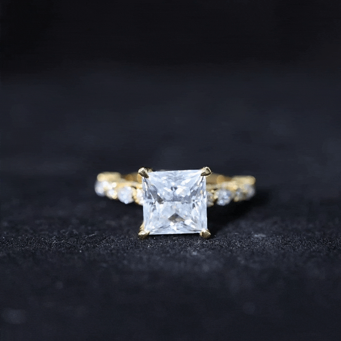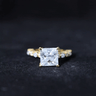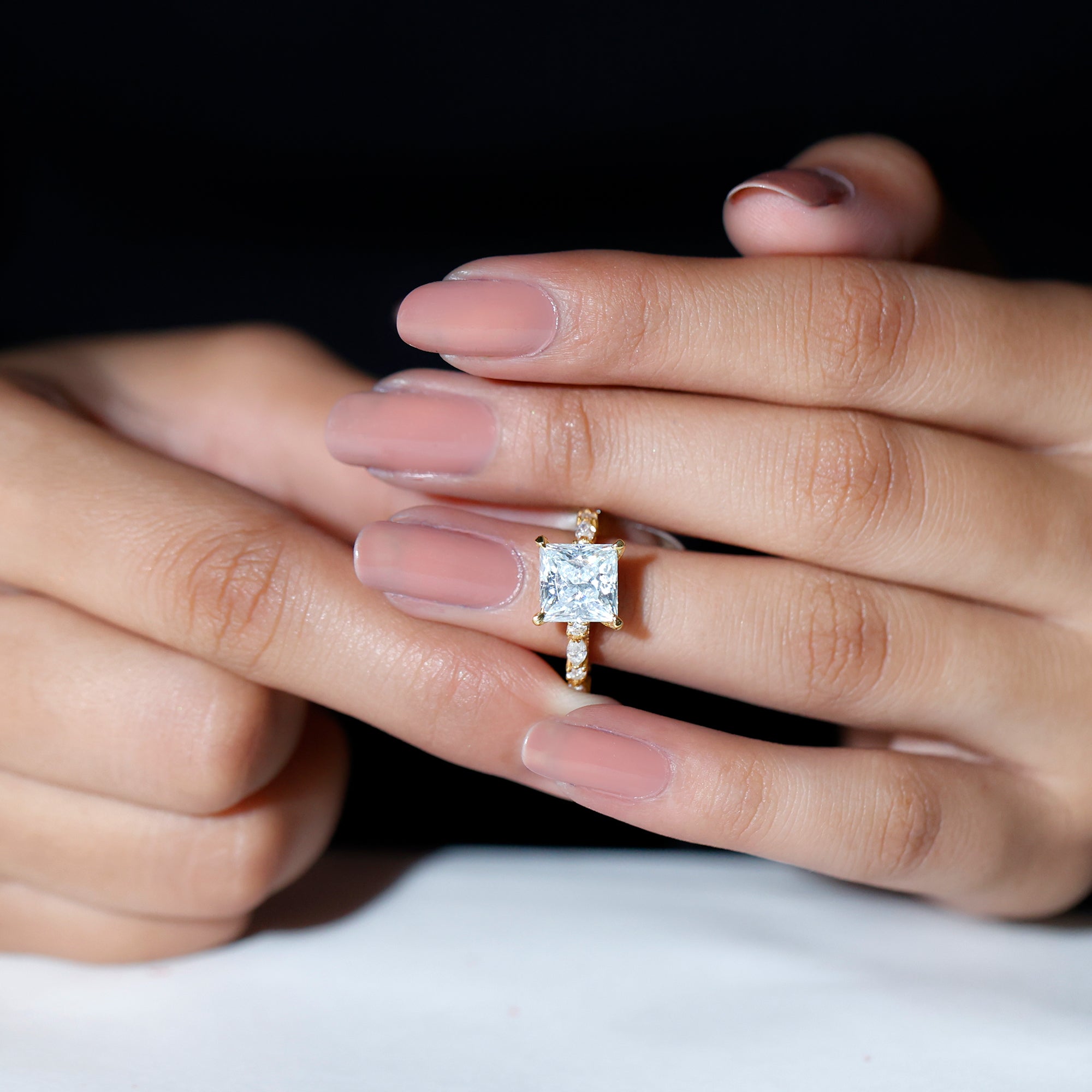 If your bride-to-be has a classic style with a stylish twist, this Moissanite Engagement Ring is for her! Showcasing Princess Cut Moissanite secured by Claw Setting while Round Cut Moissanite embellished on the bridge of the ring, and small Marquise and Round Moissanites studded on the shank.. Grab this Moissanite Ring as a Birthday Gift, Anniversary Gift for Her, or Valentines Day Gift. This Solitaire Ring would definitely melt her heart in seconds.