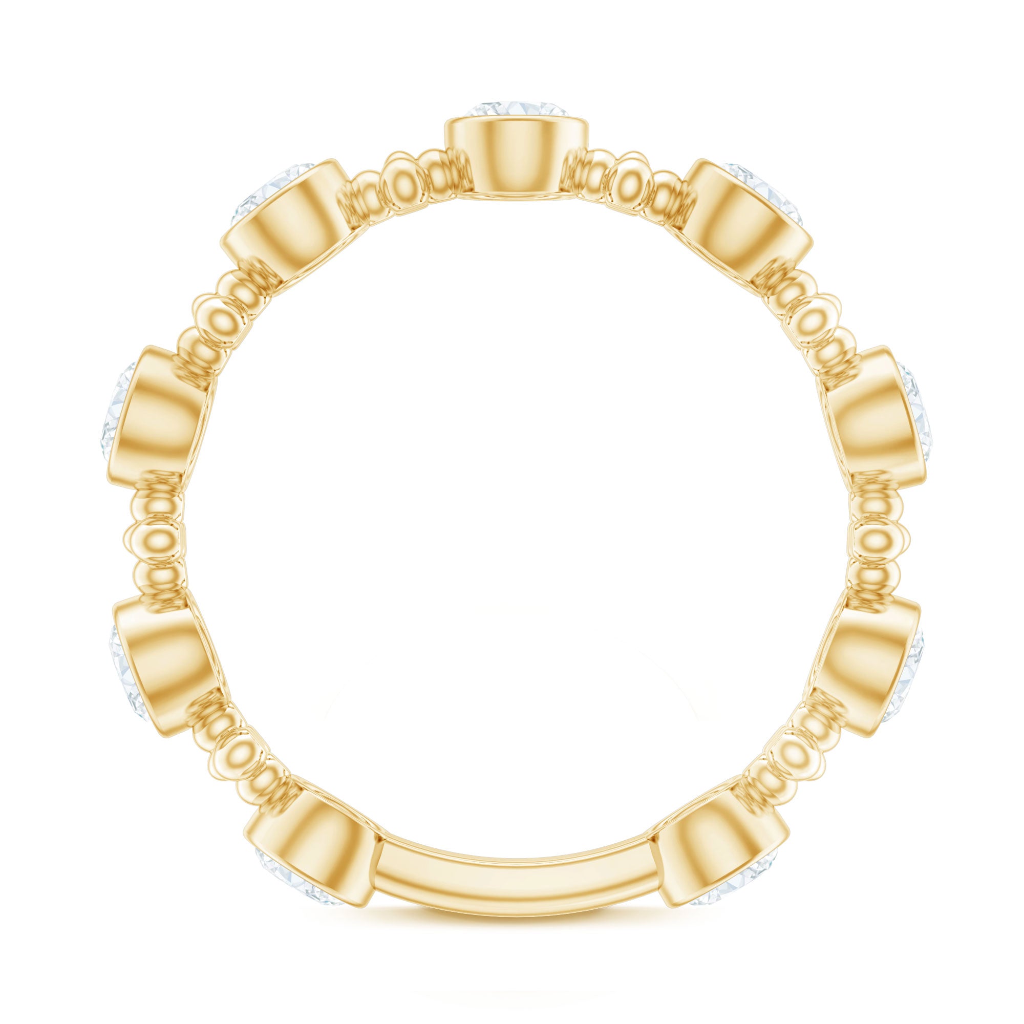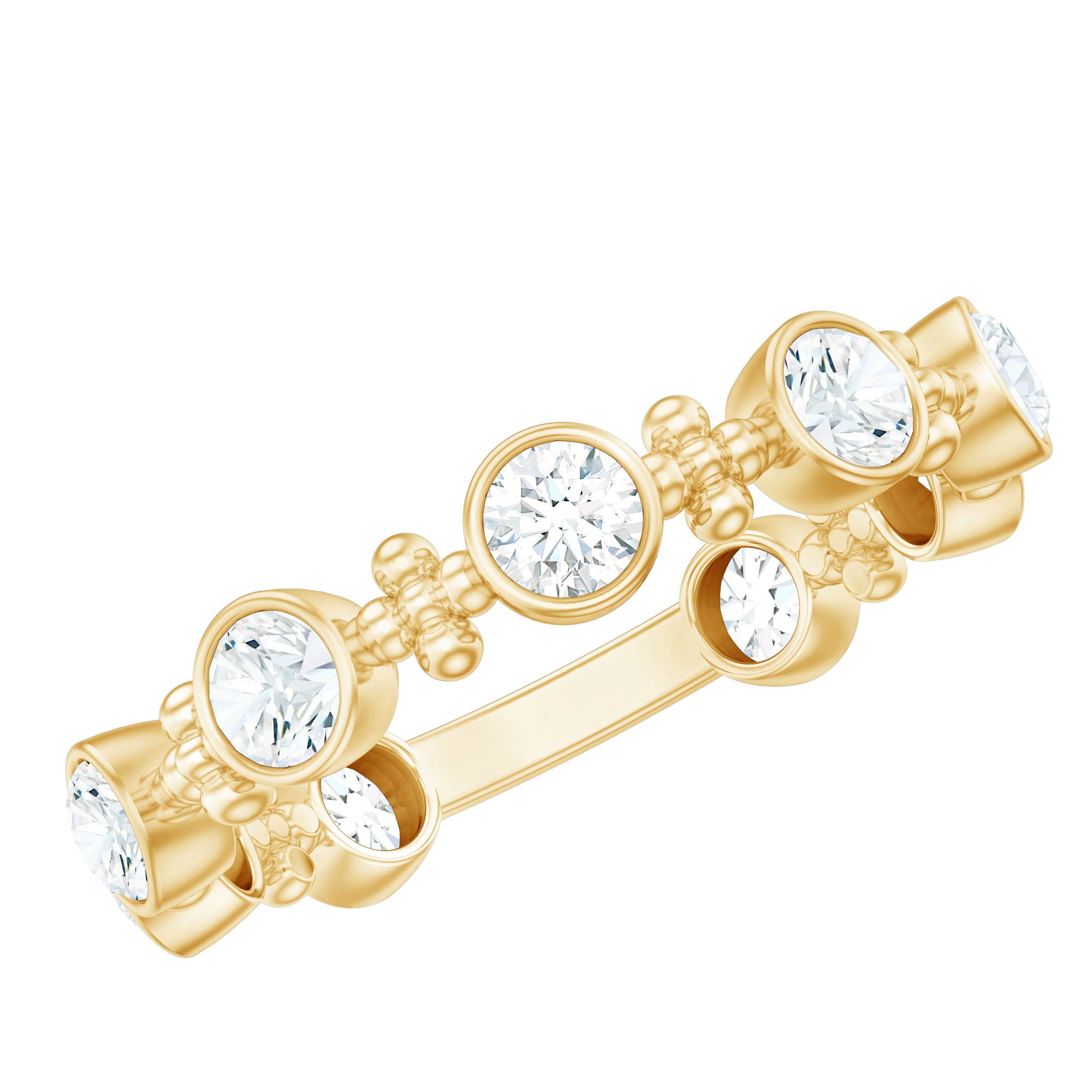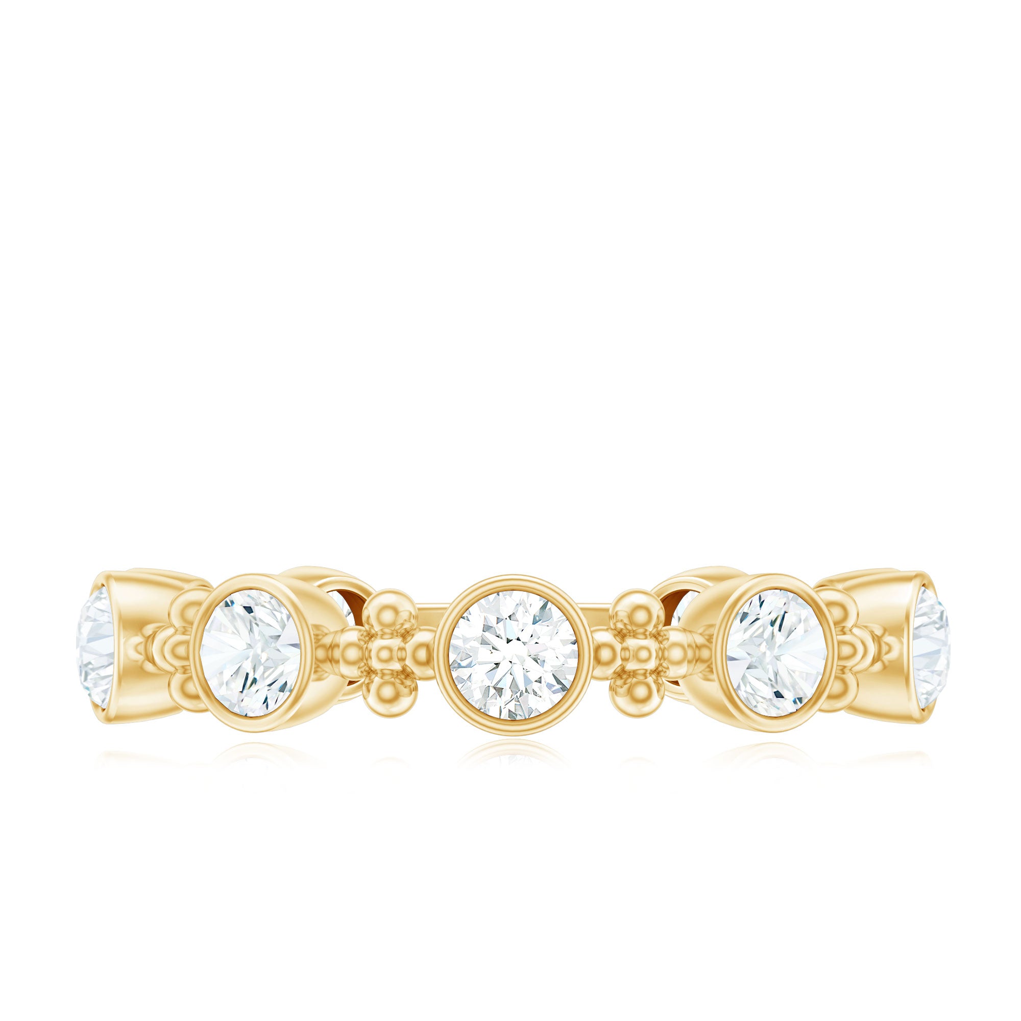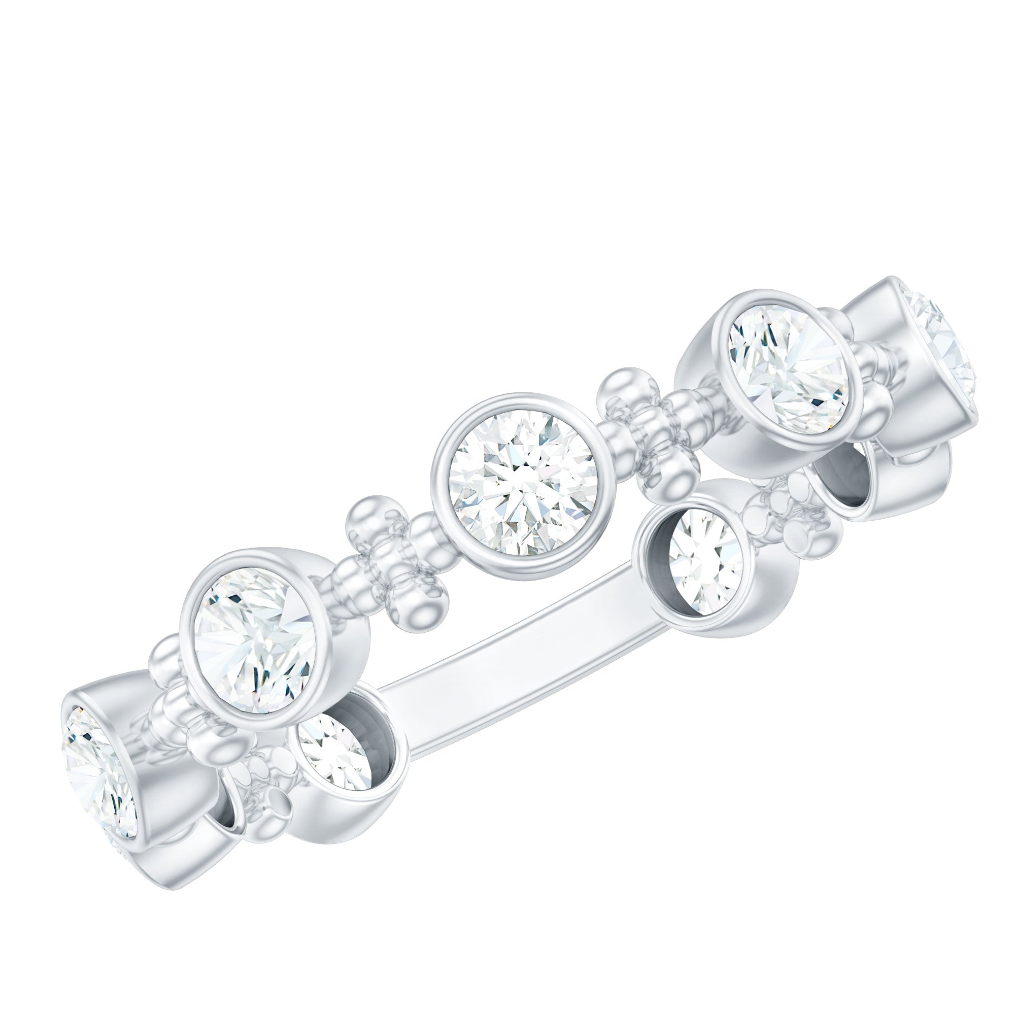 This Moissanite Eternity Band radiates elegance from every angle, blending timeless sparkle with a modern design. Featuring alternating beaded flowers and 3 MM round cut moissanite stones set in bezel setting over half the band, it creates a stunning rhythm of shine and style. Each D-VS1 quality moissanite stone captures light with incredible brilliance, making this Eternity Wedding Band a gorgeous choice for weddings, anniversaries, or any special occasion you want to celebrate. The eternity design symbolizes everlasting love, making it a truly meaningful gift for occasions like birthdays, Valentines Day, Mothers Day, New Year, or Christmas. Whether worn alone or stacked with your favorite rings, this Bezel Set Eternity Ring adds a soft, glowing touch to both casual outfits and dress ensembles. It is comfortable to wear, thoughtfully crafted, and designed to last a lifetime. Your Moissanite Wedding Band comes in an elegant jewelry box, ready to be gifted and sure to impress. With its unique sparkle and smooth, classic design, this Moissanite Stackable Ring serves as a simple yet powerful symbol of love, beauty, and forever.