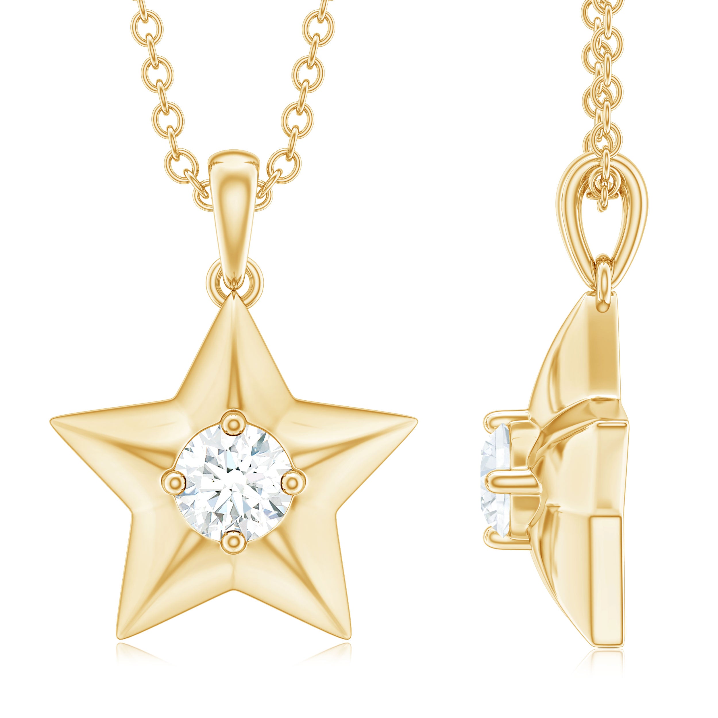 Starlit nights often inspire the most meaningful jewelry, and that feeling comes alive in this charming Celestial Pendant. Embellished with a 4 MM round moissanite, held securely in prong setting. The gemstone rests inside a finely crafted metal star, giving the piece a dreamy and uplifting look that suits anyone who loves simple yet symbolic designs. Made with D-VS1 quality moissanite, the Star Pendant Necklace offers bright shine and lasting clarity, making it a lovely choice for everyday wear or special moments. The star hangs gently from a cable chain that sits comfortably and pairs easily with different outfits and styles. Whether worn as a reminder of hope, guidance, or personal strength, the design carries a sweet meaning that many find comforting and inspiring. It also makes a thoughtful gift for someone who loves celestial jewelry or enjoys pieces with a meaningful touch. Packed carefully in a jewelry box, the Moissanite Pendant for Women arrives ready to gift or enjoy.