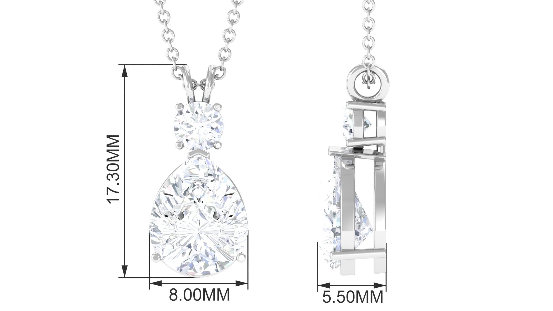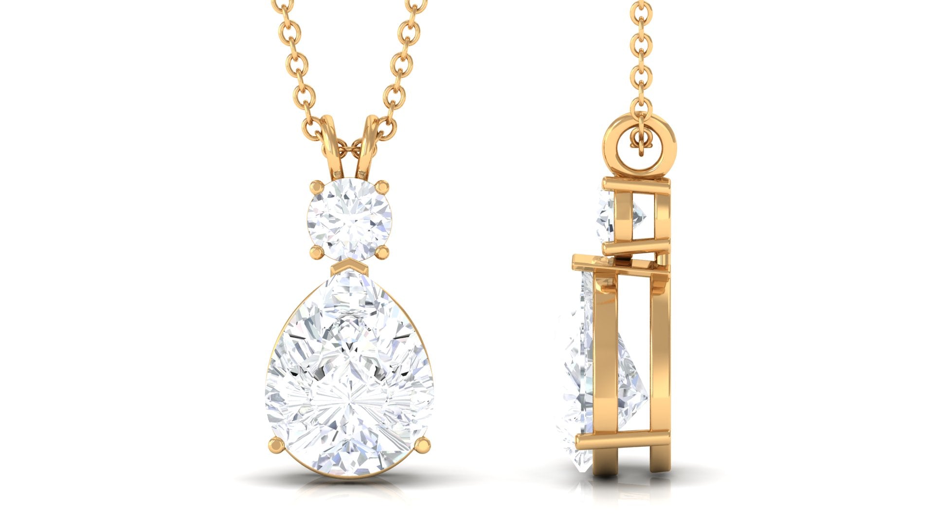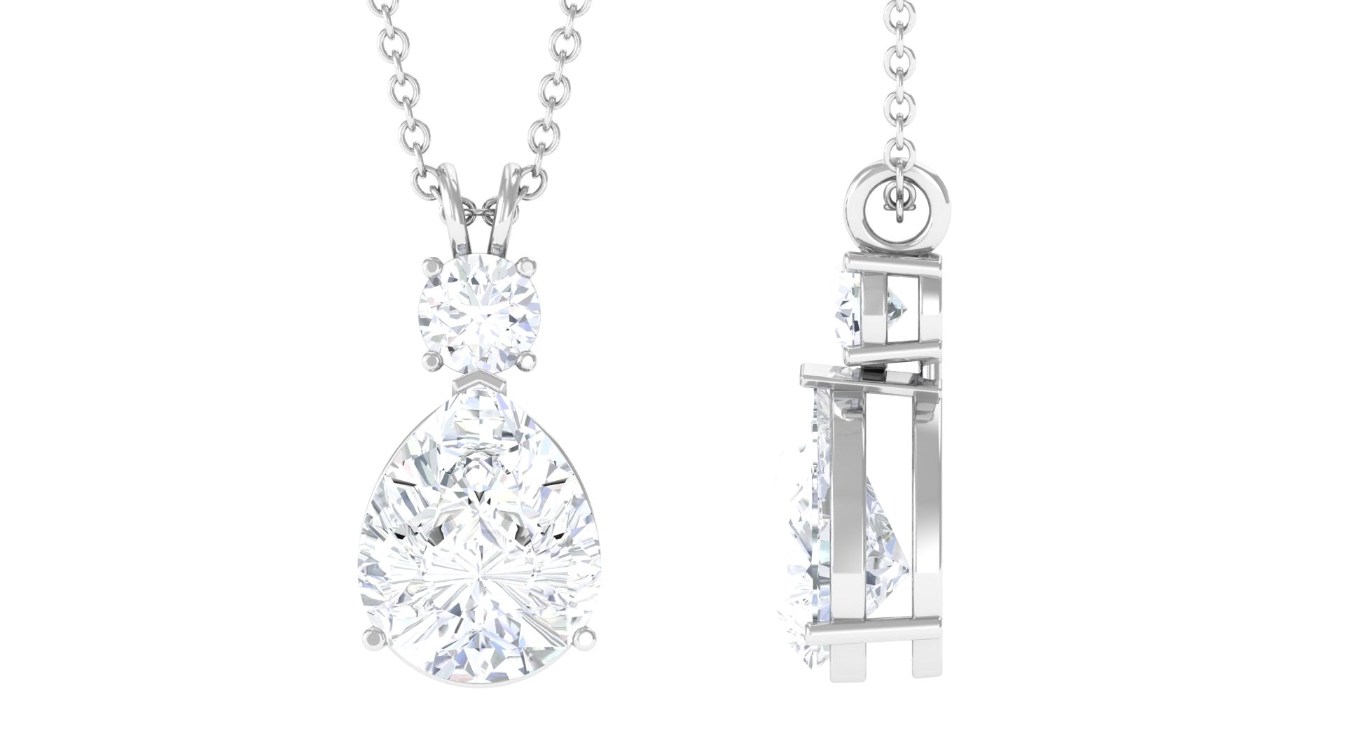 Embrace your elegant style with this exquisite Moissanite Pendant. The pendant necklace boasts a stunning combination of Round and Pear Cut Moissanite stones, carefully set in a prong setting, making it the perfect choice for minimal yet sophisticated everyday jewelry. Enhance your look with this sleek Solitaire Pendant, a versatile piece that can be worn alone for a chic and understated look or layered effortlessly for added allure. Whether worn solo or combined, this pendant is a must-have accessory to elevate your style and add a touch of timeless beauty to any outfit.