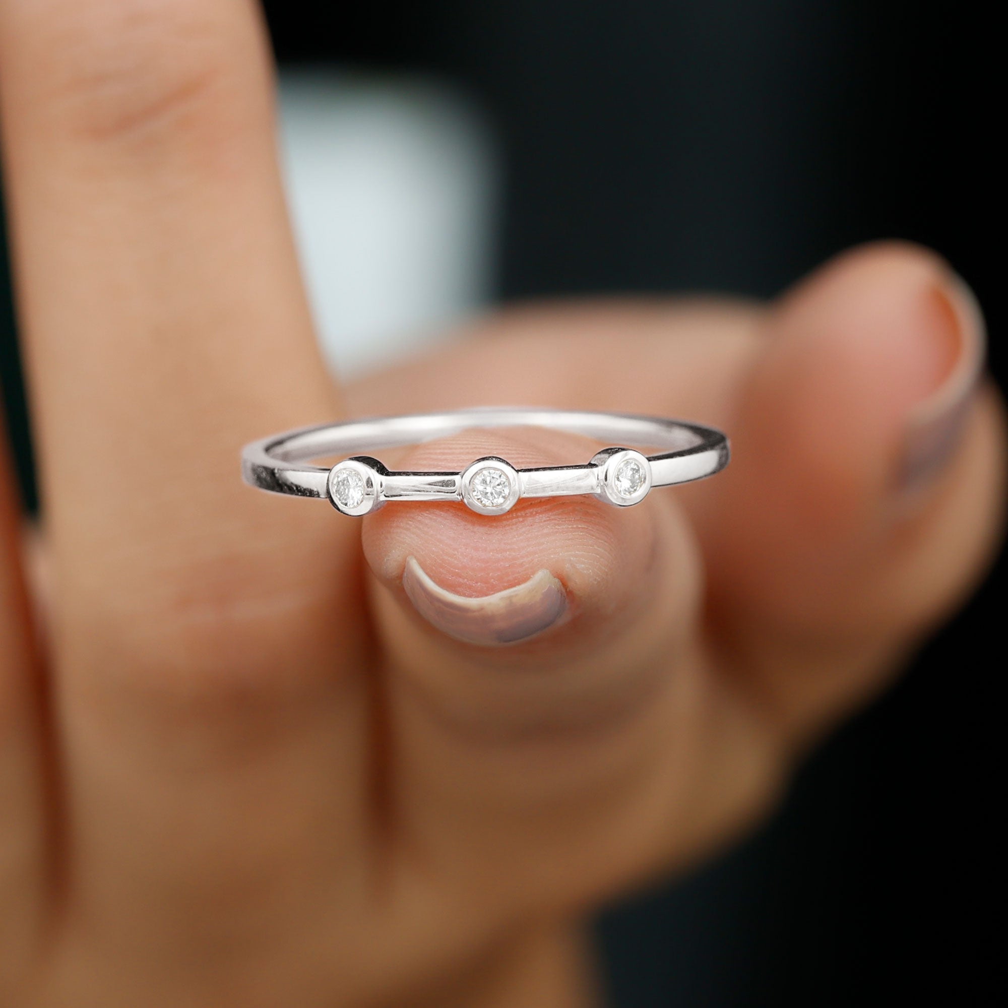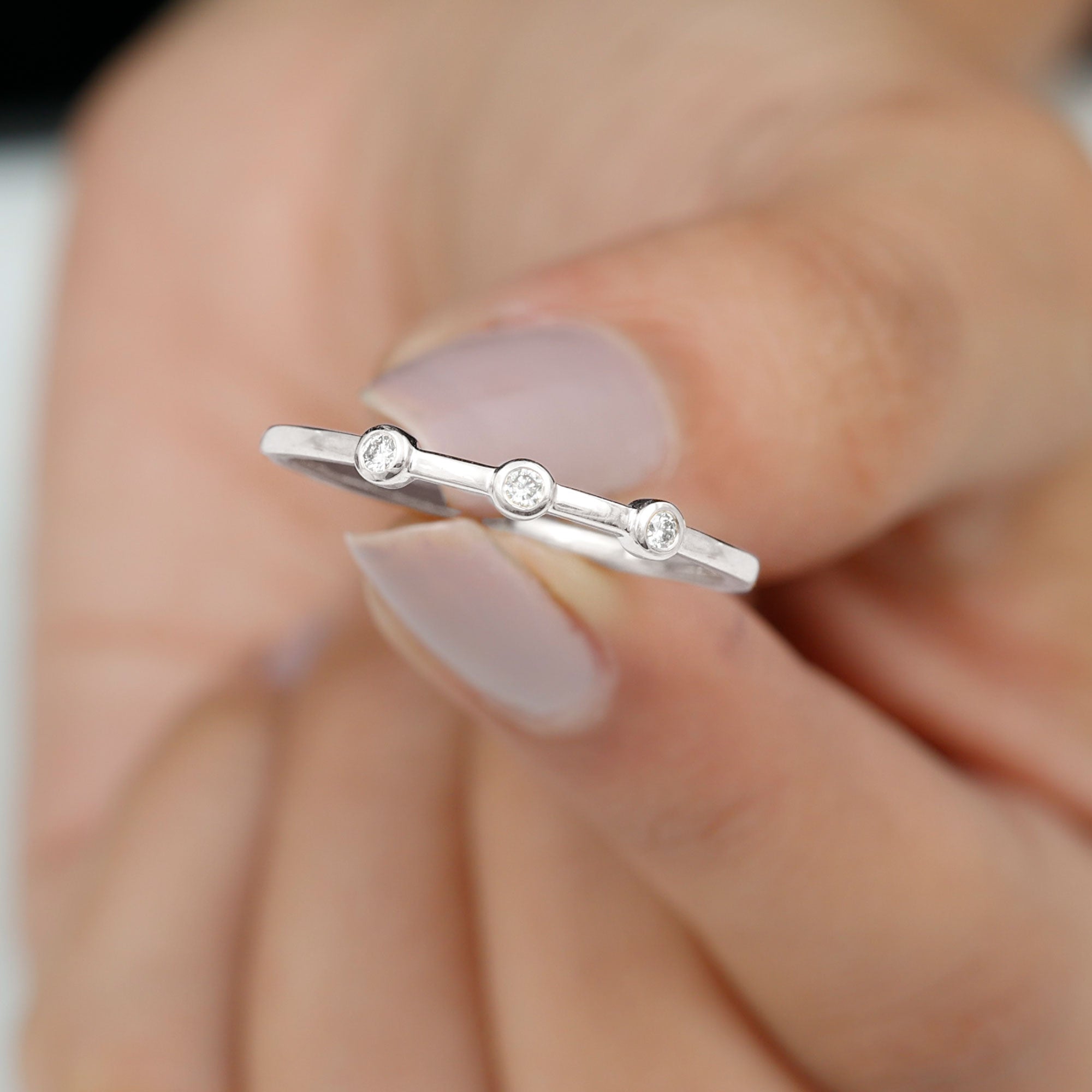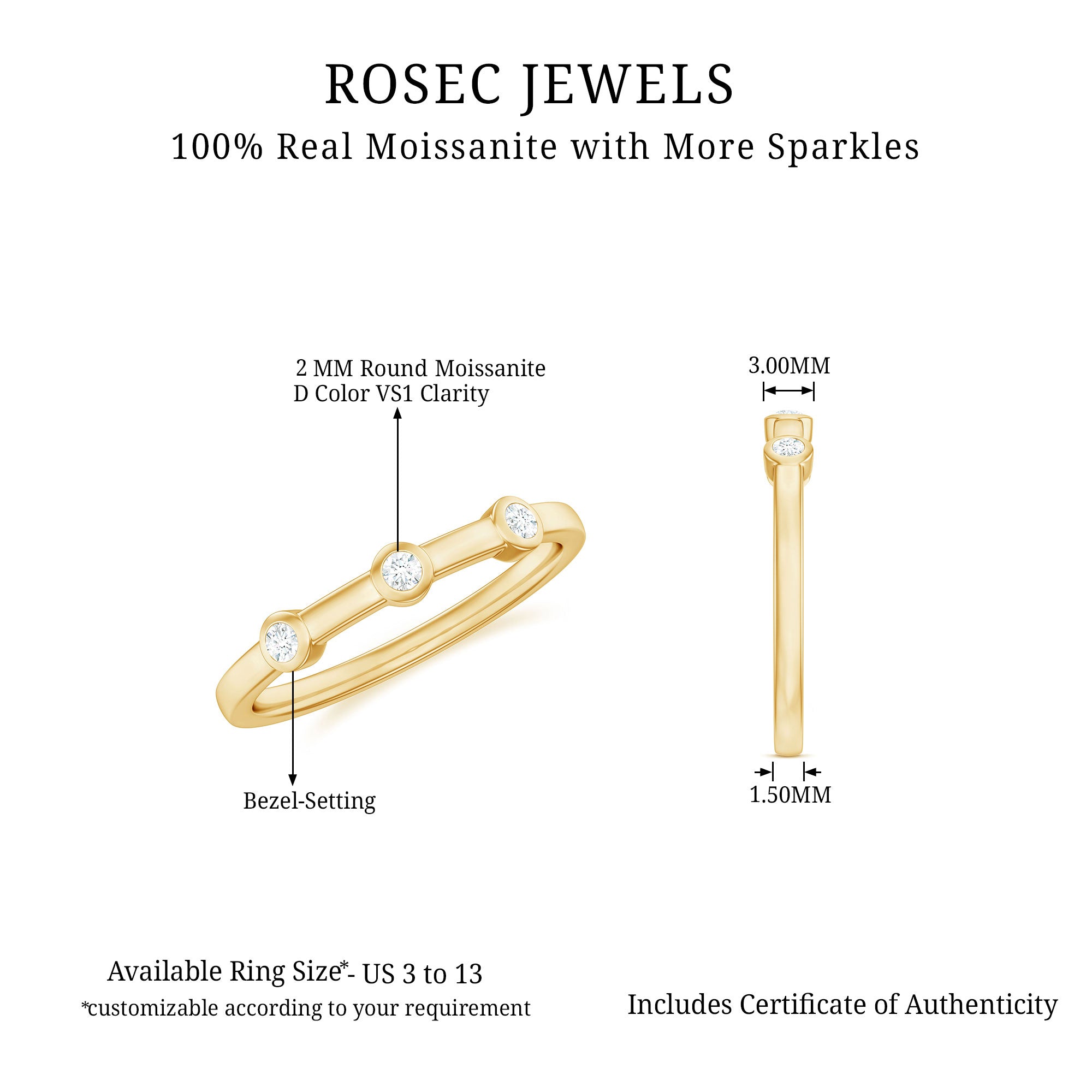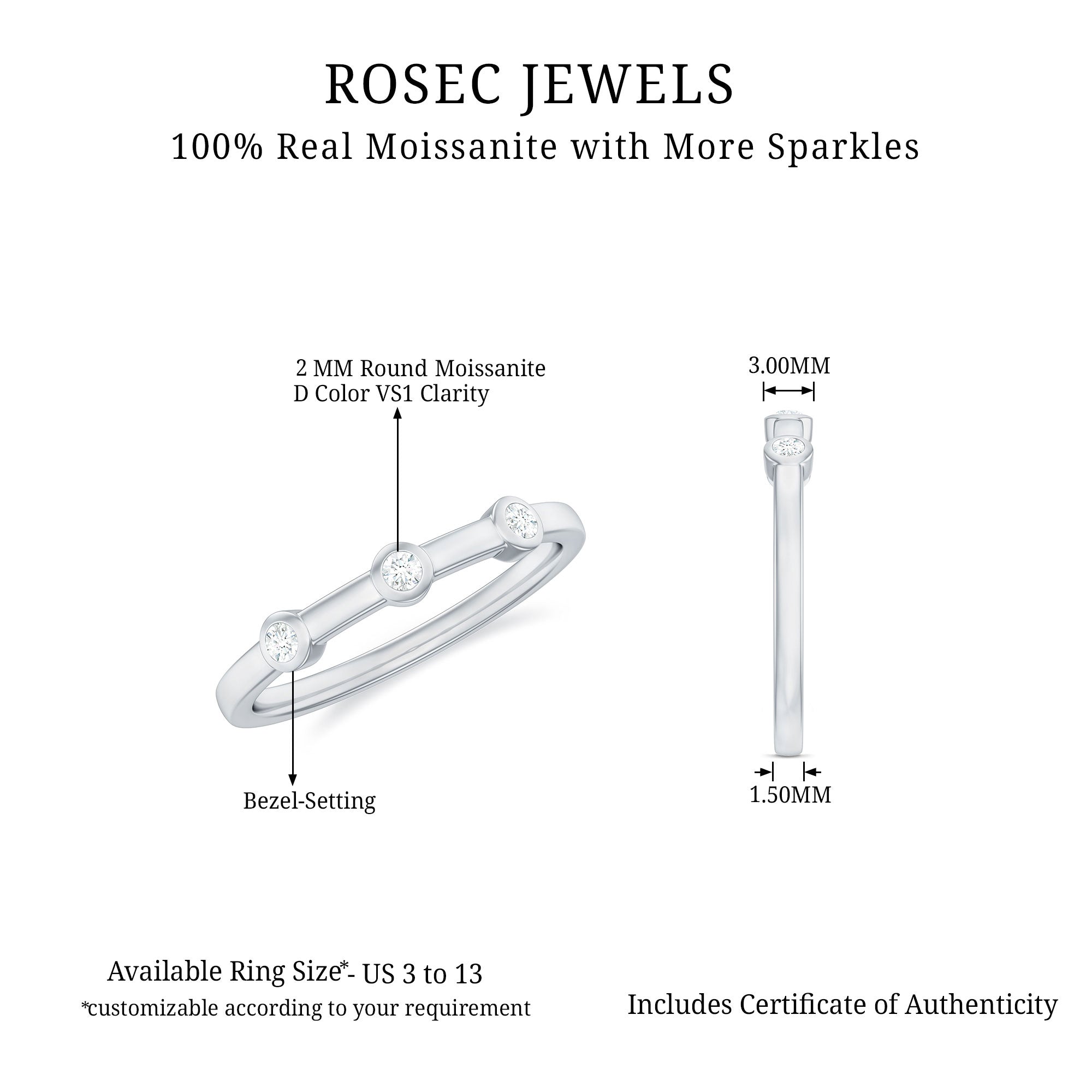 Certified Moissanite Three Stone Stackable Ring in Bezel Setting
