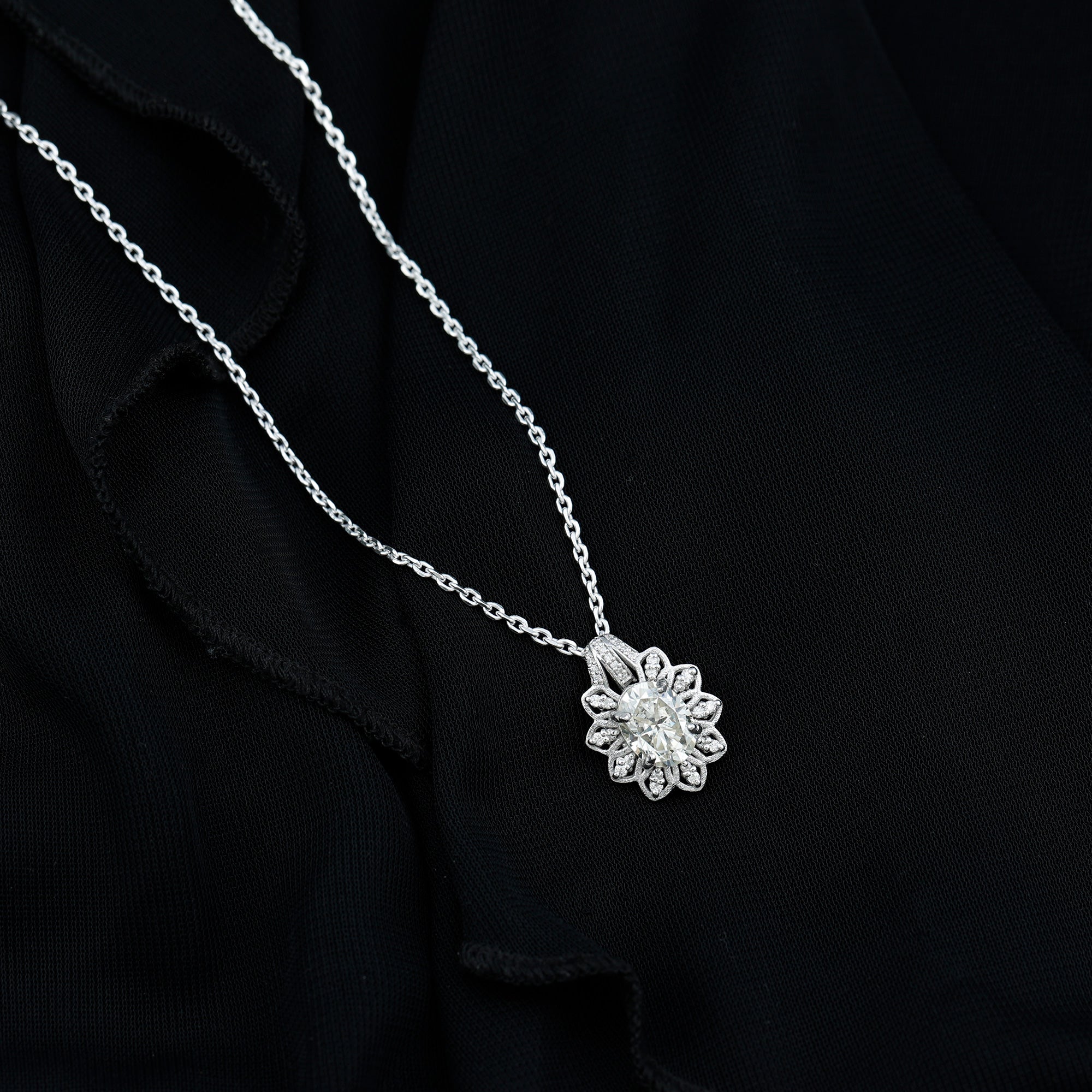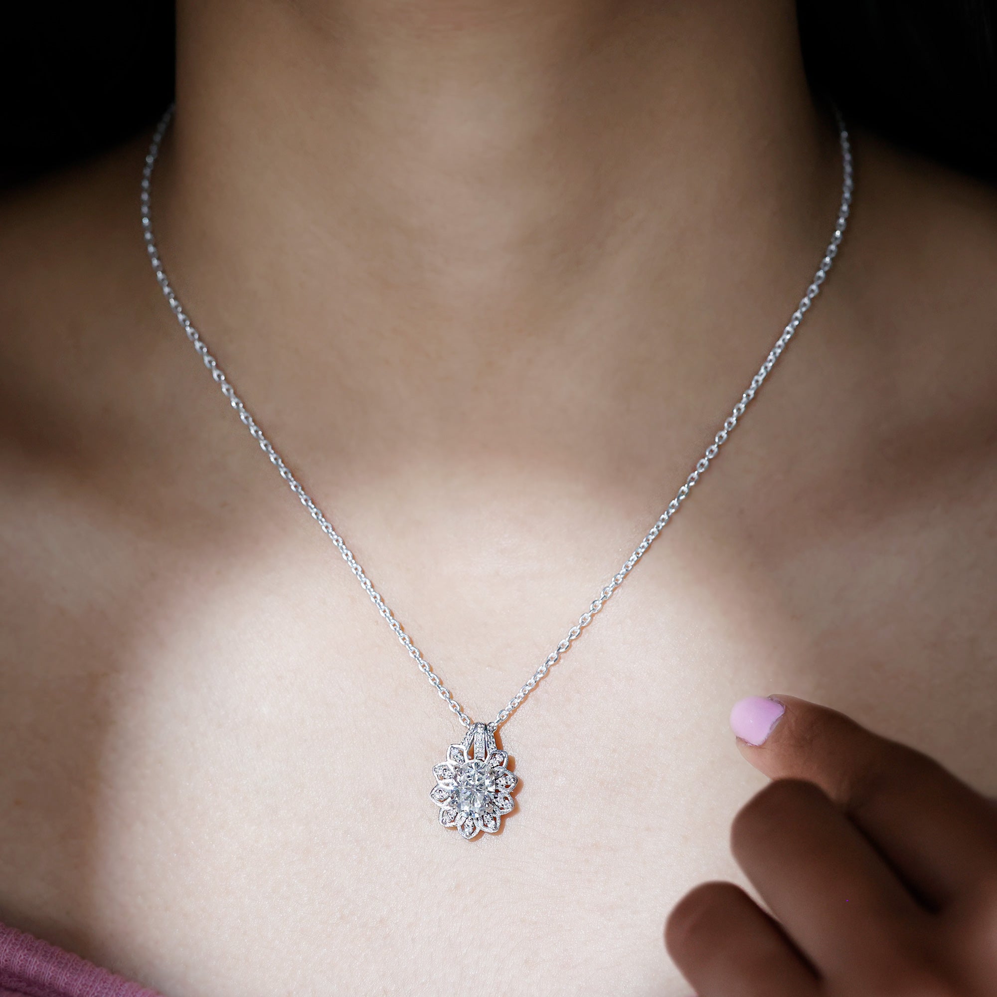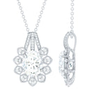 Certified Moissanite Vintage Inspired Necklace with Silver Chain