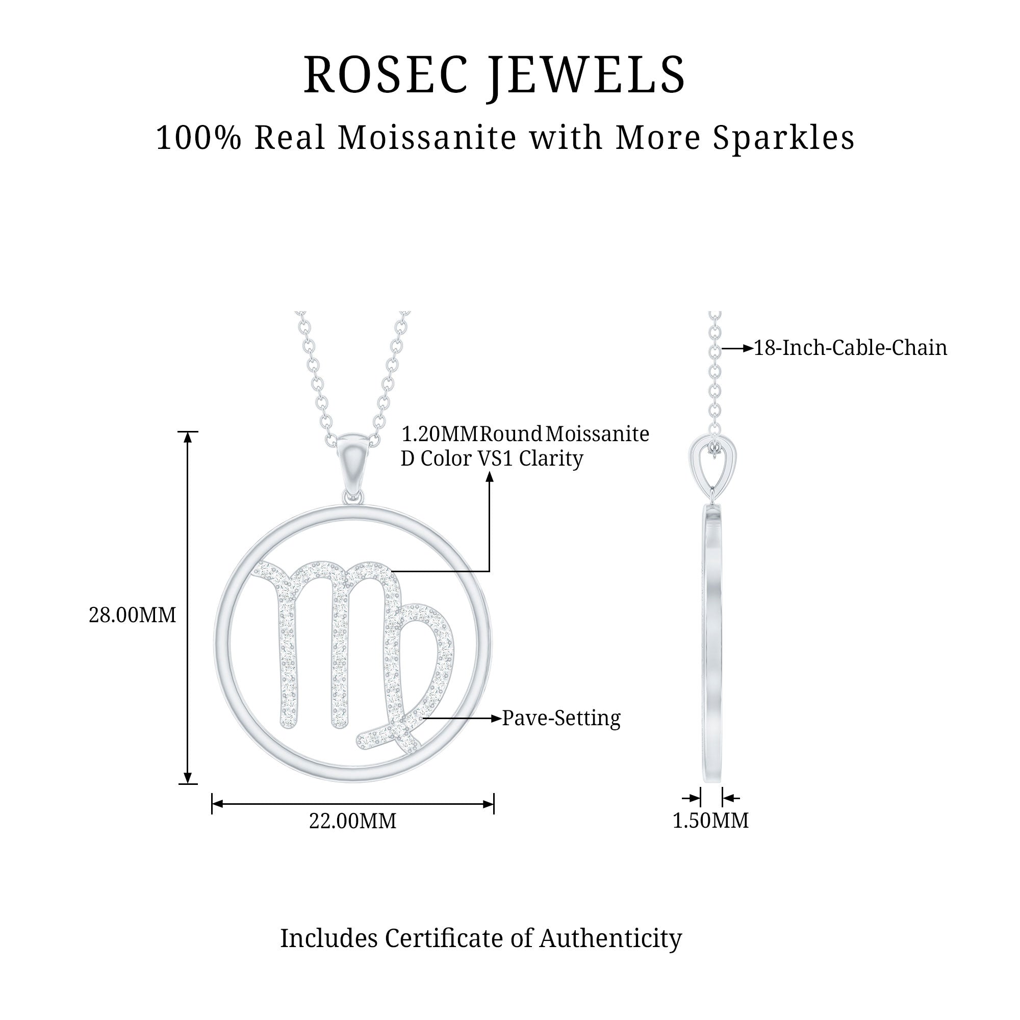 Certified Moissanite Virgo Zodiac Sign Pendant Necklace