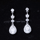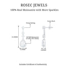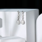 Add a touch of brilliance to your bridal glow with these Teardrop Wedding Earrings. Designed to capture the essence of luxury, each earring features a stunning cascade of moissanite stones, starting with a round cut gem, followed by marquise shaped stones that add a delicate, leaf like charm. The masterpiece of these Bridal Earrings is the 5X7 MM pear shaped moissanite drop, framed with a halo of tiny shimmering stones, enhancing its brilliance and making it the ultimate showstopper. Each stone is set in secure prong setting and designed to include sparkle in your big day. The Certified Moissanite Dangling Earrings are crafted in 14K White Gold Plated Silver with a secure screw back closure, ensuring a comfortable and snug fit throughout your special day. These Dangling Earrings come with a certificate of authenticity for gemstones and is packaged in a premium velvet pouch.