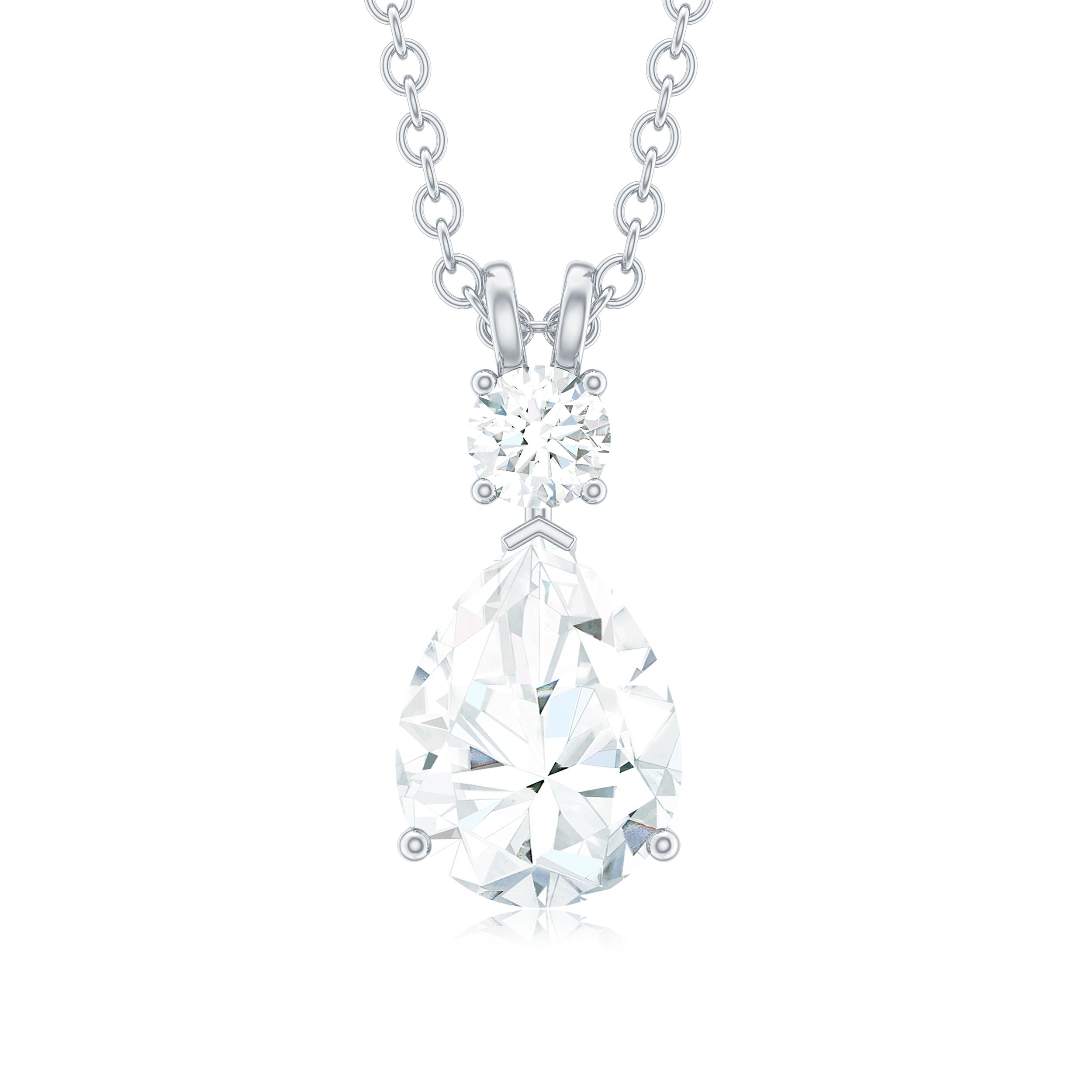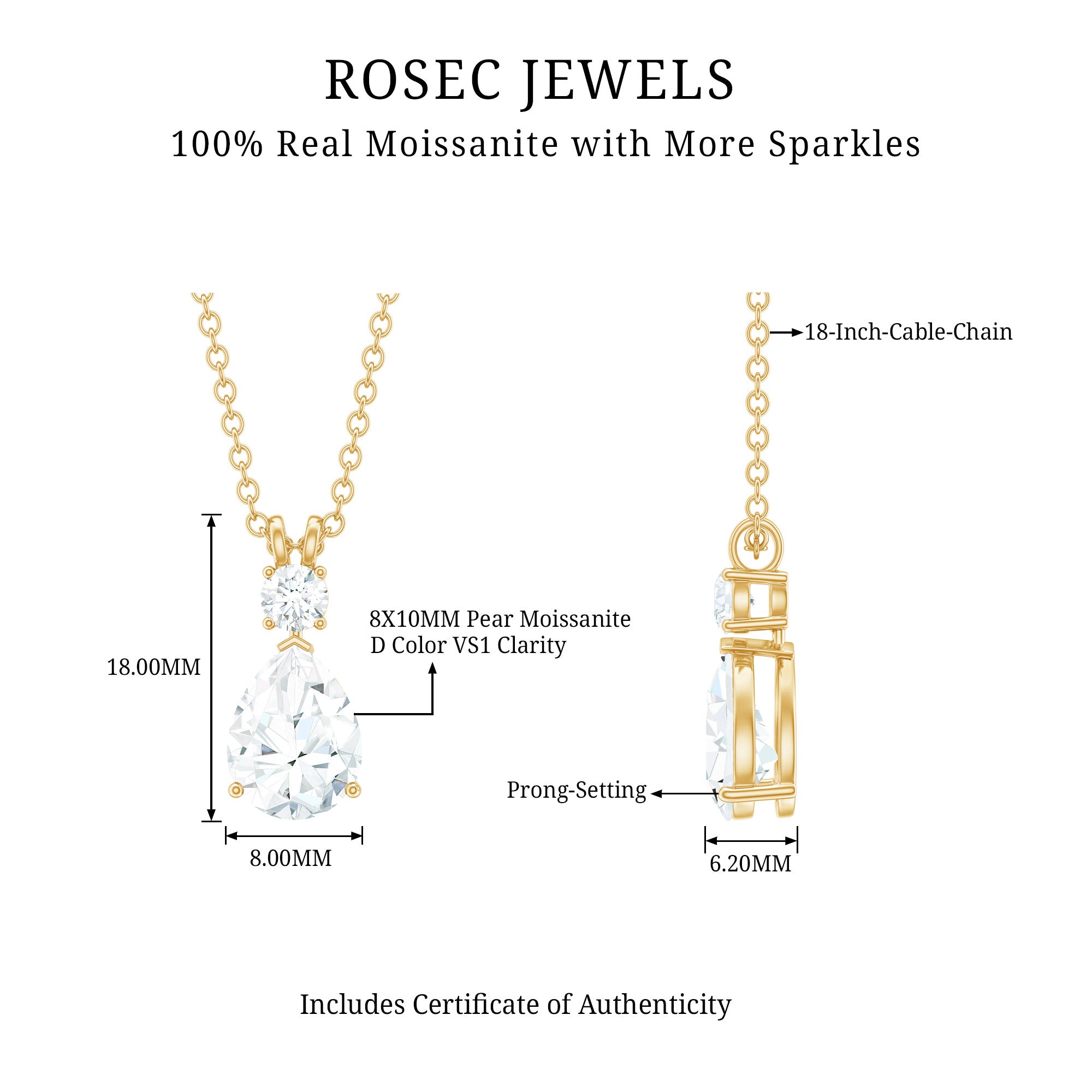 Versatile and elegant, this Moissanite Pendant complements office wear or an evening date. It features an 8X10 MM Pear Shape Moissanite, securely placed in Prong Setting with a shimmering round Moissanite on top. This Teardrop Pendant Necklace exudes D-VS1 Quality Moissanite make it perfect to add shimmer to your basic look. This Wedding Necklace is precisely crafted to embrace your neckline and will be delivered to you in a classic jewelry box for storage when not in use.