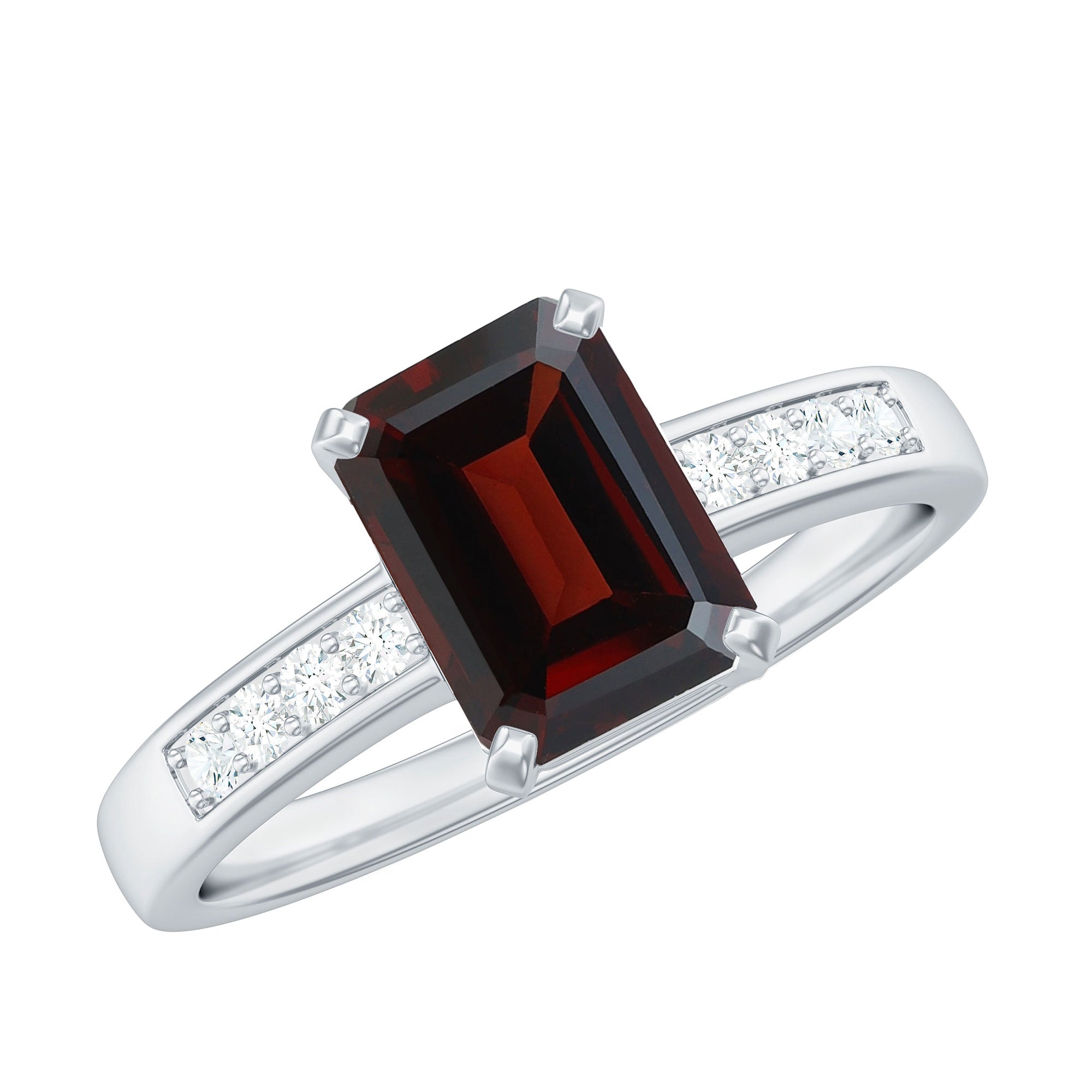 Certified Natural 6X8mm Garnet Emerald Cut Engagement Ring with Diamond