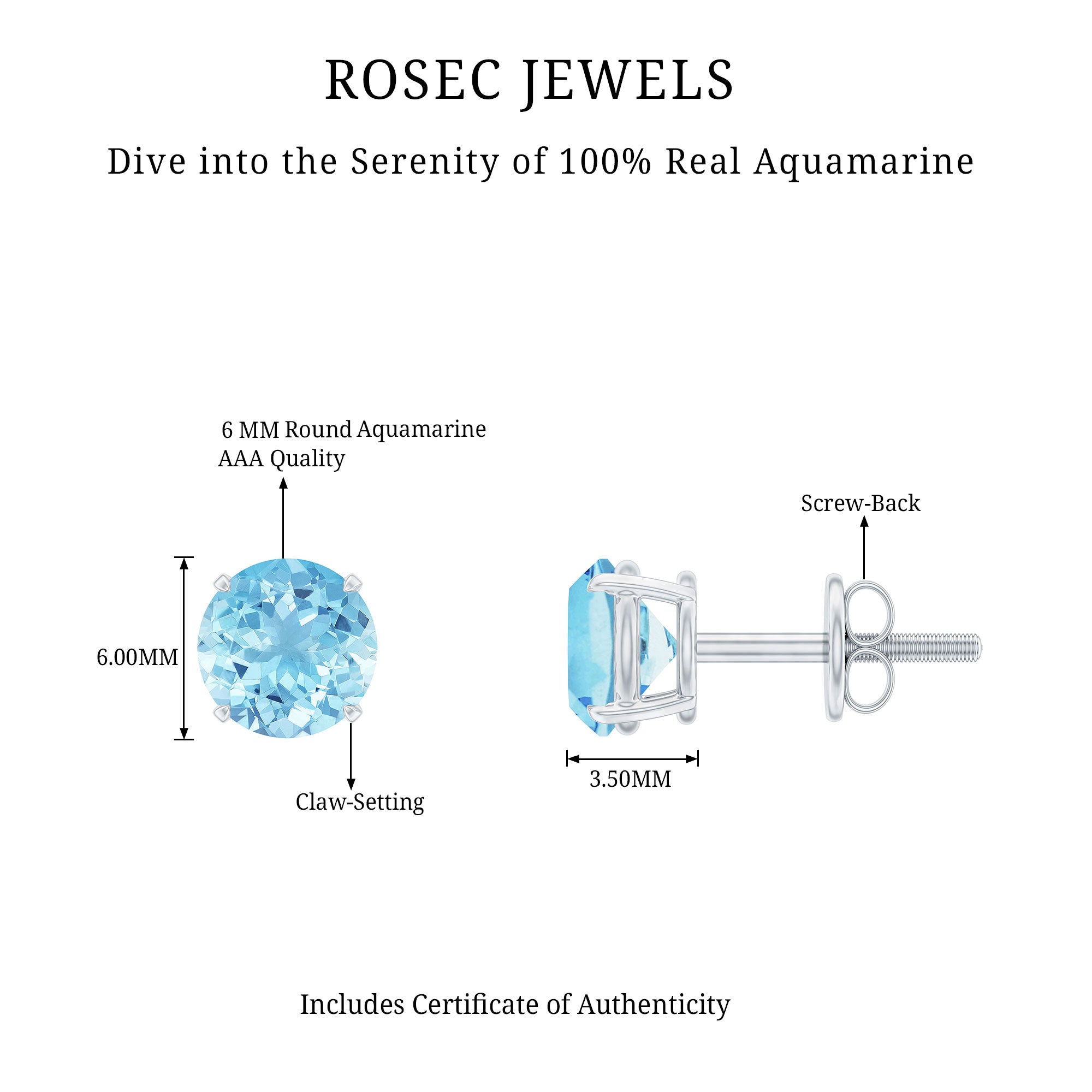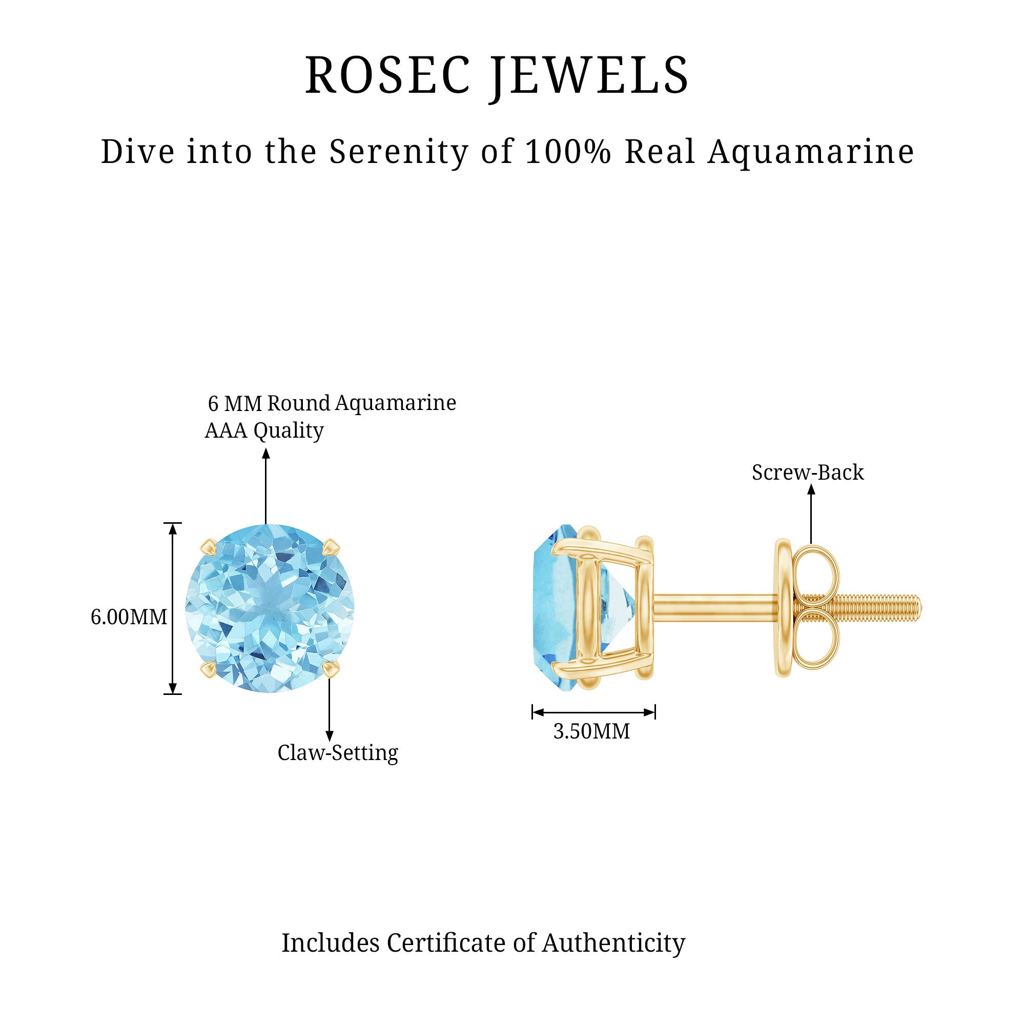 A perfect addition to your jewelry collection, these Aquamarine Stud Earrings offer a delicate yet striking touch of elegance that celebrates both beauty and meaning. These Solitaire Stud Earrings feature a 6 mm Round Shape Aquamarine of AAA Quality set in Claw Setting, exuding a soft blue hue that captures attention. Secured with Screw Back Closure, these Aquamarine Earrings stay comfortably in place, ideal for everyday wear or special occasions. Their subtle sparkle and simplicity allow them to pair effortlessly with any outfit, from casual chic to elegant evening attire, making them a versatile staple for every jewelry lover. Presented in a beautiful jewelry box, these March Birthstone Earrings are ready to delight as a thoughtful gift for someone born in March, a meaningful keepsake or a personal indulgence that elevates your daily style.
