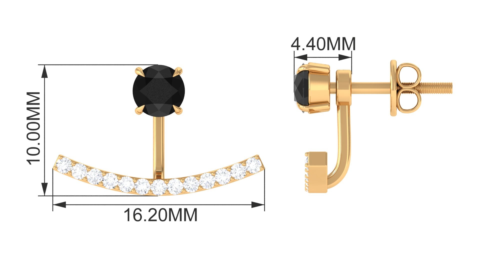 Destined to captivate, these Jacket Earrings are the perfect blend of elegance and edge. Designed with a unique twist, these Ear Jacket Earrings feature a bold 4 mm Round Shape Black Diamond in Claw Setting, accentuated by sparkling White Diamond stones. The eye-catching jacket design frames the ear, adding extra glamour and depth to the look. With the Screw Back Closure, these Black Diamond Earrings provide a secure fit while ensuring you wear them with comfort and confidence, day or night. Whether you are dressing up for a glamorous event or adding a bit of sparkle to your everyday ensemble, these Black and White Earrings elevate your look with effortless sophistication. The striking contrast between the Black and White Diamond stones makes these earrings versatile, able to pair with everything from formal attire to casual outfits. Presented in an elegant jewelry box, they make the perfect gift for someone special or a luxurious treat for yourself.