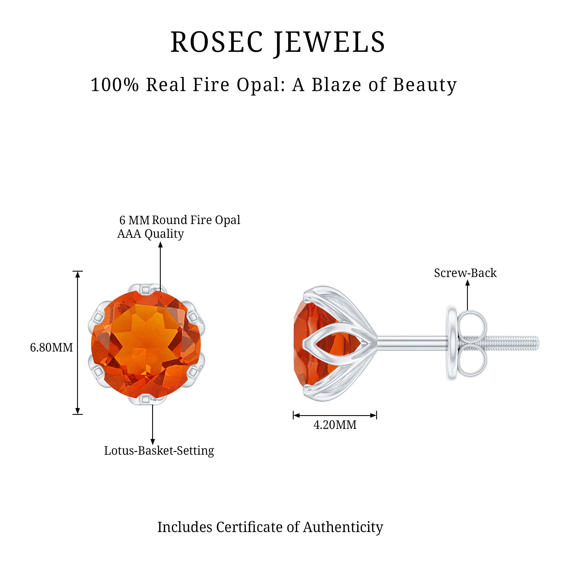 Add a touch of warmth and bold beauty to your everyday style with these Fire Opal Earrings, crafted to brighten any look with their vibrant glow. Each stud features a 6 mm Round Shape Fire Opal set in Lotus Basket Setting that radiates rich, sunset like hues, flashes of orange that shift gently as you move. Secured with Screw Back Closure, These Opal Ear Studs stay comfortably in place, making them ideal for daily wear or special occasions when you want a pop of color that stands out effortlessly. Packaged in a lovely jewelry box, they also make a thoughtful, stylish gift for someone who loves unique gemstones. Pair them with your favorite casual outfits or a sleek dress for a radiant finish. These Orange Opal Stud Earrings are simple yet captivating, perfect for anyone who loves jewelry that feels bright, bold and beautifully personal.