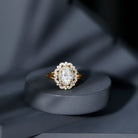 Turn heads and steal hearts with this breathtaking Lab Diamond Engagement Ring, a dazzling masterpiece made for the spotlight. At the center sits a shimmering 7X9 MM Oval Shape Lab Grown Diamond of EF-VS Quality, bursting with brilliance and elegance. Framing this stunning centerpiece is a luxurious double halo, inner Halo of shimmering Round Lab Diamond stones and outer Halo that beautifully combines both Marquise and Round Shape stones, creating a floral inspired design that is nothing short of enchanting. The Split Shank Design adds extra drama, giving this Double Halo Engagement Ring a bold, glamorous look that feels like a true work of art. Whether you are saying yes, celebrating a milestone, or simply love standout jewelry, this Lab Diamond Statement Ring delivers the perfect blend of romantic charm and modern sophistication. This Cocktail Ring is made to shine at every angle, capturing light and admiration with every movement. Crafted for those who embrace grand love stories and sparkle, this 2 Ct Lab Grown Diamond Ring is also an ethical choice, bringing beauty and conscience together effortlessly. Make your engagement unforgettable or elevate your collection with this show-stopping design that redefines what it means to shine.
