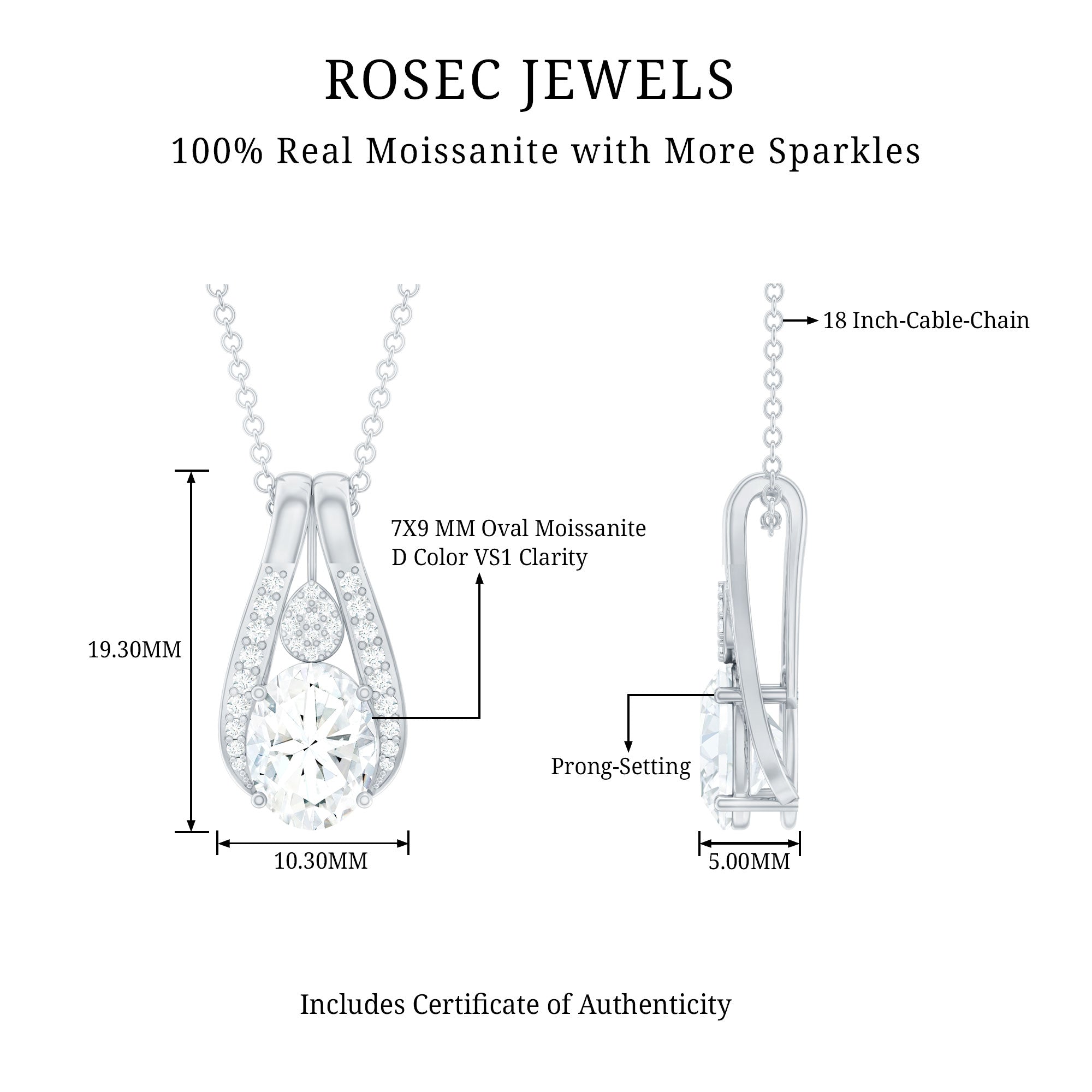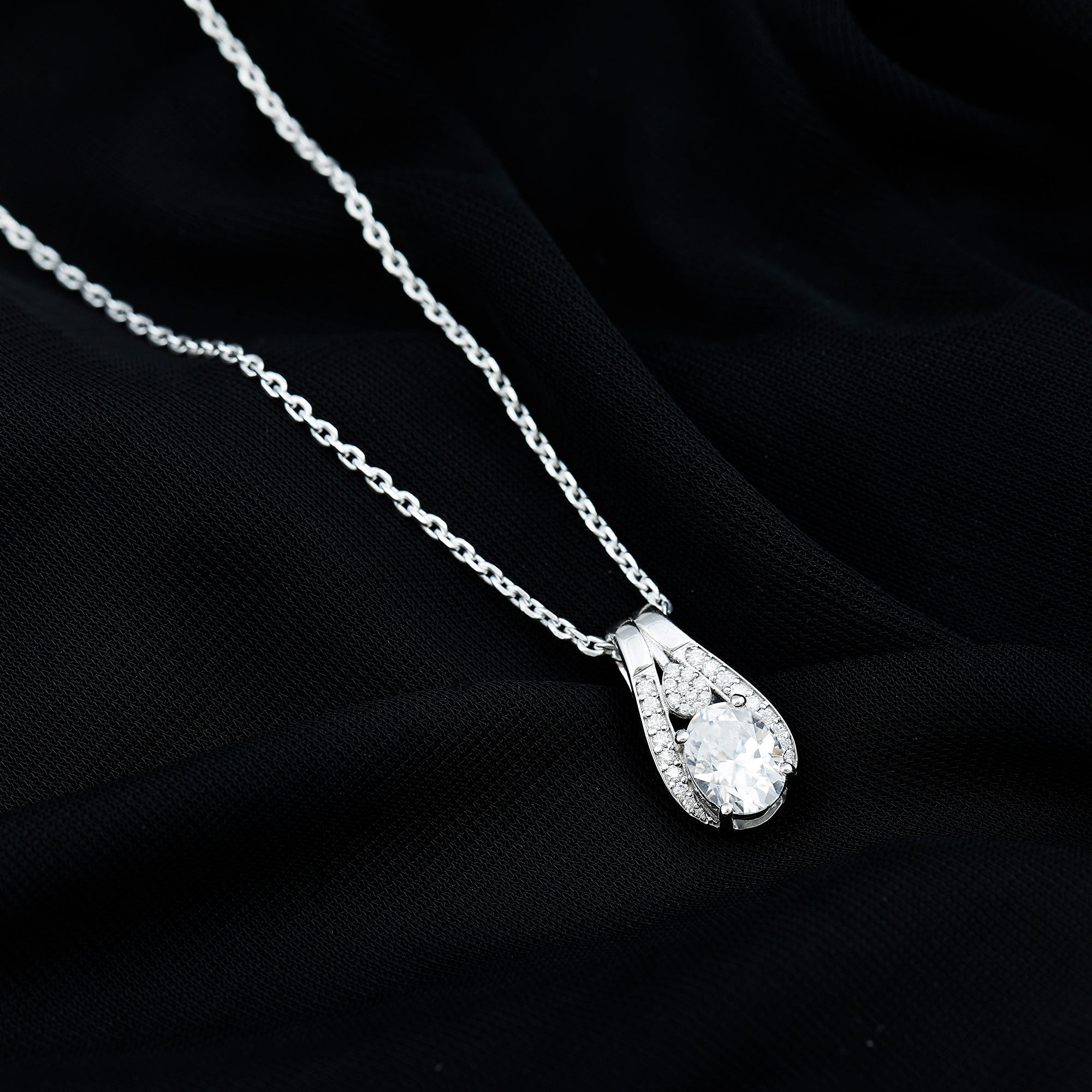 Certified Oval Cut Moissanite Teardrop Pendant Necklace for Wedding