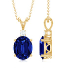 Certified Oval Lab Created Blue Sapphire Necklace with Chain