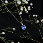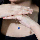 Timeless charm shines through in this Lab Created Blue Sapphire Necklace, designed to make every moment feel special. At the center sits an 8X10 MM oval cut lab grown blue sapphire. A small round moissanite rests above it, adding a soft sparkle that enhances the beauty of the main stone. Both gems are held securely in prong setting, allowing maximum light to reflect through them. The Oval Pendant Necklace hangs from a matching cable chain that closes with a lobster clasp, making it easy to adjust the length for the perfect fit. The rabbit ear bail adds a unique touch, giving the Solitaire Necklace a charming and delicate look. Made from high-quality metal, this piece is crafted to last while keeping its shine for years. This Blue Stone Pendant is simple enough for everyday wear yet elegant enough for special occasions. Whether worn alone or layered with another necklace, it brings a polished and graceful look to any outfit. With its rich color, meaningful design, and contrasting stones, this pendant makes a thoughtful gift for birthdays, anniversaries, or heartfelt celebrations.