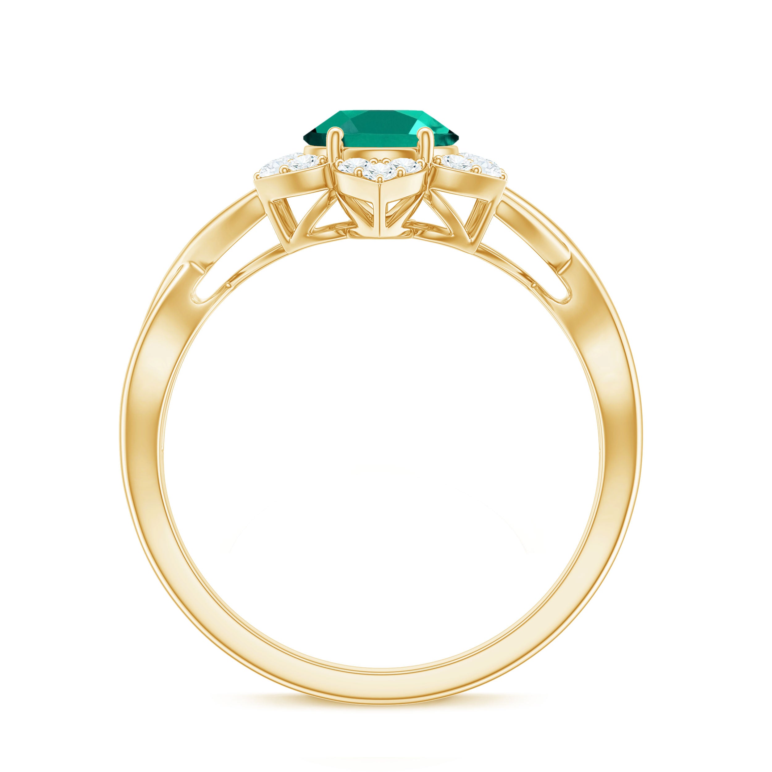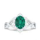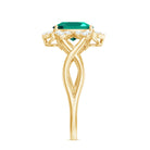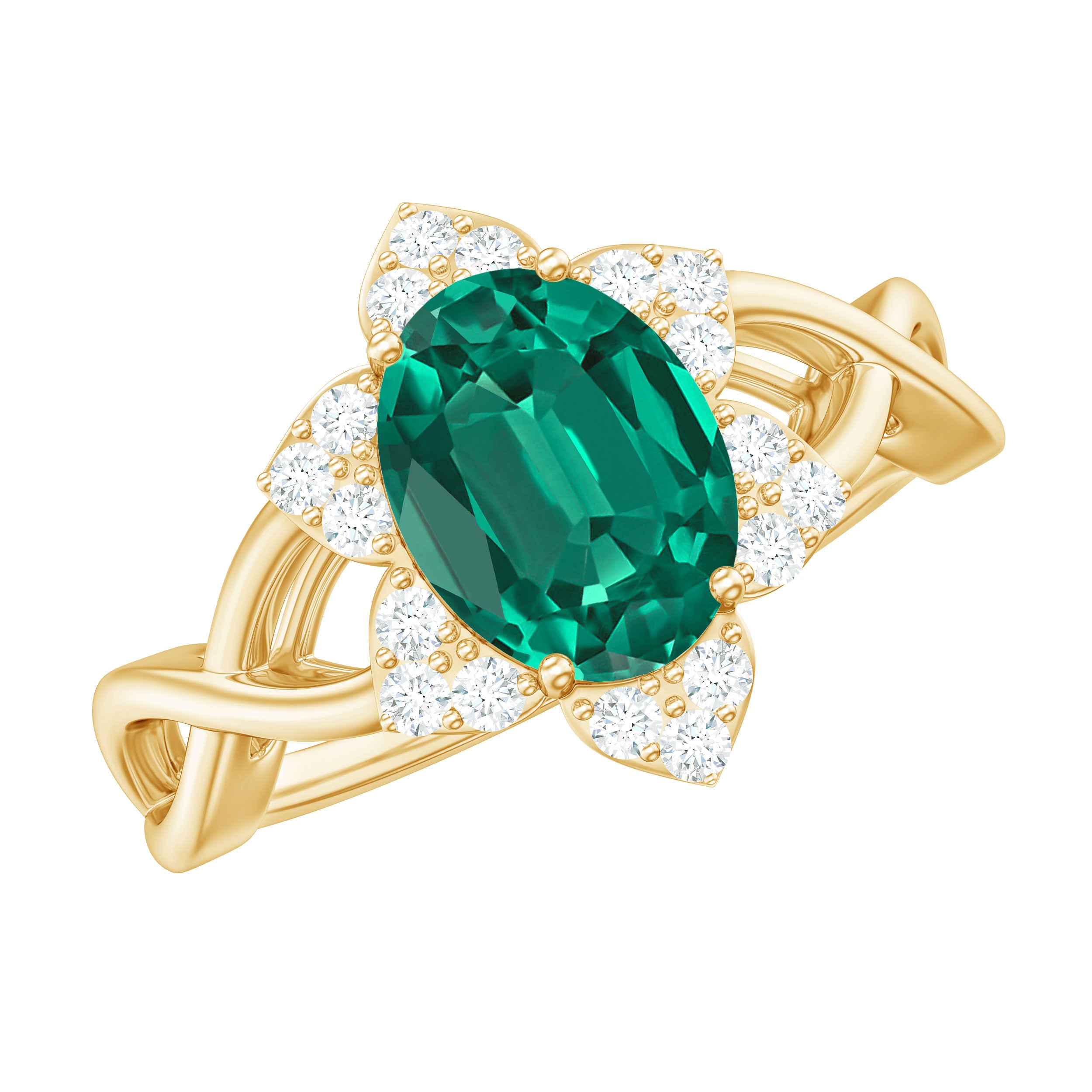 Certified Oval Lab Grown Emerald Diamond Flower Engagement Ring with Crossover Shank
