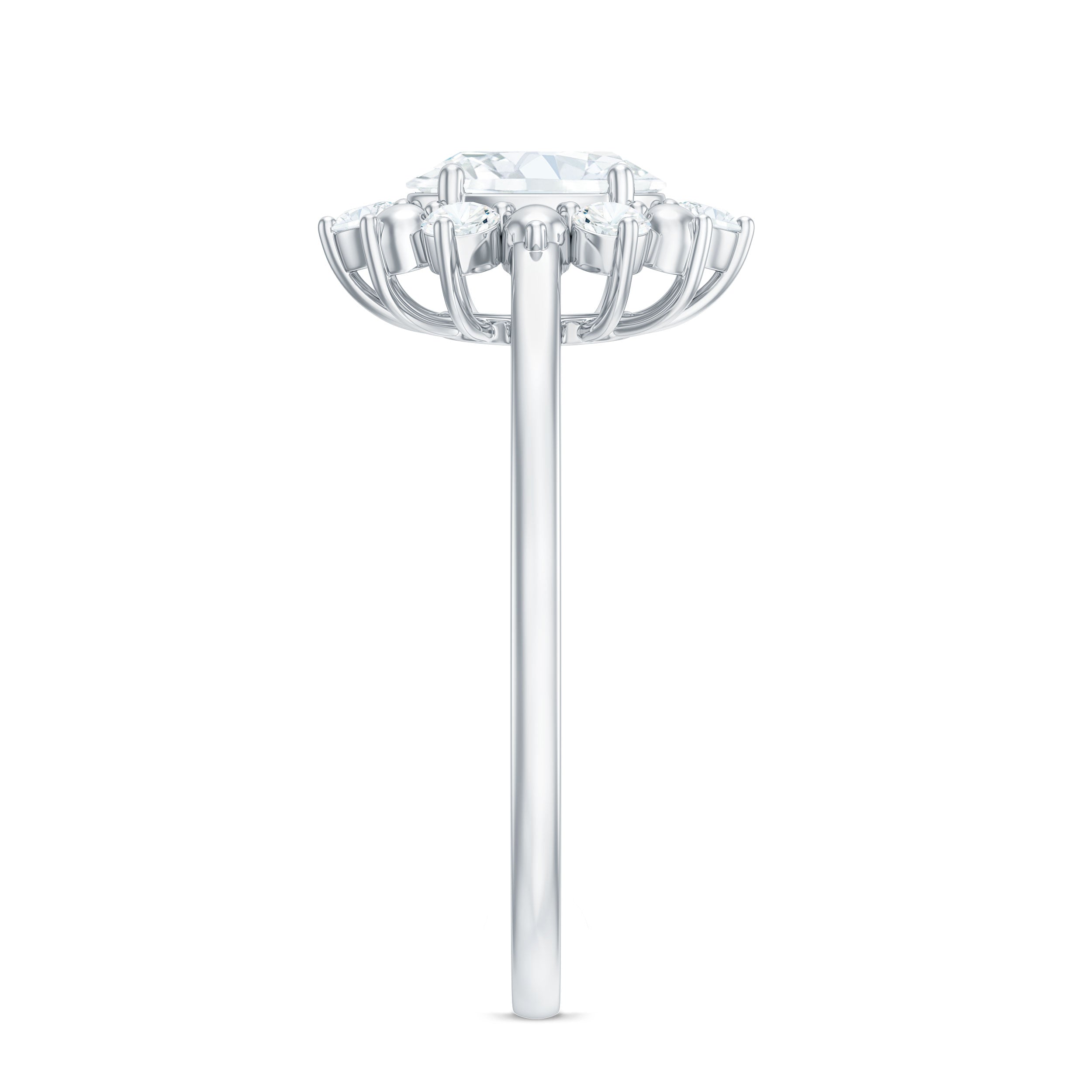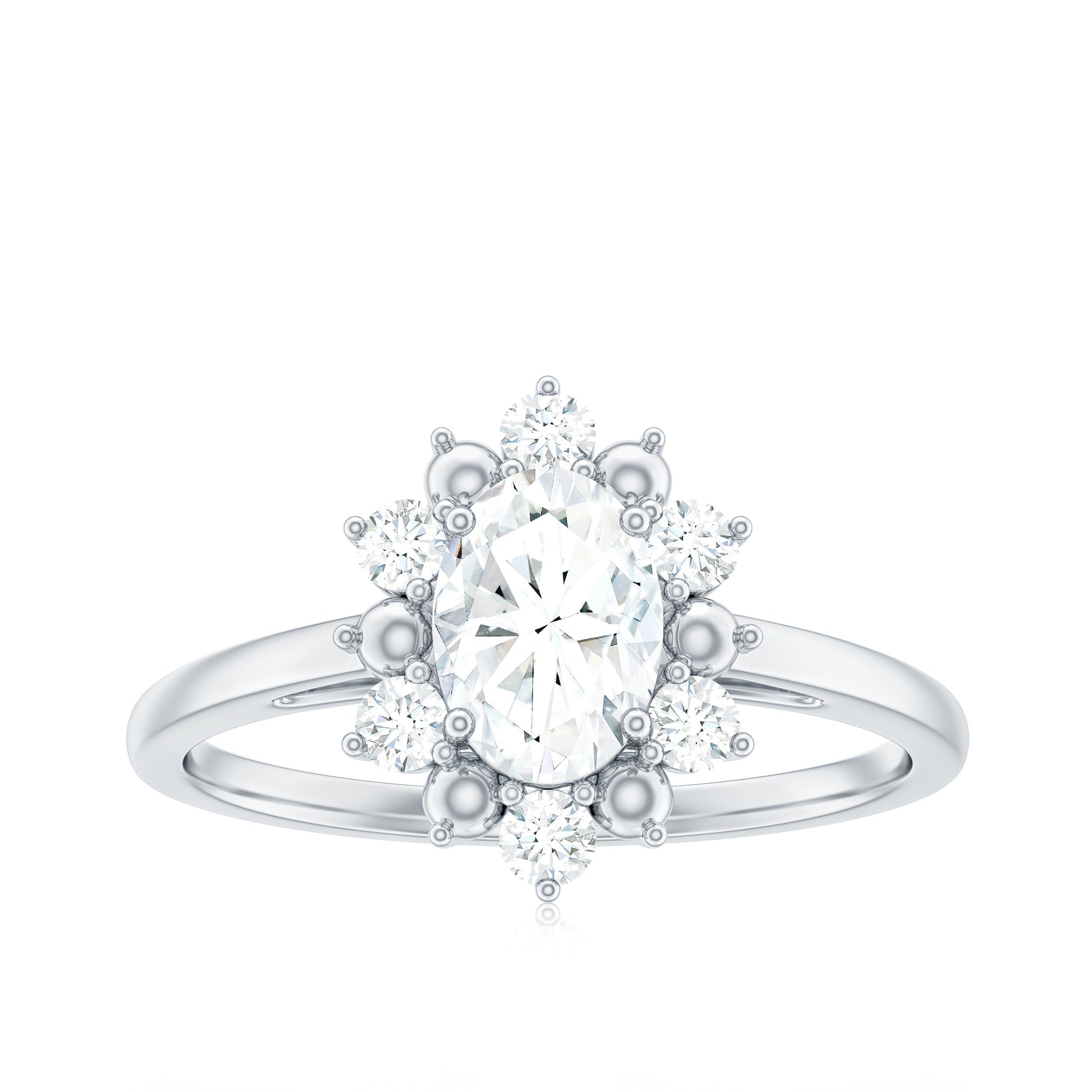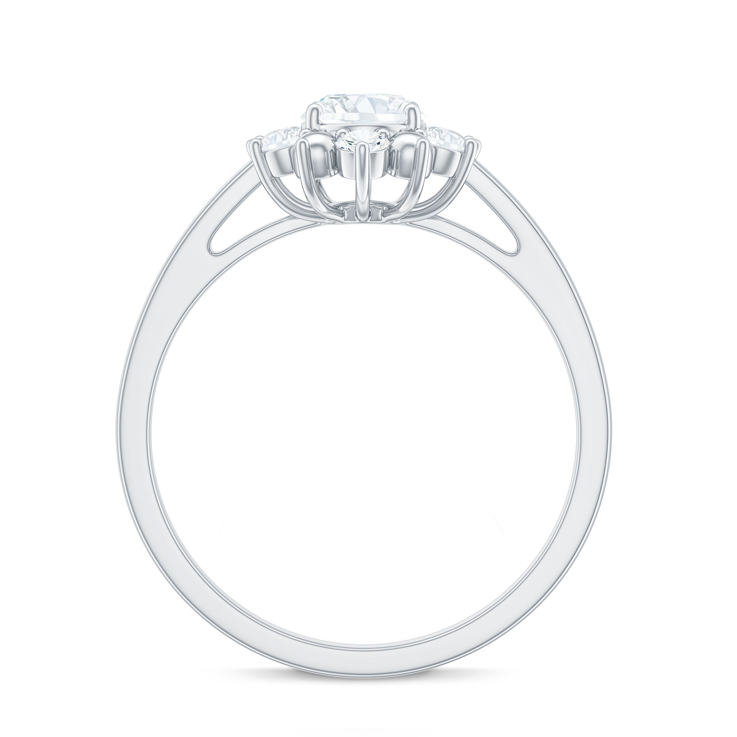 Certified Oval Moissanite Flower Halo Engagement Ring