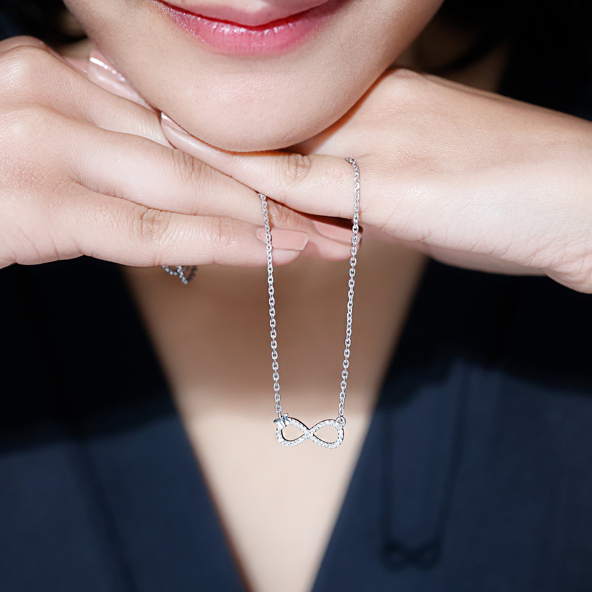 Certified Pave Set Moissanite Infinity Necklace with Butterfly
