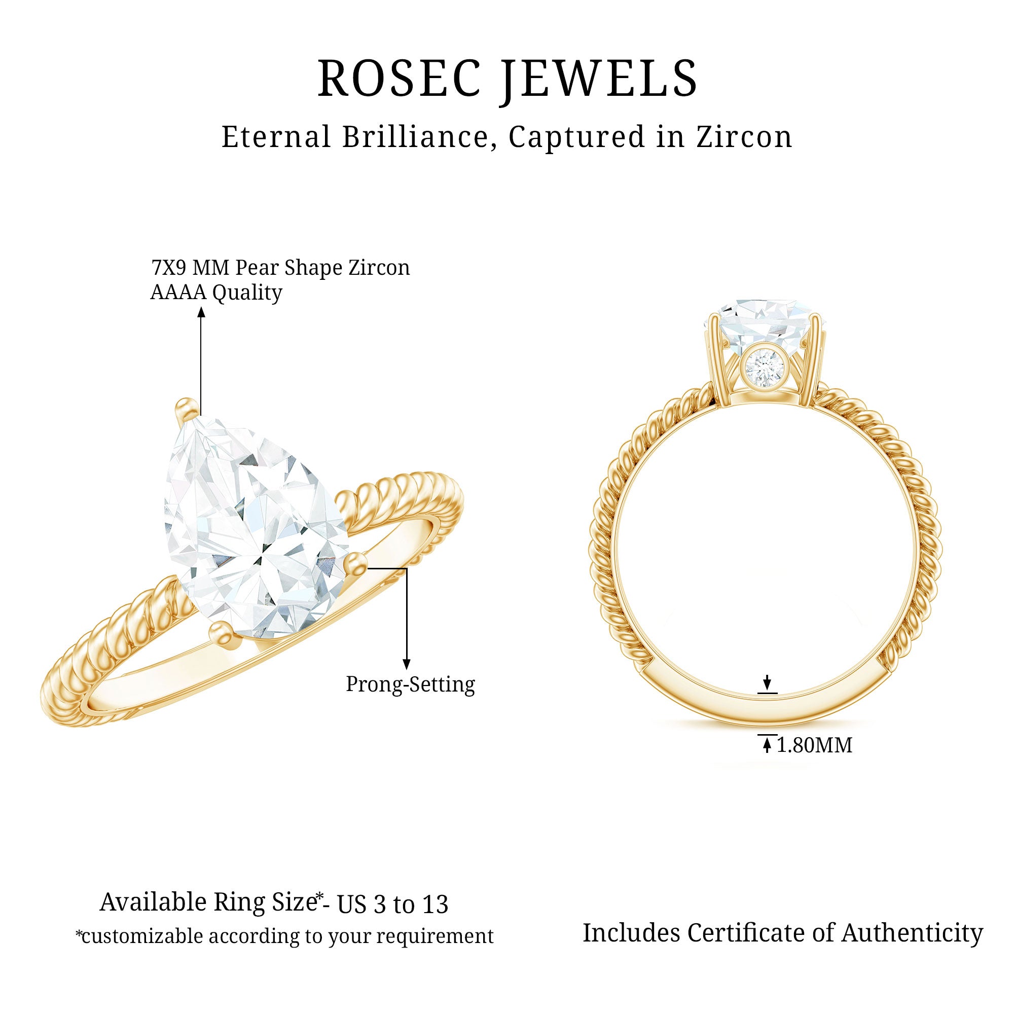 This elegant Solitaire Engagement Ring is beautifully embellished at the center with sparkling Pear Cut Zircon, while Twisted Rope Shank adds a dramatic look. The Pear Zircon Ring in Solid Metal will enhance your style and make you the center of attention. Your partner will love the Zircon Ring, a precious anniversary gift she will never forget.
