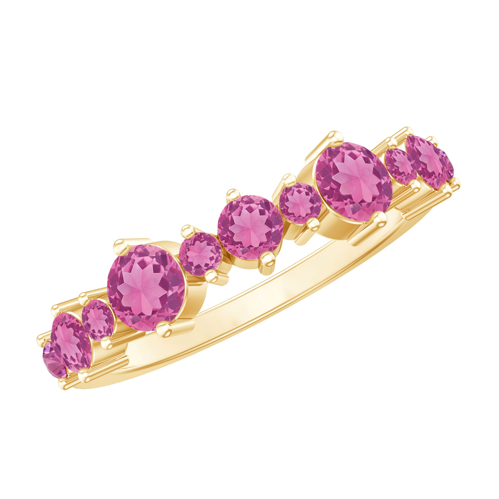 Celebrate the special moments in life with this exquisite Pink Tourmaline Ring. Adorned with Round Shaped Pink Tourmaline in Prong setting. Surprise your beloved with this stunning Uneven Tourmaline Eternity Ring, a symbol of your everlasting love and affection. Imagine the sparkle of the Aaa Quality Pink Tourmaline gemstone catching the light with every gesture, radiating warmth and joy. Ideal for stacking or wearing solo, this versatile piece of jewelry adds a pop of color to any outfit. Elevate your jewelry collection with this Half Eternity Band that celebrates your unique story with a piece that speaks to the heart.