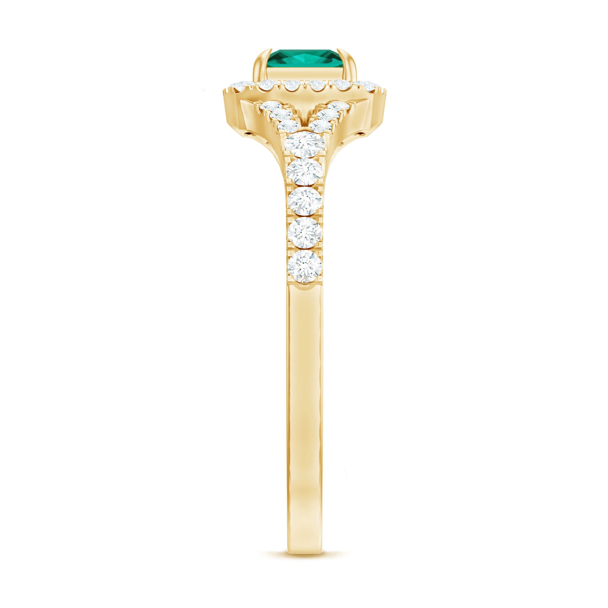 A promise is a beautiful vow, a heartfelt commitment to stand by someone through every moment, big or small. This Lab Grown Emerald Ring is the perfect symbol of that special promise, representing love, trust, and a bright future together. At the center of this stunning Proposal Ring is a 4 mm Lab Grown Emerald in a Princess Cut, surrounded by a sparkling Halo of Diamond gemstones that enhance its vibrant green glow. The Lab Emerald symbolizes growth, hope, and harmony, making this Emerald Diamond Ring a meaningful choice for expressing your deep connection. The Split Shank Band adds an elegant touch, adorned with delicate Diamond that catch the light and add extra brilliance to the design. This thoughtful arrangement creates a graceful look, perfect for both everyday wear and special occasions. Available in various ring sizes, this Princess Cut Emerald Ring offers a comfortable fit and is designed to be cherished for a lifetime. This Emerald Halo Ring comes beautifully packaged in a jewelry box, ready to be gifted as a meaningful token of your love. Whether it is to celebrate a special milestone, an anniversary, or simply a promise of forever, this Promise Engagement Ring is the ideal choice to show your love timelessly and elegantly.