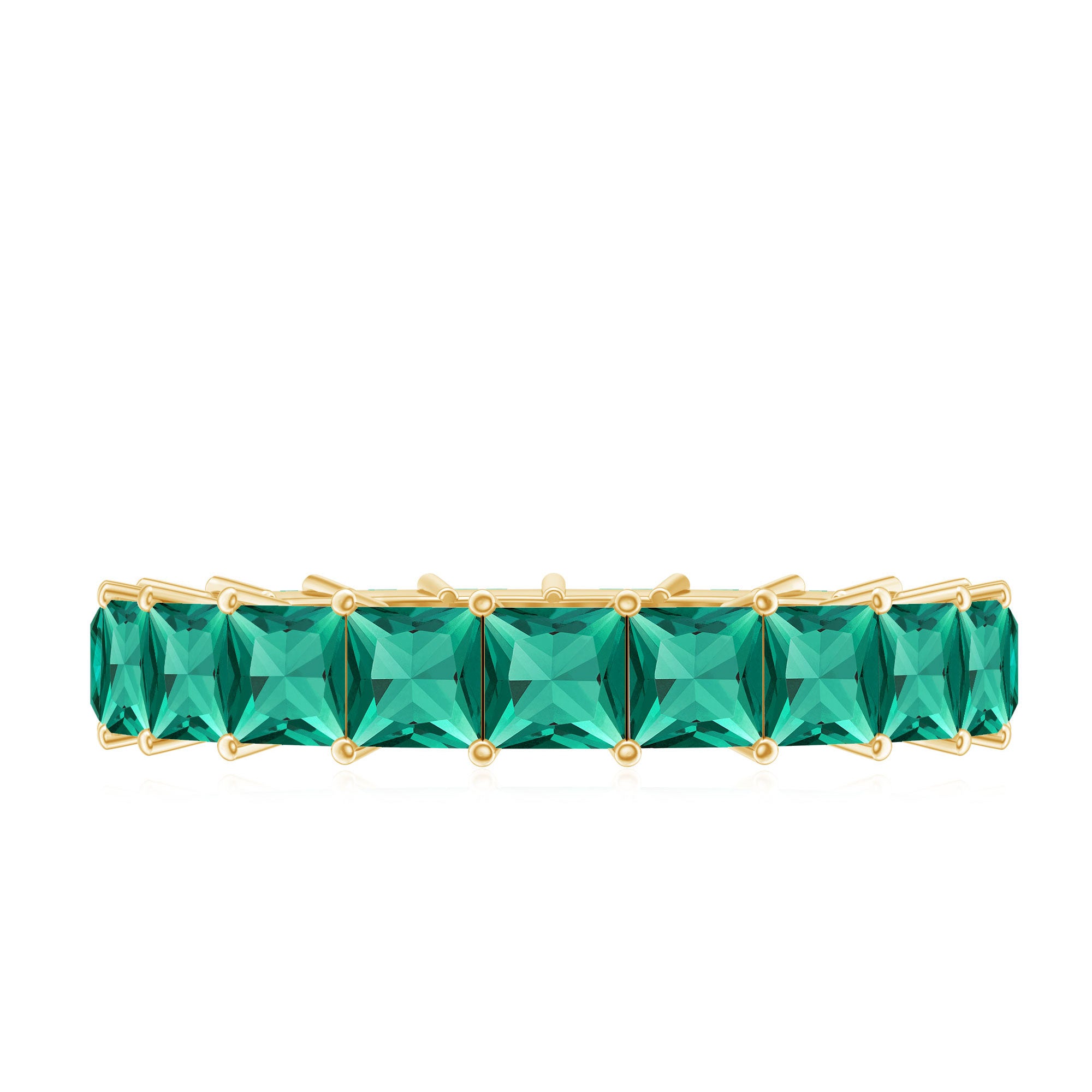 Celebrate everlasting love with this Eternity Wedding Band, a stunning blend of modern elegance and meaningful symbolism. Featuring 3 mm Princess Cut Lab Created Emerald stones in Shared Prong Setting, this Full Eternity Band radiates a vibrant green glow, symbolizing growth, harmony and renewal, perfect for a couple beginning their lifelong journey together. This Lab Grown Emerald Ring is designed to sit comfortably on the finger while adding a touch of bold sophistication. Lab grown for ethical and sustainable brilliance, each Lab Emerald offers exceptional clarity and color, that makes this Lab Emerald Wedding Band a radiant and responsible choice. Whether worn alone for minimalist elegance or paired with an engagement ring for added sparkle, this Princess Cut Wedding Band makes a timeless statement of devotion. Available in various US ring sizes, this Princess Cut Eternity Band ensures the perfect fit for every bride or groom. Rosec Jewels presents this handcrafted Wedding Band, thoughtfully packaged in a Signature Jewelry Box, ready to symbolize your unique love story and cherish forever.