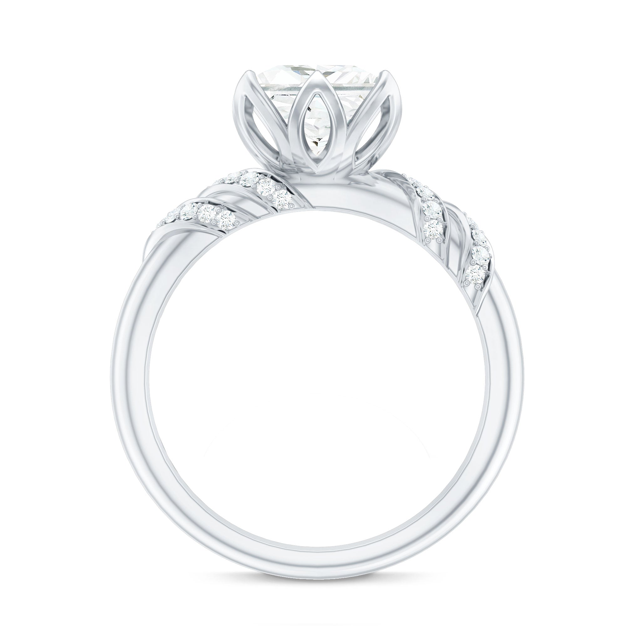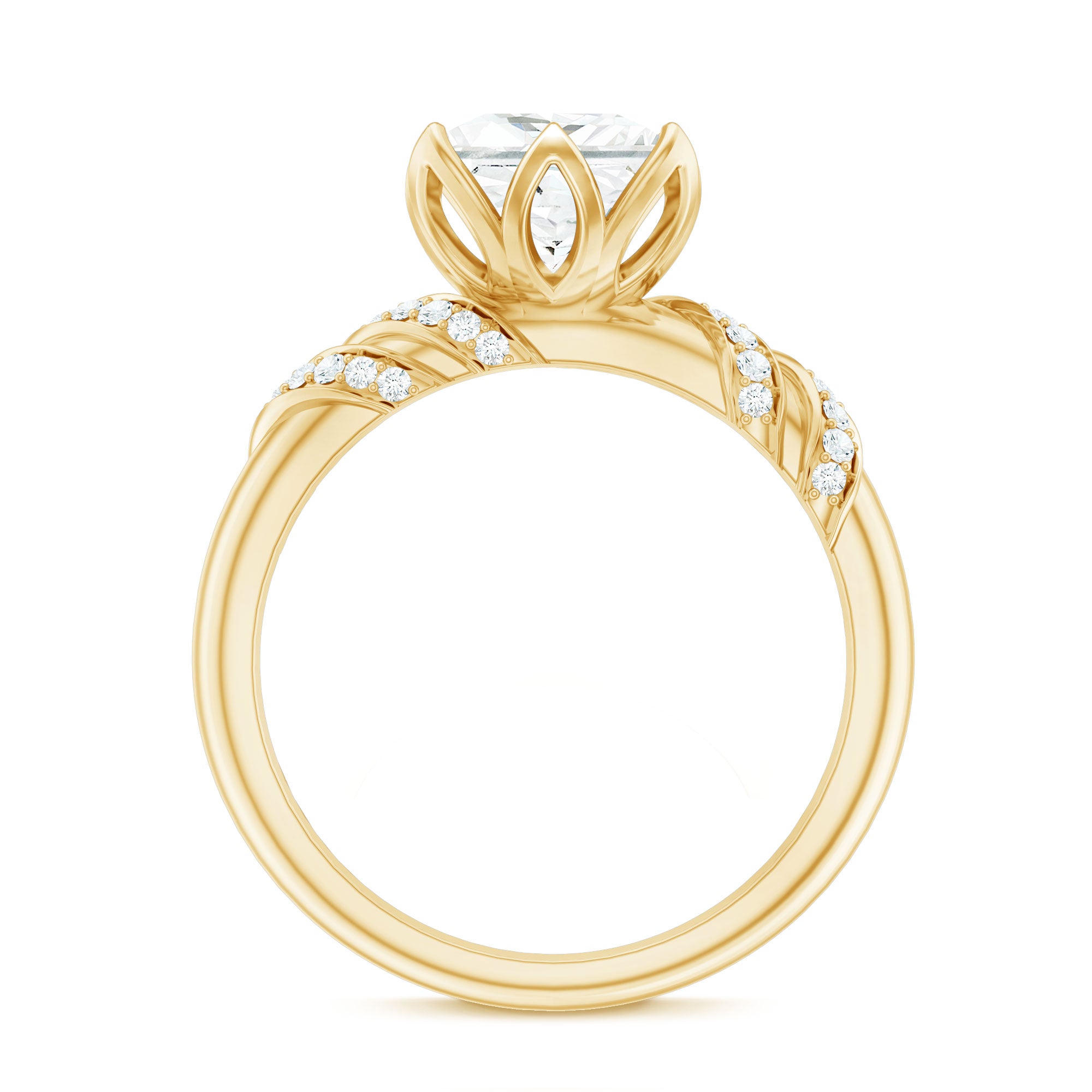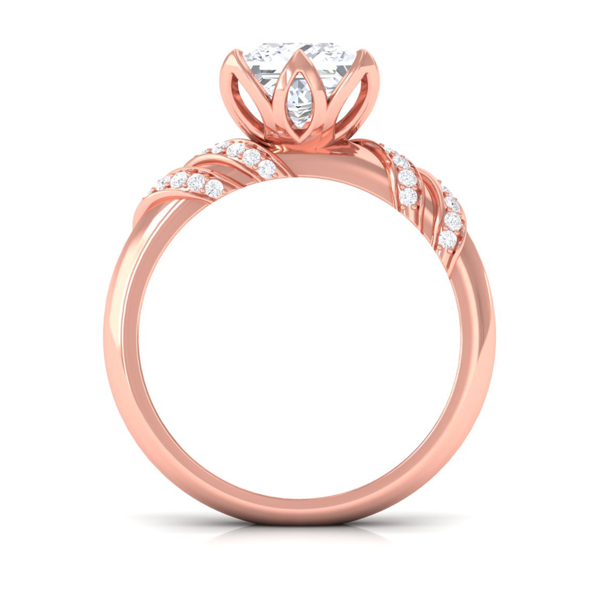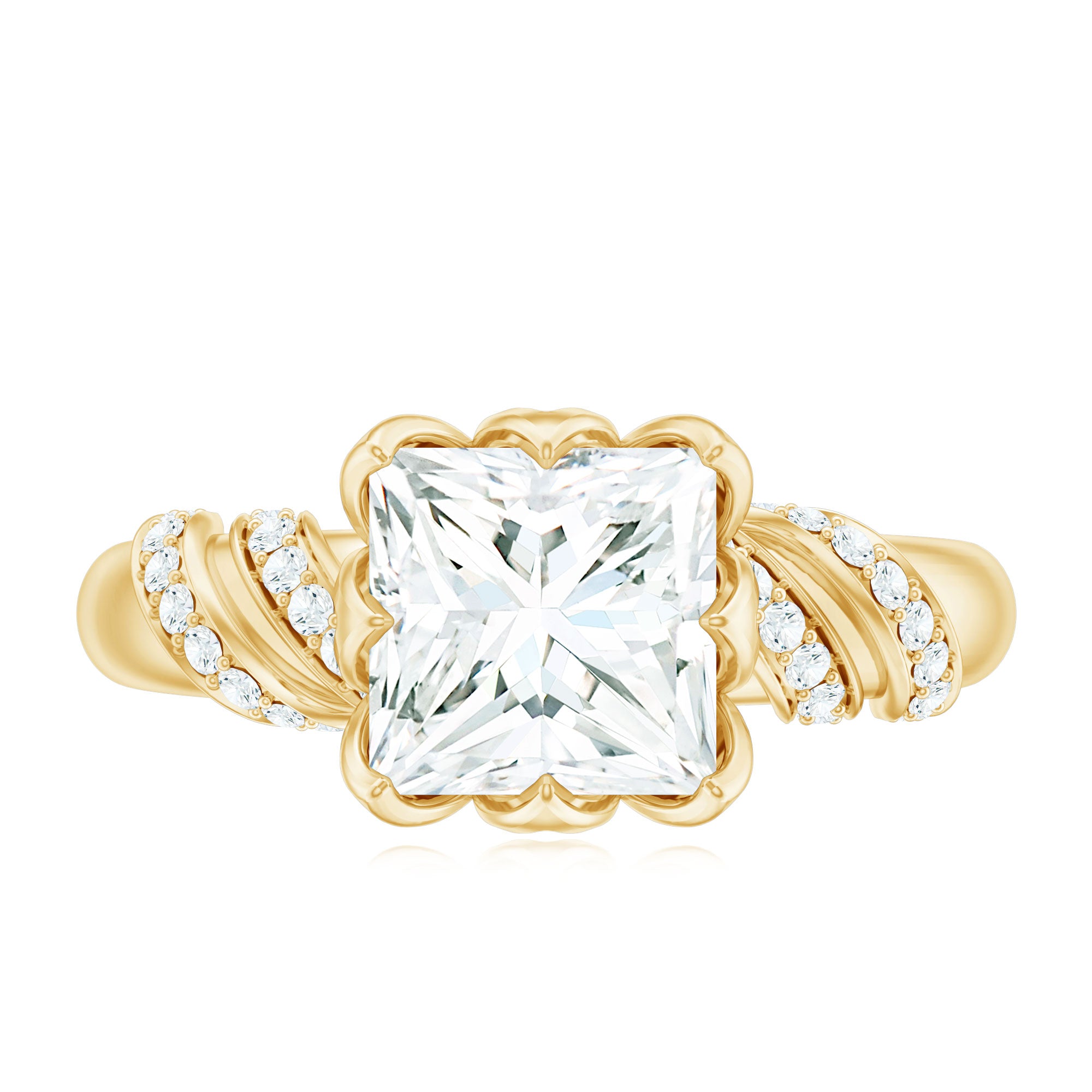 Elegant and full of charm, this Princess Cut Moissanite Engagement Ring is a beautiful mix of timeless style and modern design. At the heart of the ring is a brilliant 8 MM princess cut moissanite. It is set in a graceful petal prong setting, giving it a romantic, floral-inspired touch. The setting not only adds a delicate feel but also allows light to hit the stone from every angle, making it glow with stunning brilliance. The band features a unique twisted design that adds movement and personality to the Solitaire Engagement Ring. Tiny round moissanite stones are delicately placed along the twist, adding just the right amount of shimmer without taking attention away from the center stone. Every detail is thoughtfully crafted to highlight the beauty of the Designer Engagement Ring while keeping it elegant and comfortable for everyday wear. This solitaire ring is perfect for a memorable proposal, a special anniversary, or even as a self-love gift. It’s made for someone who loves the timeless elegance of a solitaire but wants something a little more unique and artistic. The princess cut adds a modern edge, while the floral details and twisted band create a soft, feminine balance. Your 3 Carat Moissanite Ring will arrive in a premium jewelry box, ready for that unforgettable moment. Designed to be cherished forever, this piece is a beautiful symbol of love, individuality, and the start of something truly special.
